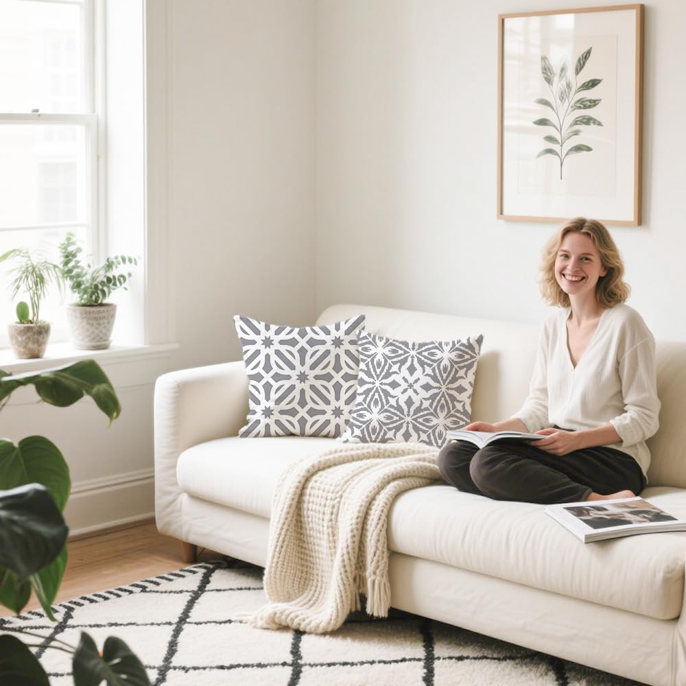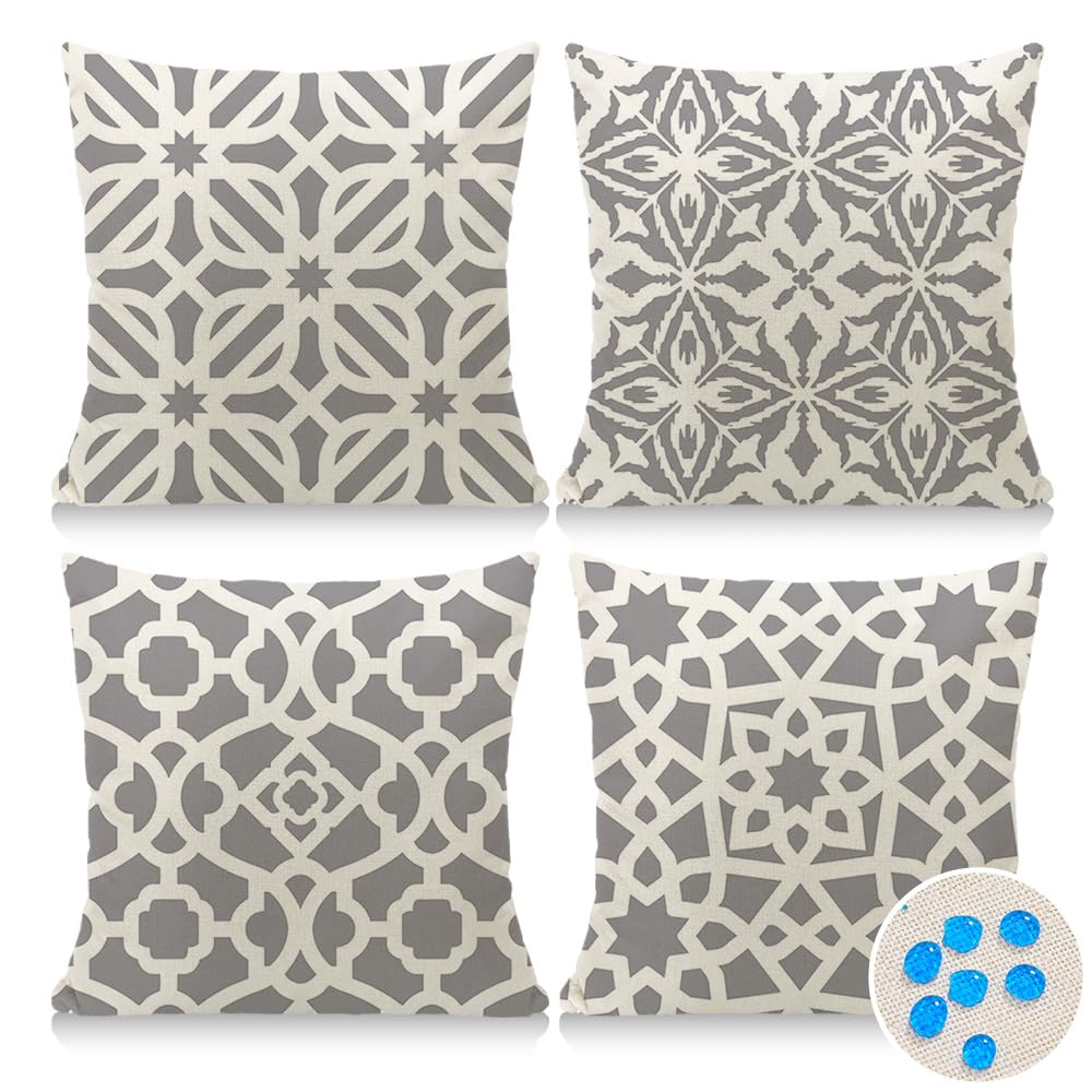 Cirzone Deko Wohnzimmer Kissenbezug 40x40 4er Set Wetterfest Leinen Outdoor Kissen Boho Deko für Garten, Balkon