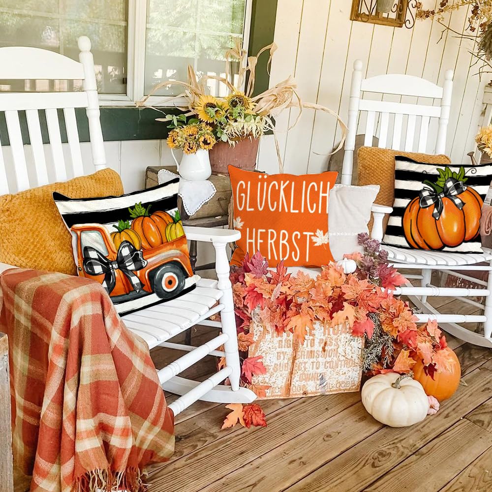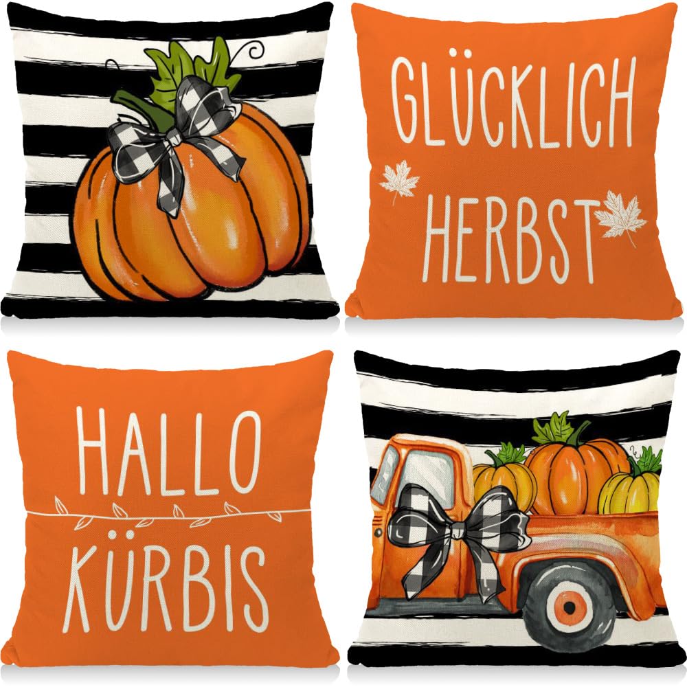 Cirzone Herbst Kissenbezug 45 x 45 cm 4er Set Hallo Kürbis Dekorative Kissen Herbst Dekoration für Home Garten Sofa Schlafzimmer