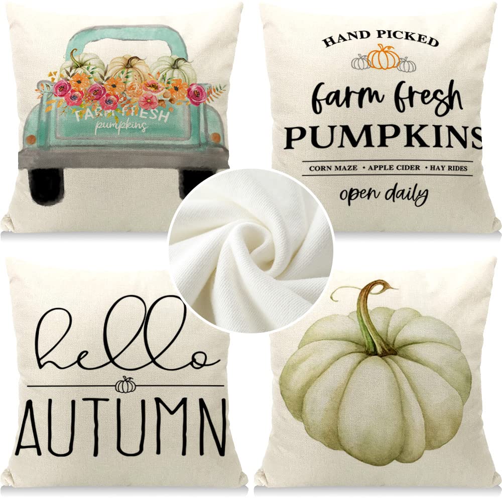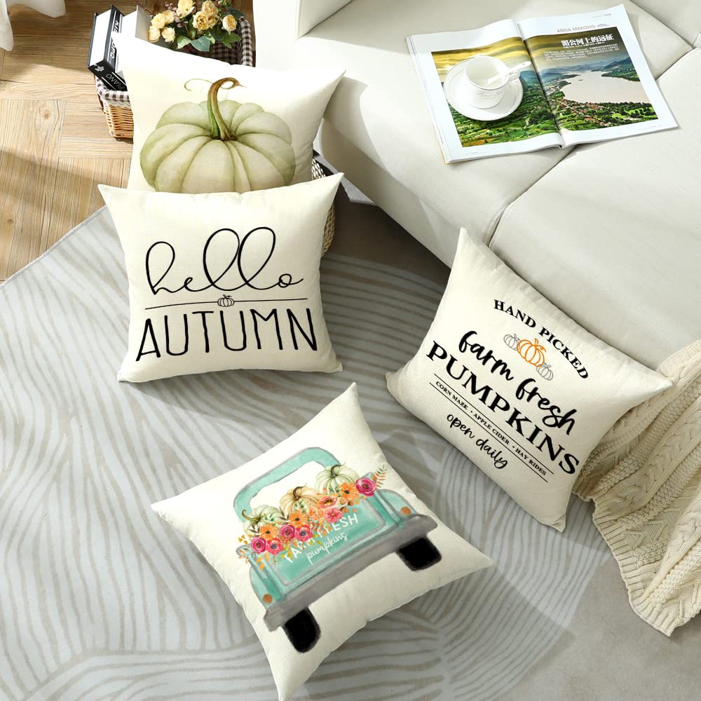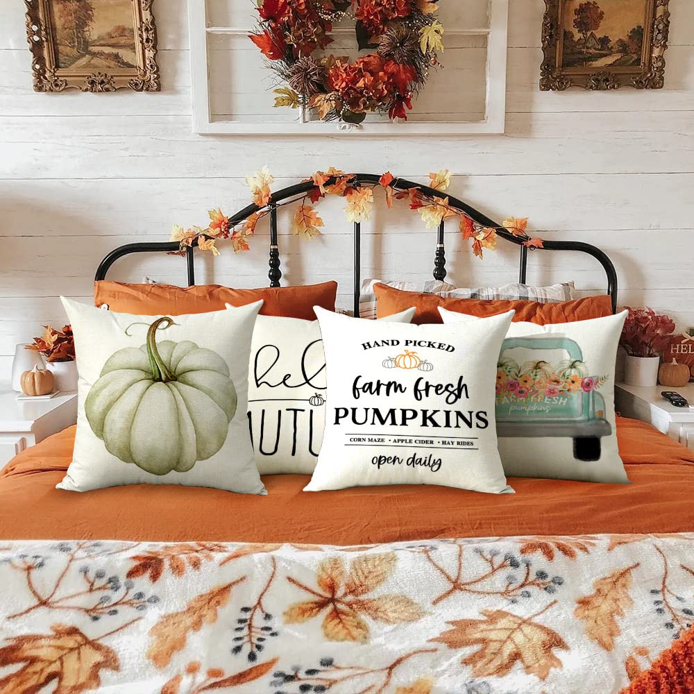 Cirzone Herbst Kissenbezug 45 x 45 cm 4er Set LKW Kürbis Hello Autumn Kurzer Plüsch Dekorative Kissen Herbst Dekoration für Home Sofa Schlafzimmer