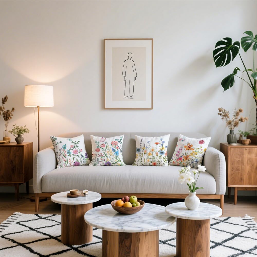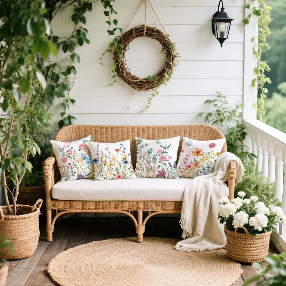 Cirzone Outdoor Kissen Dekorative Wasserfest 4 er Kissenbezug Frühling 45 x 45 cm Gartenkissen Wetterfest Bunte Blumen und Schmetterlinge Kissenbezug Werden für Heim Sofak Garten