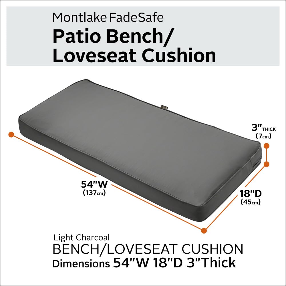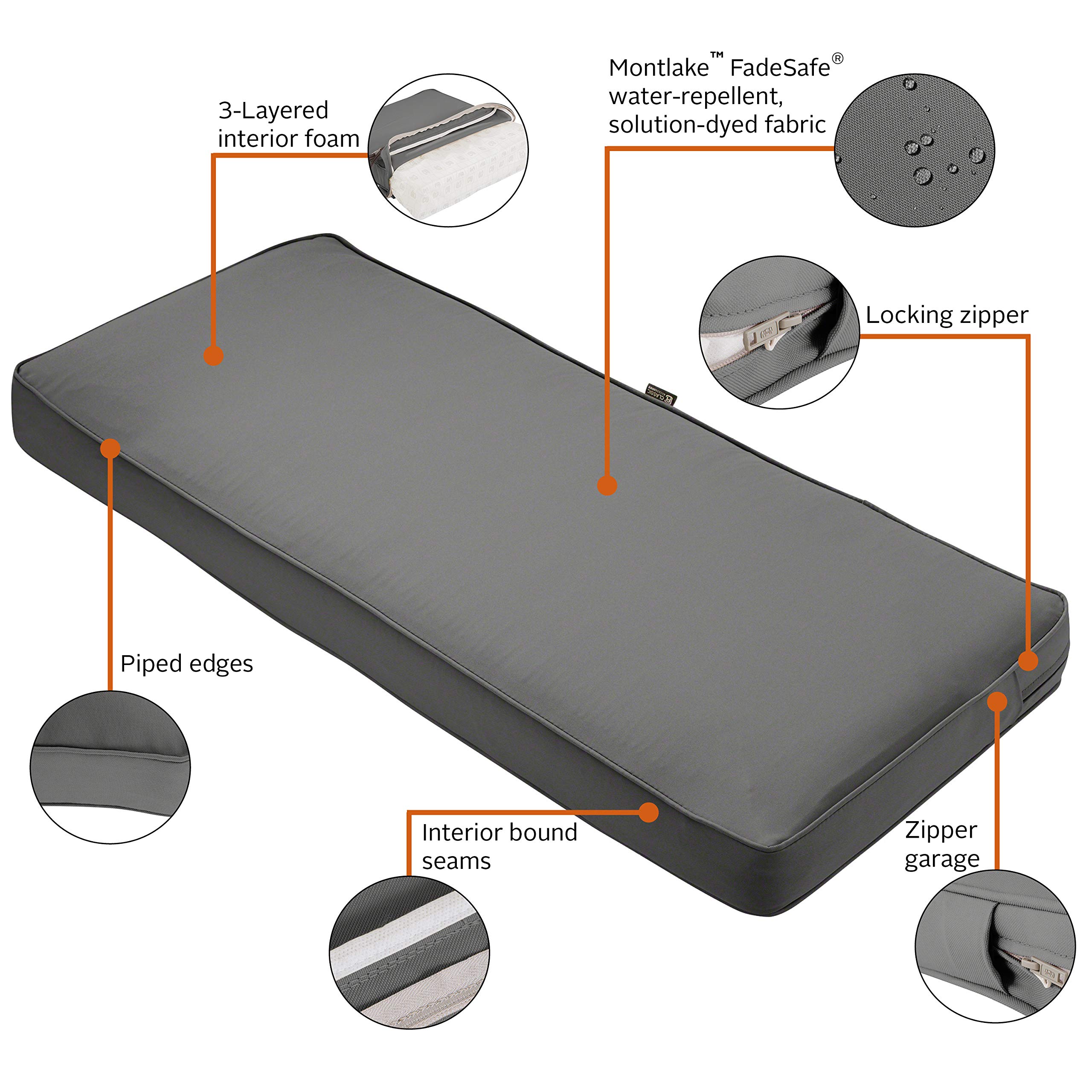CLASSIC ACCESSORIES 62-044-LCHARC-EC Montlake FadeSafe Wasserabweisendes Outdoor-Bankkissen, 137 x 46 x 7,5 cm, Hellanthrazit