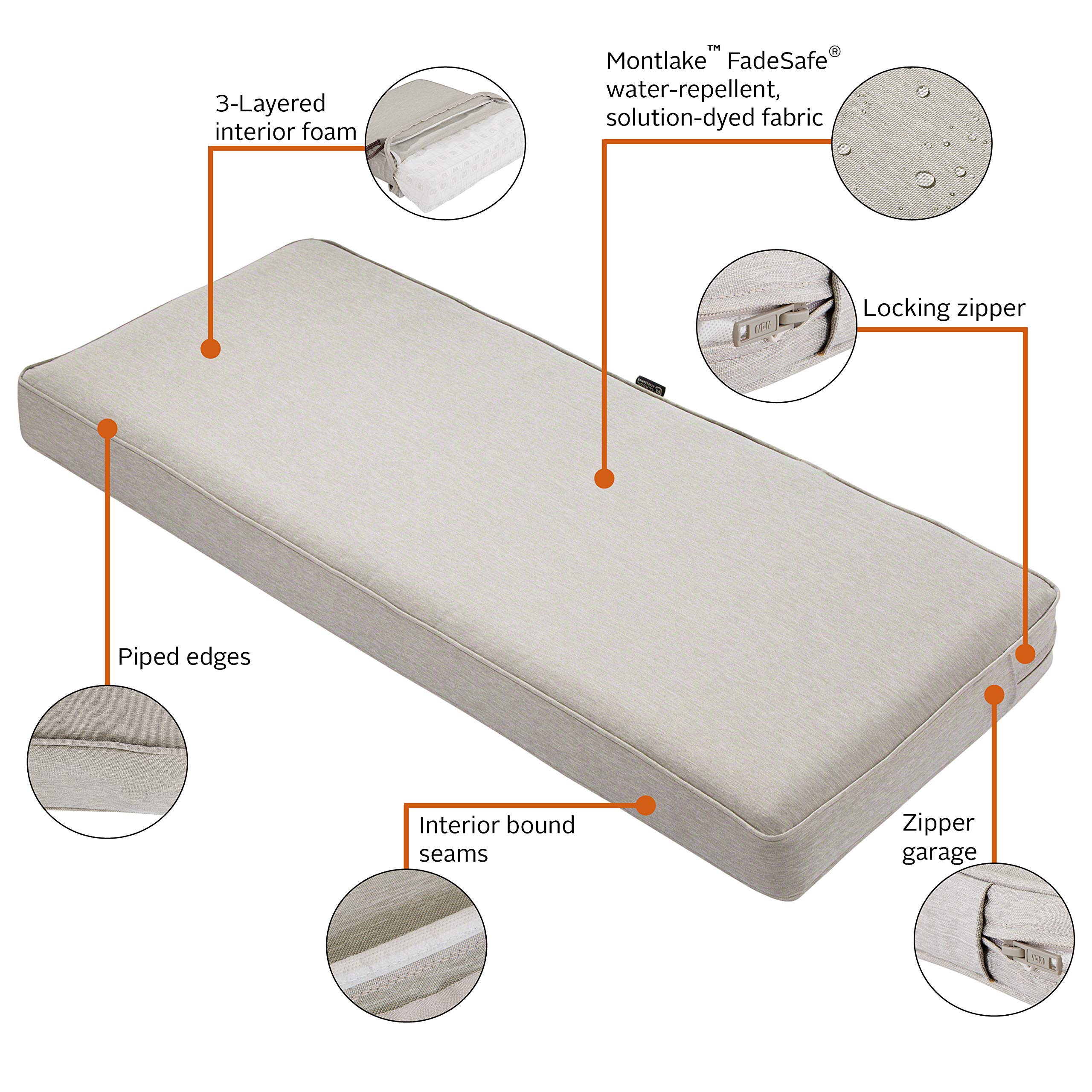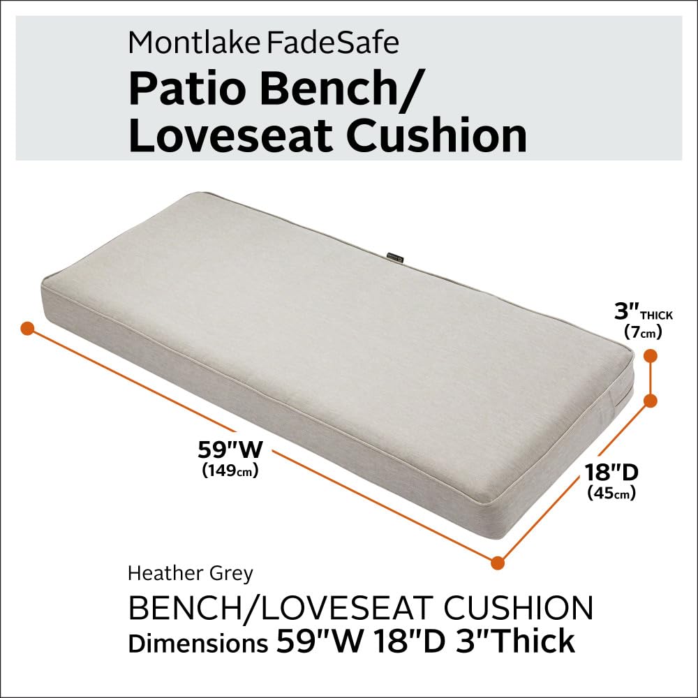 Classic Accessories Montlake Wasserabweisendes Outdoor-Bankkissen, Terrassenmöbel, Schaukelkissen, 150 x 45 x 7,6 cm, Grau meliert