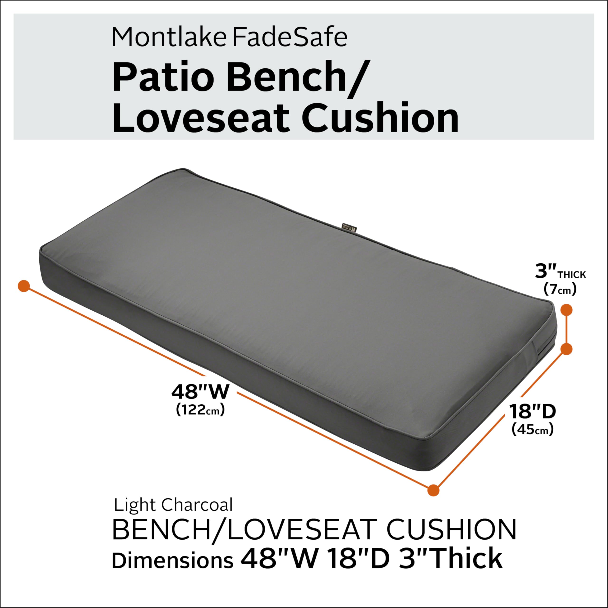 CLASSIC ACCESSORIES Montlake Wasserabweisendes Outdoor-Bankkissen, Terrassenmöbel, Schaukelkissen, 122 x 45 x 7,6 cm, Hellanthrazit, Terrassen-Loveseat Kissen