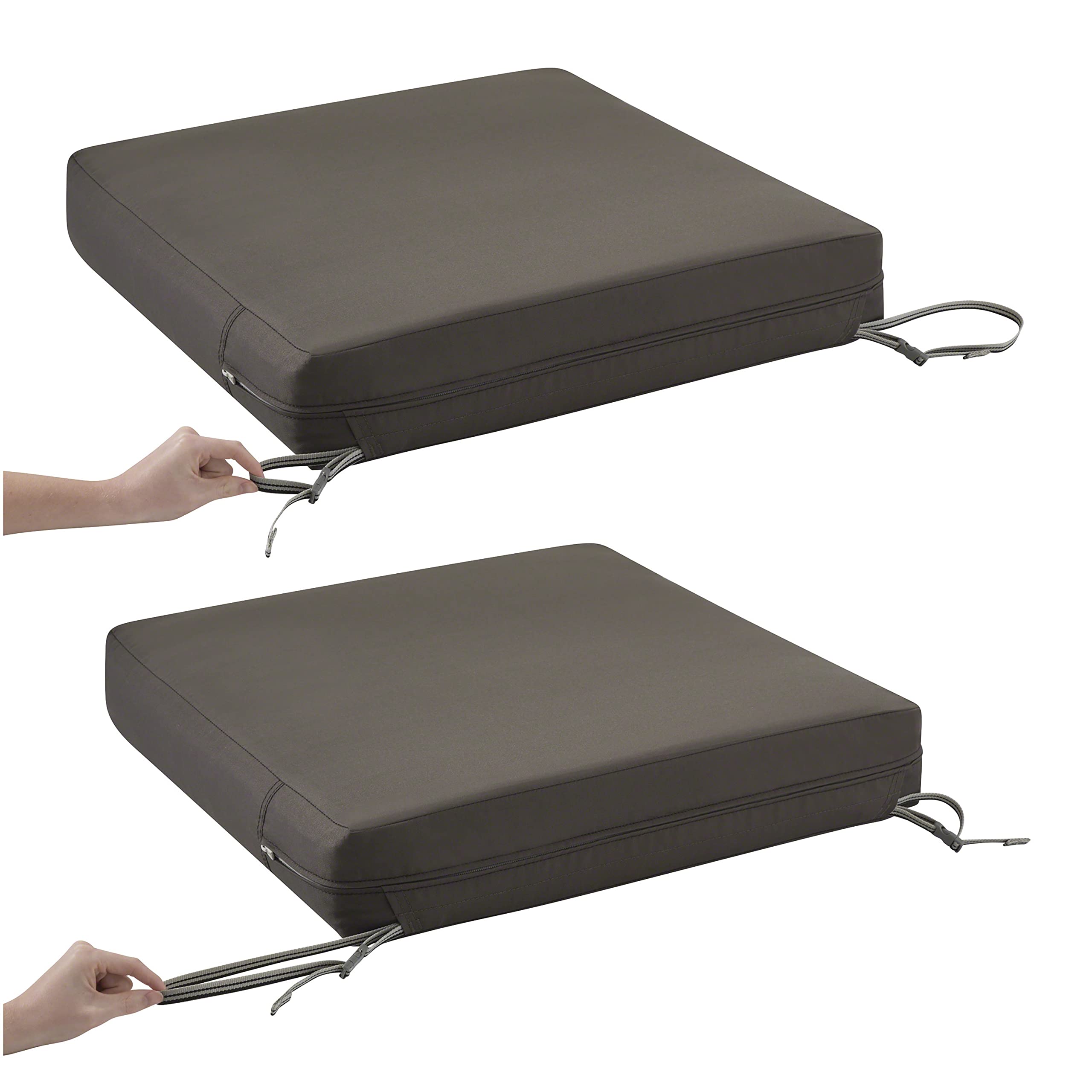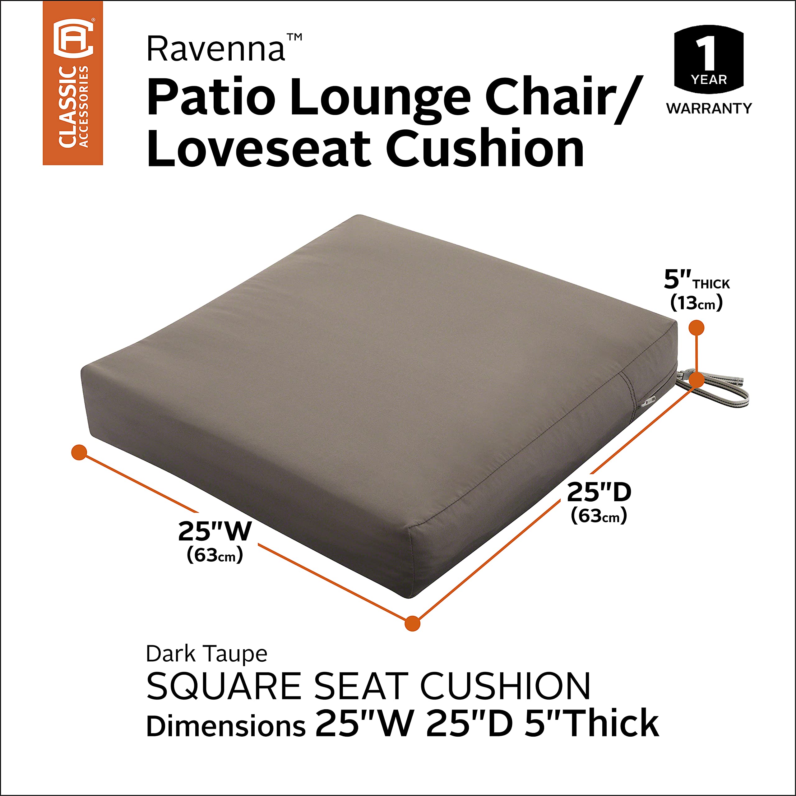 CLASSIC ACCESSORIES Ravenna Wasserabweisender Terrassen-Sitzkissen-Bezug und Schaumstoff, quadratisch, 63,5 x 63,5 x 12,7 cm, Dunkeltaupe