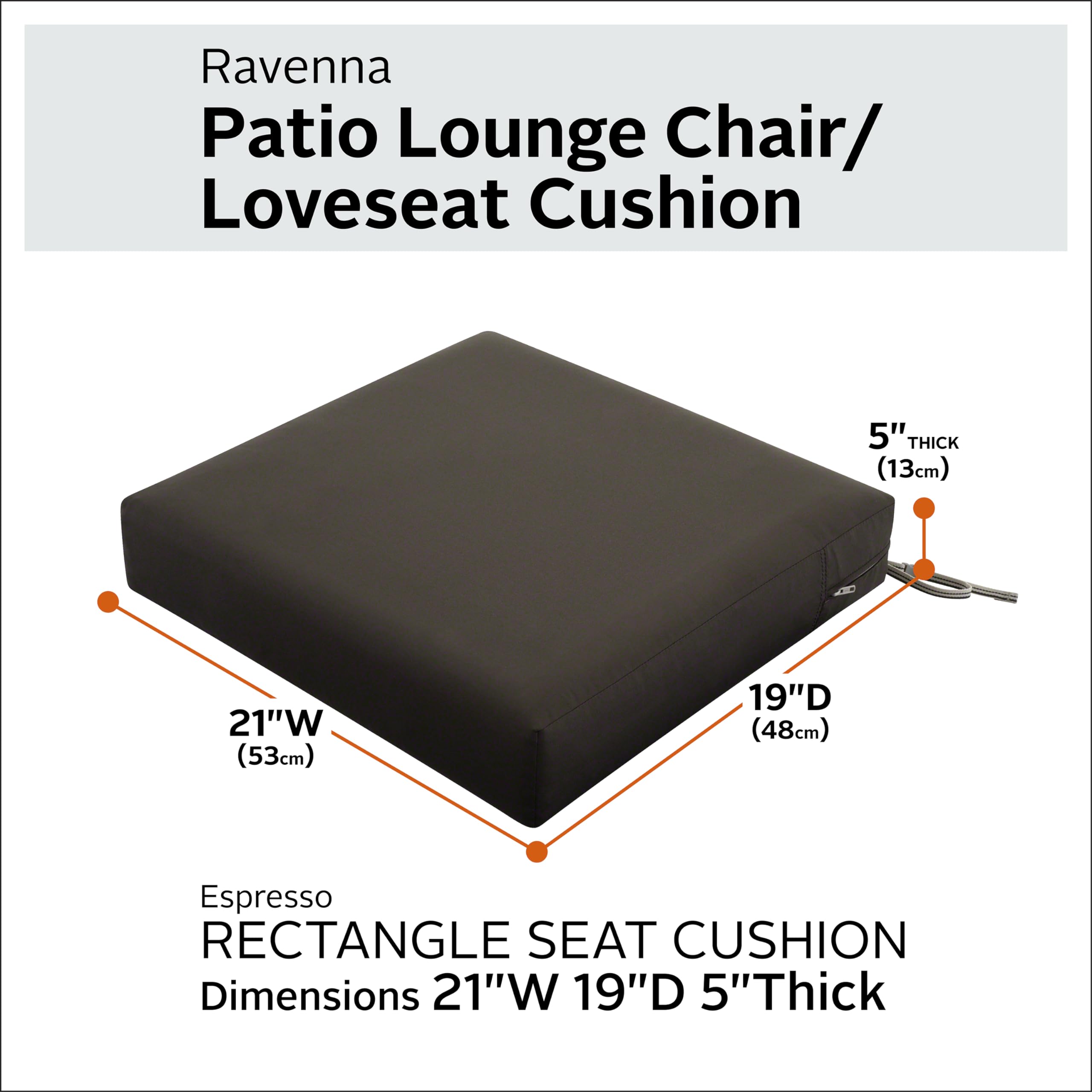 CLASSIC ACCESSORIES Ravenna Sitzkissen, wasserabweisend, 53,3 x 48,3 x 12,7 cm, Espresso