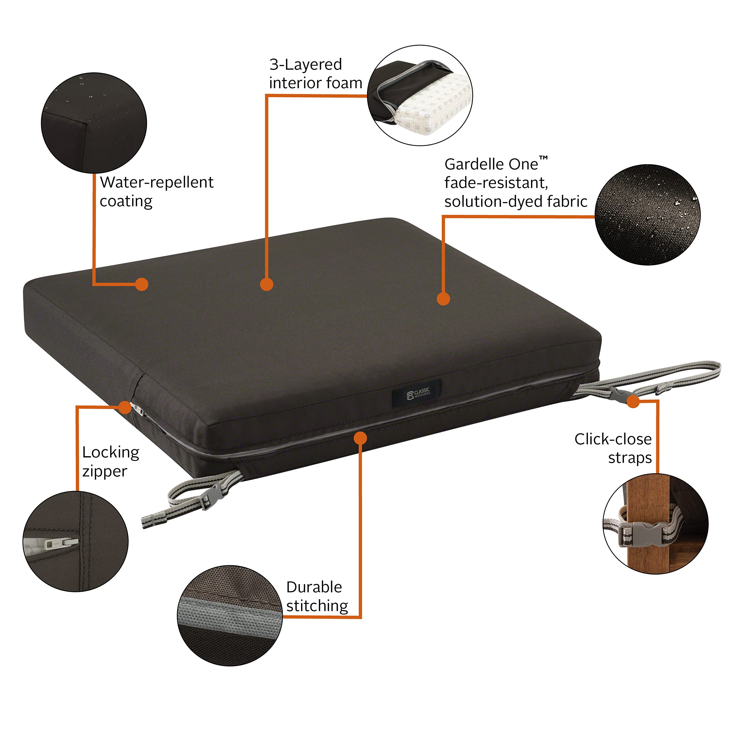 CLASSIC ACCESSORIES Ravenna Wasserabweisendes Terrassensitzkissen, 53,3 x 53,3 x 7,6 cm, Espresso
