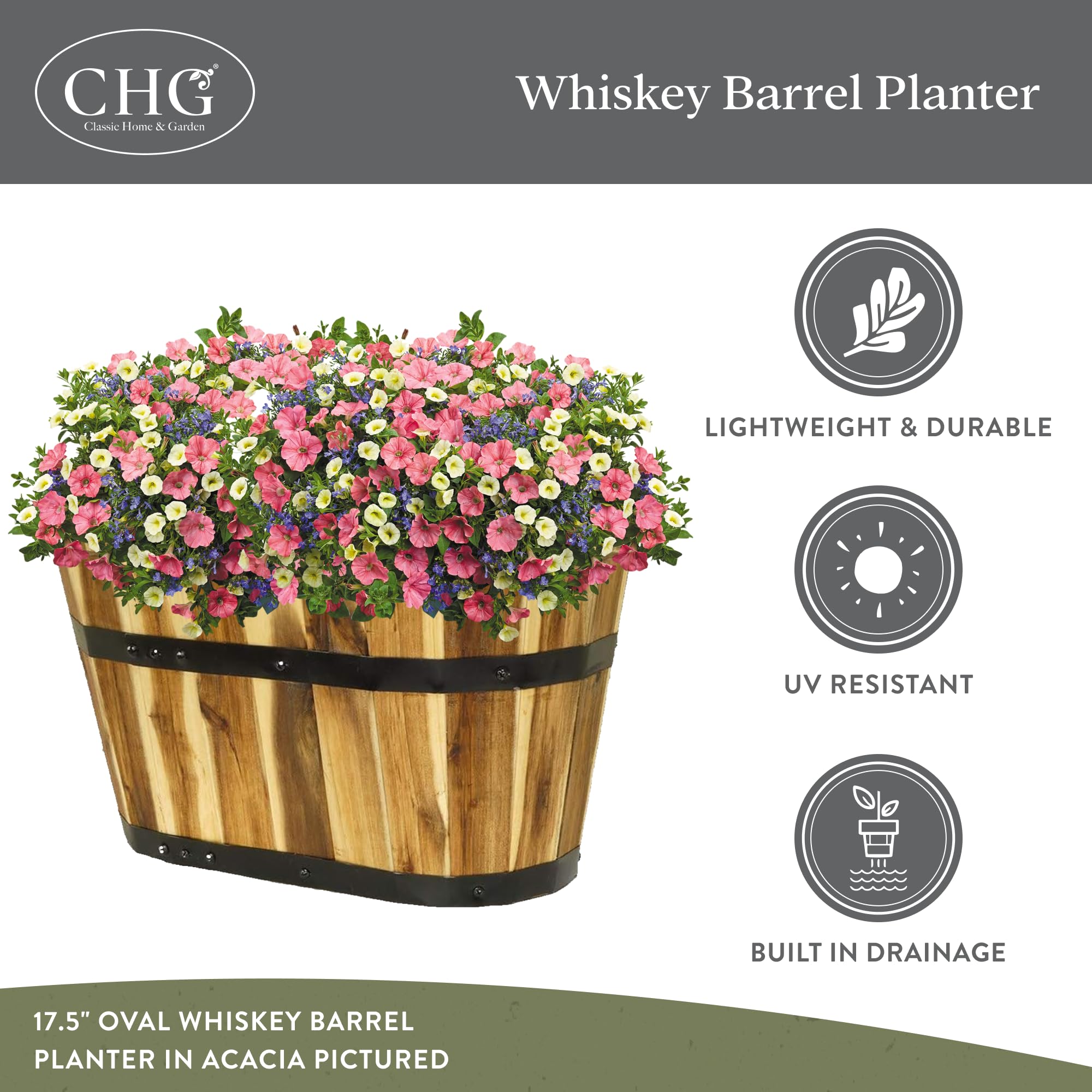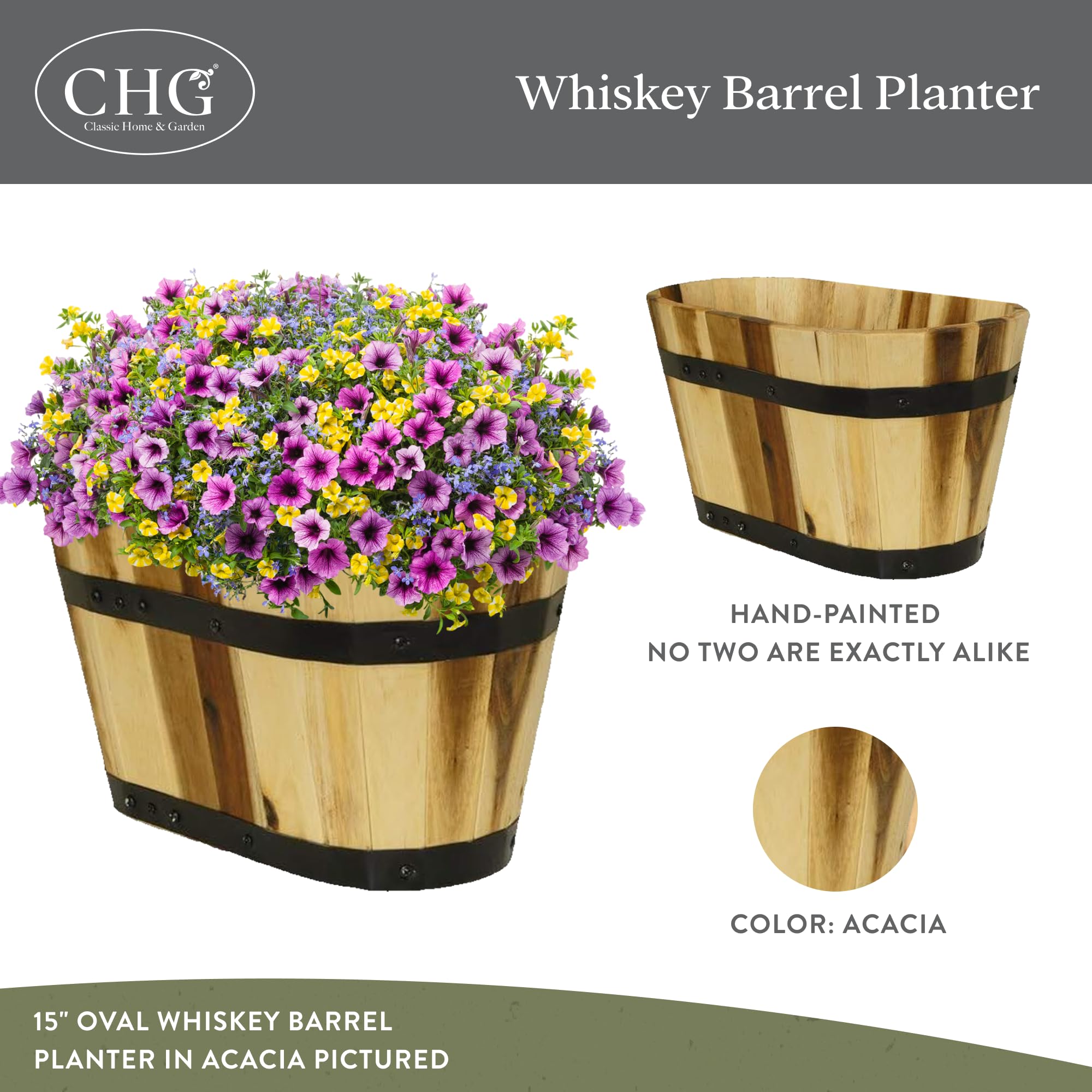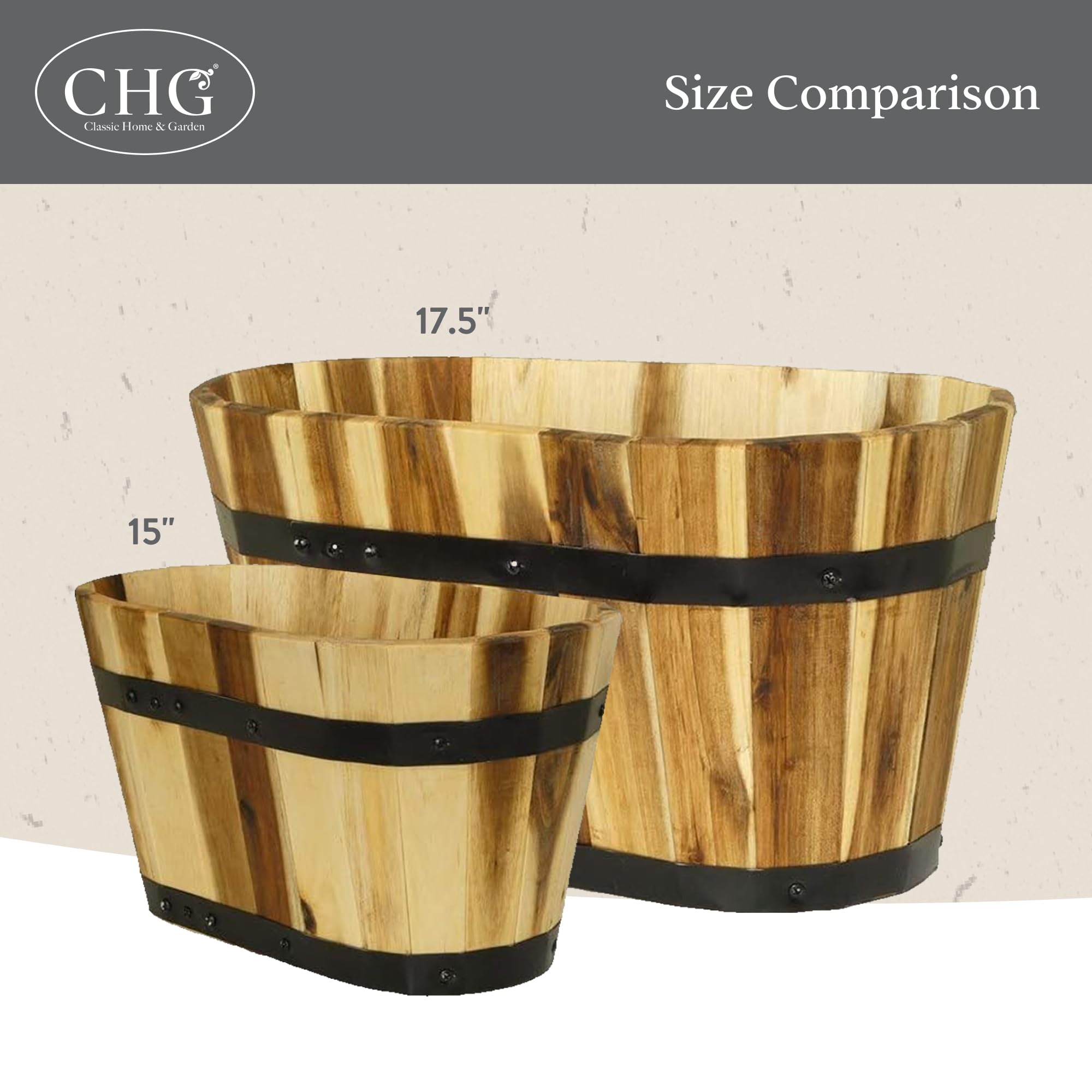 Classic Home and Garden Pflanzgefässe aus Akazienholz, oval, halbfass mit Metallband, Verschiedene Grössen (2er Set)