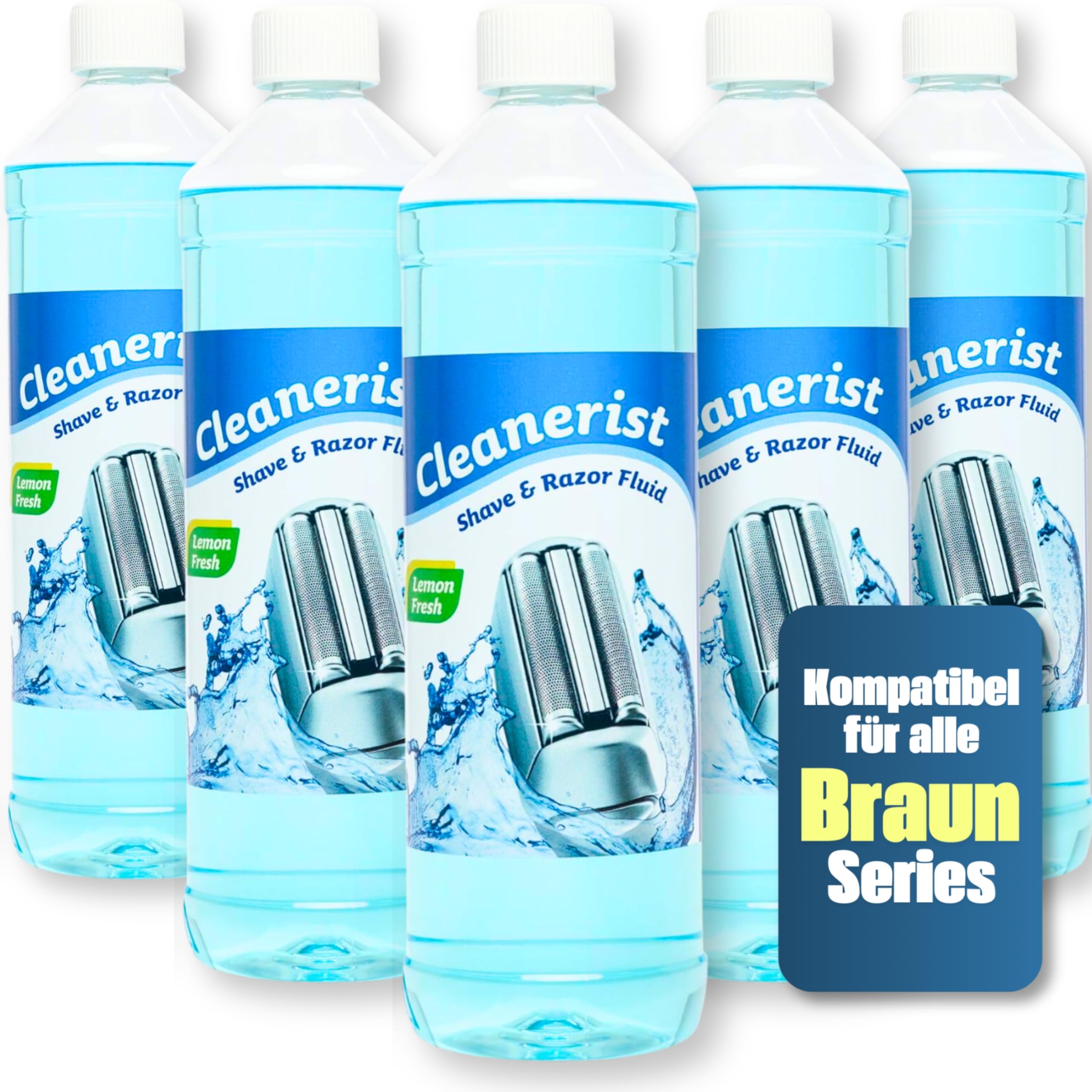 Cleanerist | 5x 1L Scherkopfreiniger Nachfüllflüssigkeit für Braun Clean & Renew (Series 3/5/7/8/9) – Ersatz zum Nachfüllen von 50 CCR Reinigungskartuschen – Rasierer Reinigungsflüssigkeit Lemon Fresh