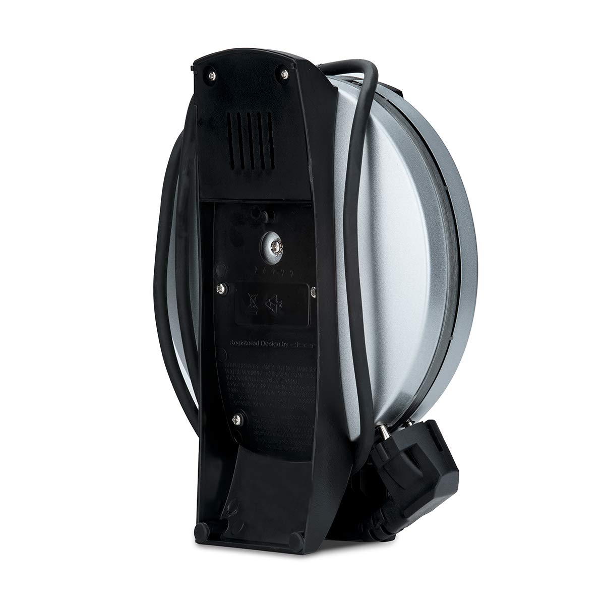 Waffelautomat 1629 Waffelgrösse 15,5 cm Fettarmes Backen durch Antihaftbeschichtung Kabelaufwicklung mit Steckerdepot Einfache Reinigung durch innen liegendes Scharnier und Fettauffangrille Optische Fertigmeldung Stufenlos wählbarer Bräunungsgrad mit Drehregler Platzsparende, auf den Griffen stehende Aufbewahrung Kabelaufwicklung mit Steckerdepot Flexibles Scharnier für ein besseres Aufgehen der Wafffel Mattiertes Metallgehäuse H =10,0 cm x B = 24,0 cm x L = 18,50 cm 1,4 kg, 230 V, 930 W