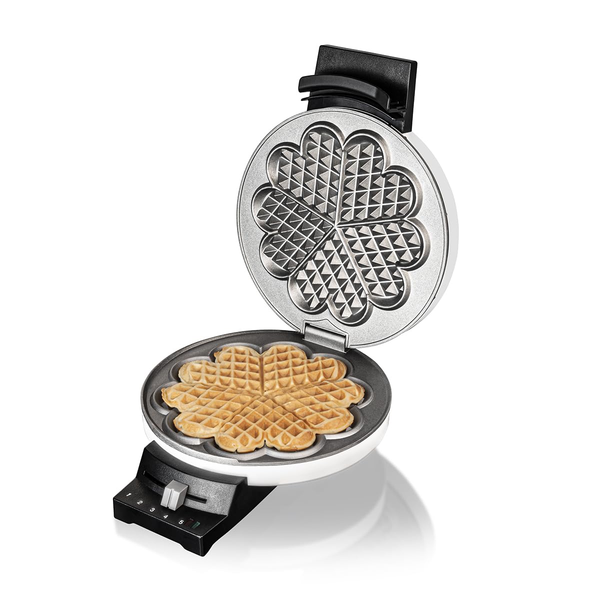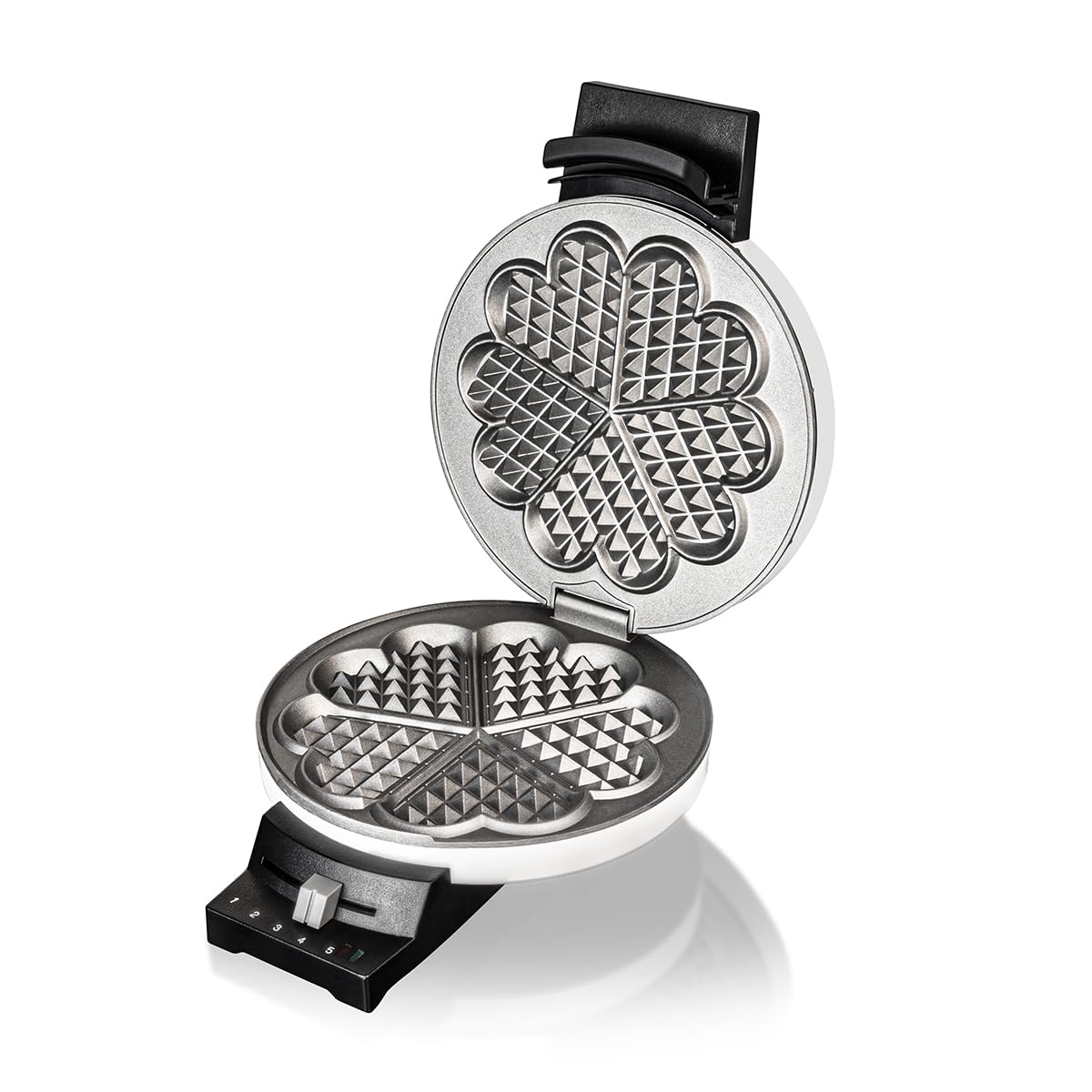Cloer 181 Waffeleisen für eine Herzwaffel, 930 W, Waffelgrösse 16 cm, schwere Backplatten, optische und akustische Fertigmeldung, Metall, weiss
