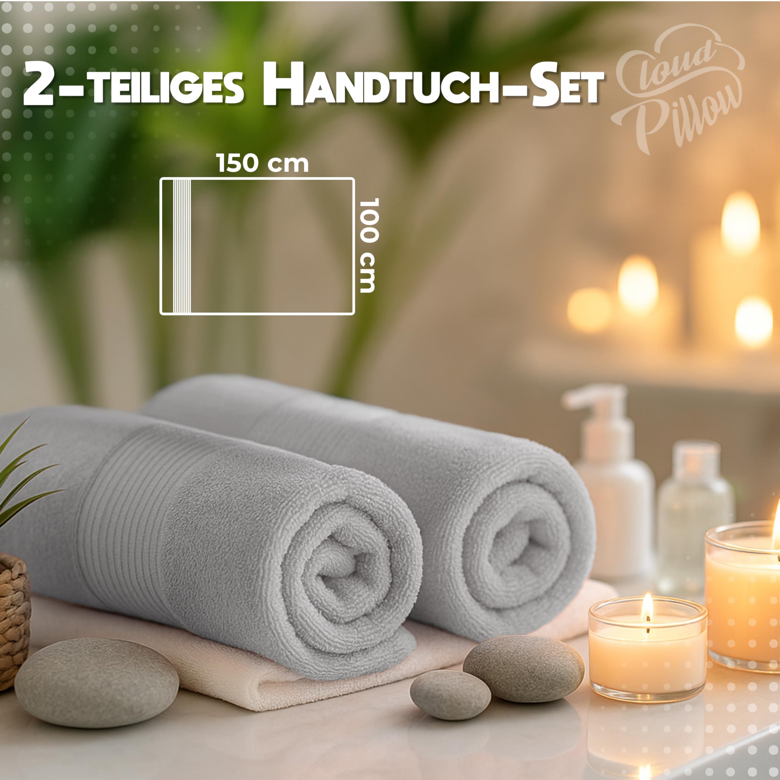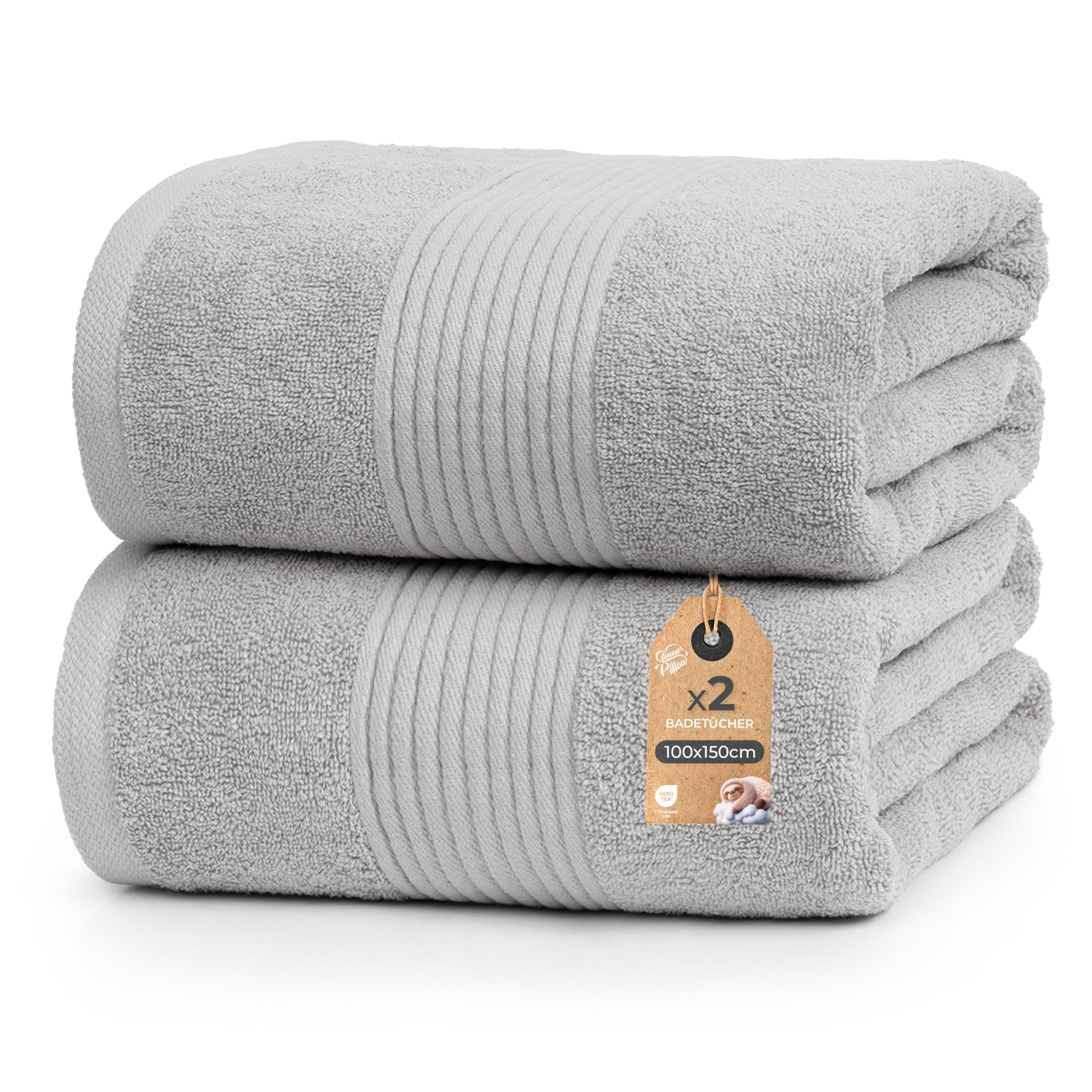 Cloud Pillow 2er Set Badetücher 100x150 cm – Badetuch Groß 100% Baumwolle - Duschtücher 500 g/m2 - Weich, Saugstark und Langlebig – Oeko-TEX - Ideal für Bad & Wellness - Hellgrau