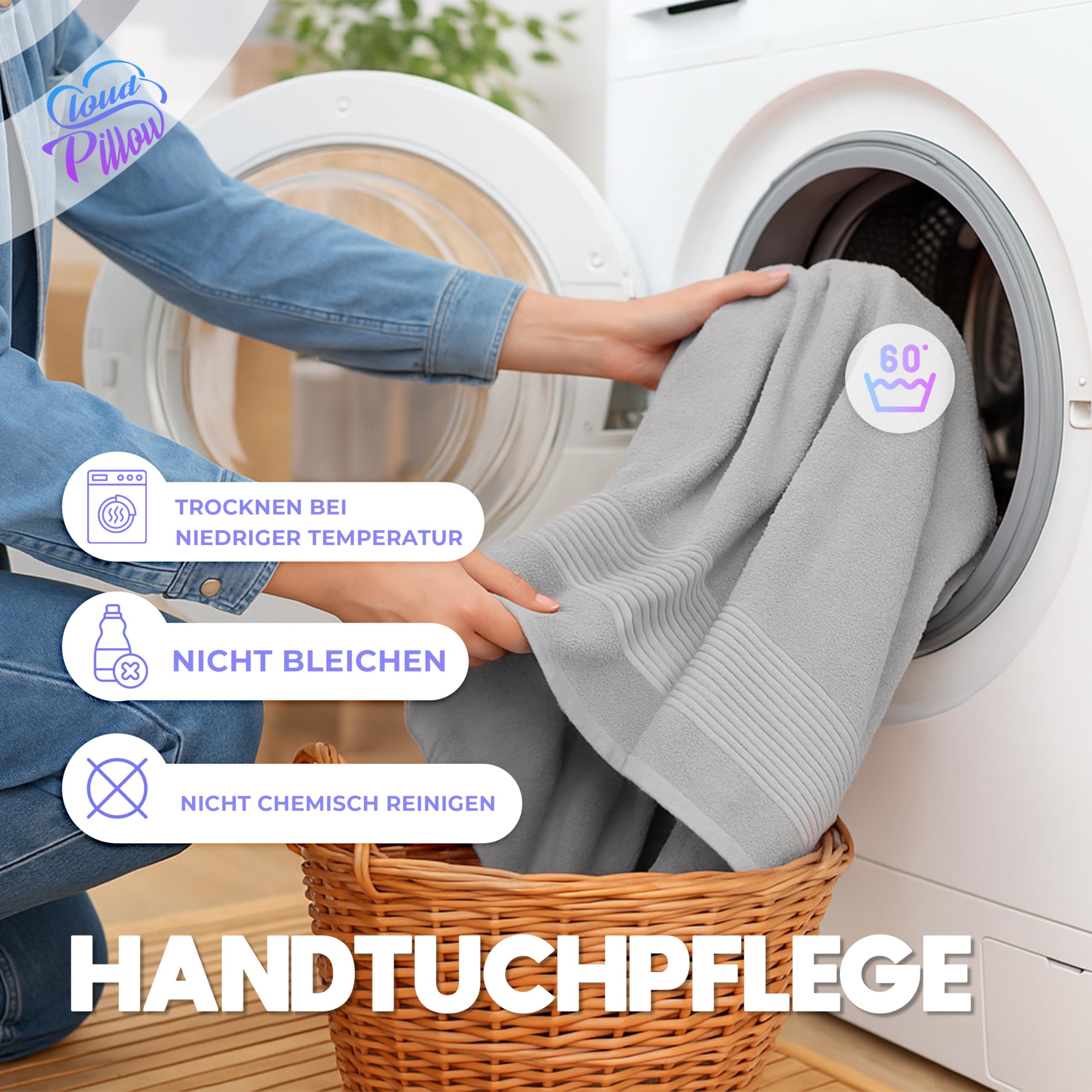 Gönnen Sie sich täglich das Gefühl von Frische und Komfort – mit dem Cloud Pillow duschtuch 100x150 cm im praktischen 2er-Pack. Jedes Tuch besteht aus 100 % reiner Baumwolle mit einem Gewicht von 500 g/m2 und bietet genau das, was Sie von hochwertigen Frottierhandtüchern erwarten: Saugkraft, Weichheit und Langlebigkeit. Die angenehm flauschige Oberfläche verwöhnt Ihre Haut nach dem Duschen oder Händewaschen und nimmt Feuchtigkeit zuverlässig auf. Selbst bei häufigem Waschen bleiben die badezimmer set formstabil und farbecht – ohne Verziehen, ohne Fusseln. Waschbar bei 60 °C und trocknergeeignet – für hygienische Frische im Alltag. Das moderne, zeitlose Design fügt sich harmonisch in jede Badezimmereinrichtung ein – ob minimalistisch, klassisch oder gemütlich. Die verschiedenen Farboptionen machen das Set auch zu einem schönen Geschenk für Freunde oder Familie. Dank der verstärkten Doppelnähte und der nahtlosen Verarbeitung mit doppelter Saumfalte überzeugen die Frottee Handtücher zudem durch Langlebigkeit und Strapazierfähigkeit. Nicht nur für Zuhause: Perfekt auch für Hotel, Spa, Sauna, Fitness, Ferienwohnung oder Camping – überall dort, wo Komfort, Hygiene und vielseitige Verwendbarkeit gefragt sind. Alle Handtücher sind nach STANDARD 100 by OEKO-TEX zertifiziert und somit frei von schädlichen Substanzen. Das macht sie besonders hautfreundlich – auch für Kinder und Allergiker geeignet. 100 % Baumwolle – weich & atmungsaktiv Saugstark & schnelltrocknend Strapazierfähig & pflegeleicht OEKO-TEX zertifiziert – geprüft auf Schadstoffe Vielseitig einsetzbar – Bad, Spa, Reisen Cloud Pillow – das Handtuchset, das Komfort, Qualität und Stil vereint. Die ideale Wahl für alle, die Wert auf ein gutes Gefühl und langlebige Materialien legen.