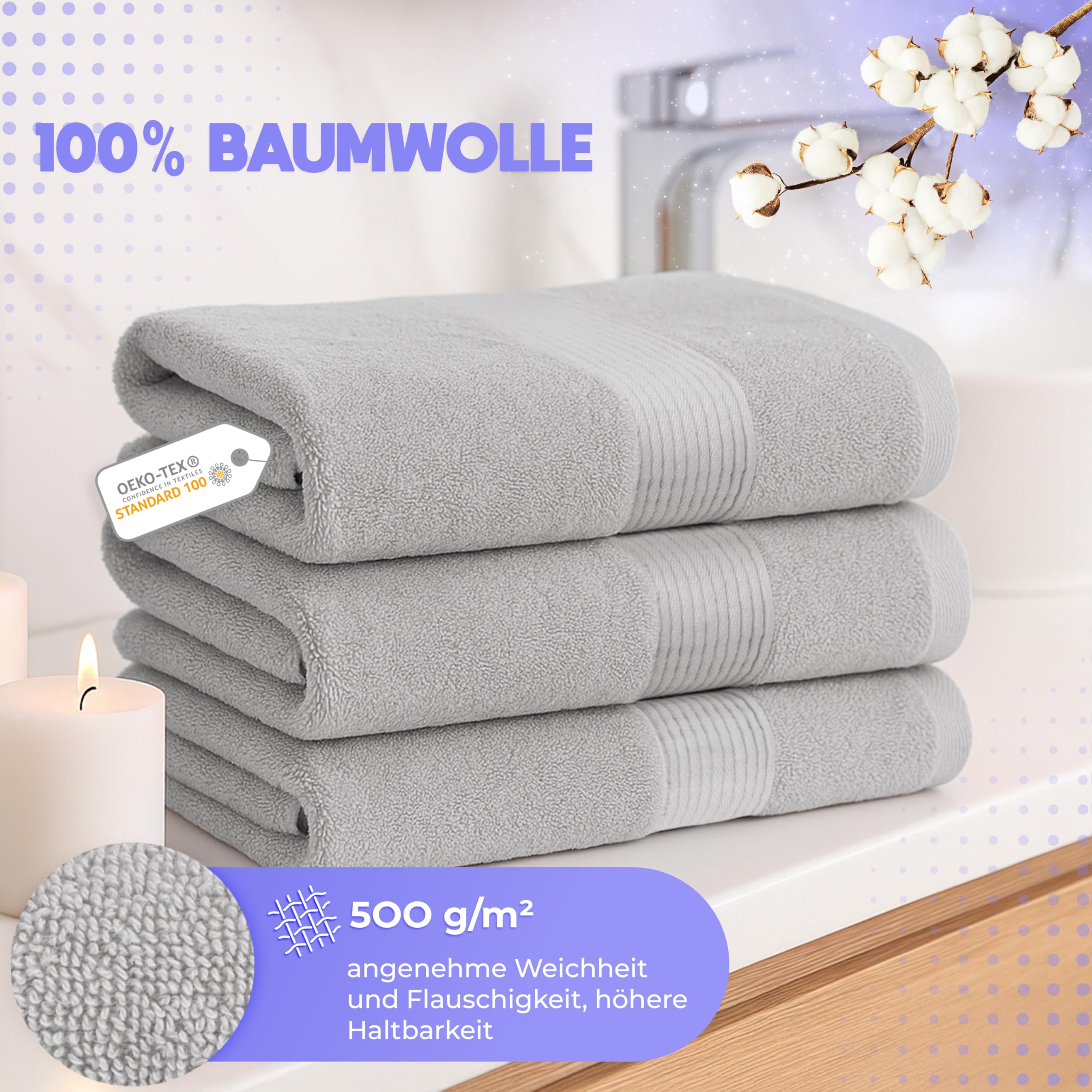 • Hochwertige Baumwolle – spürbar weich & angenehm - Hergestellt aus 100 % natürlicher badetuch set Baumwolle mit 500 g/m2 – diese Handtücher bieten ein flauschiges Gefühl und hohen Komfort im täglichen Gebrauch. Ideal für Bad oder Gäste, auch als badetuch 100x150 erhältlich.