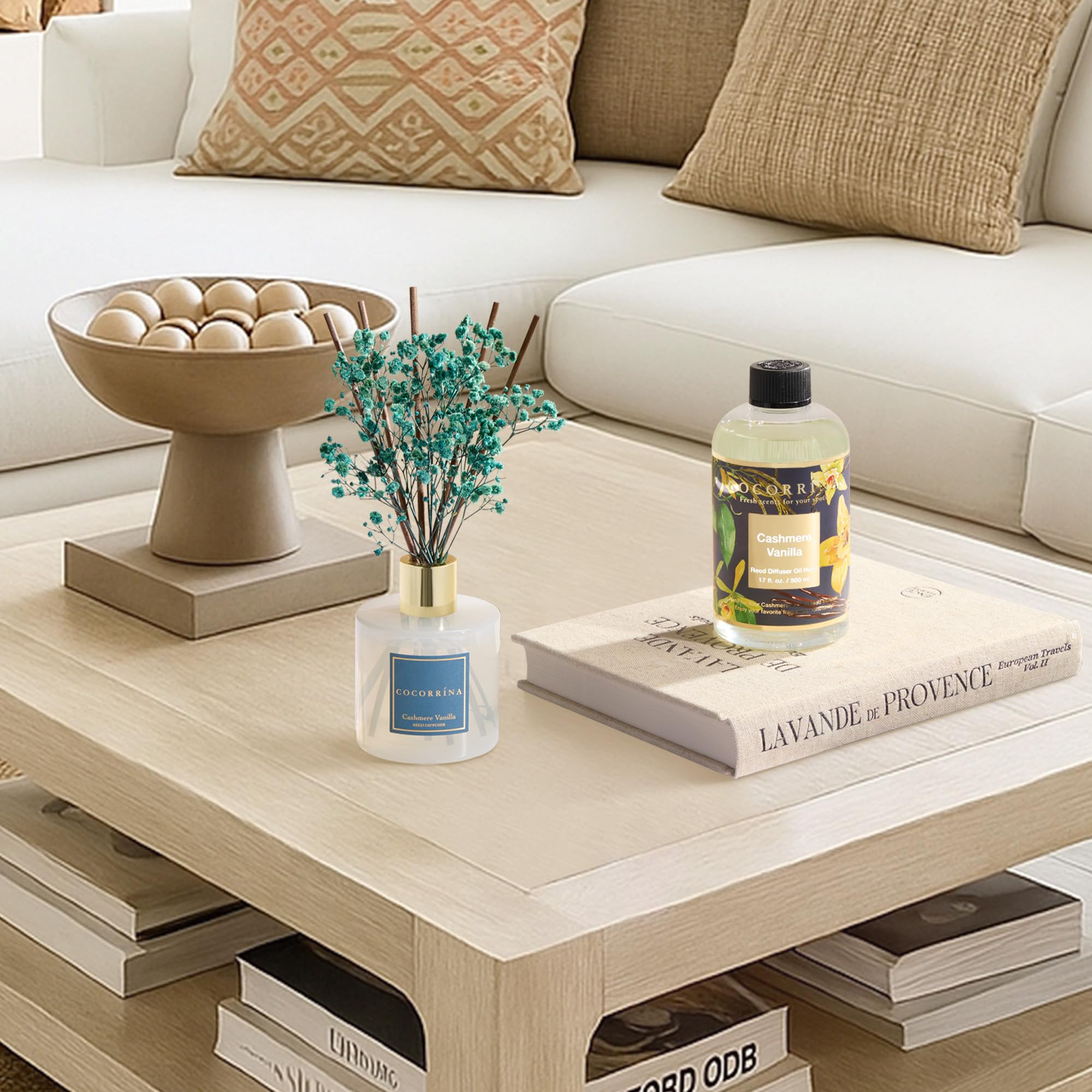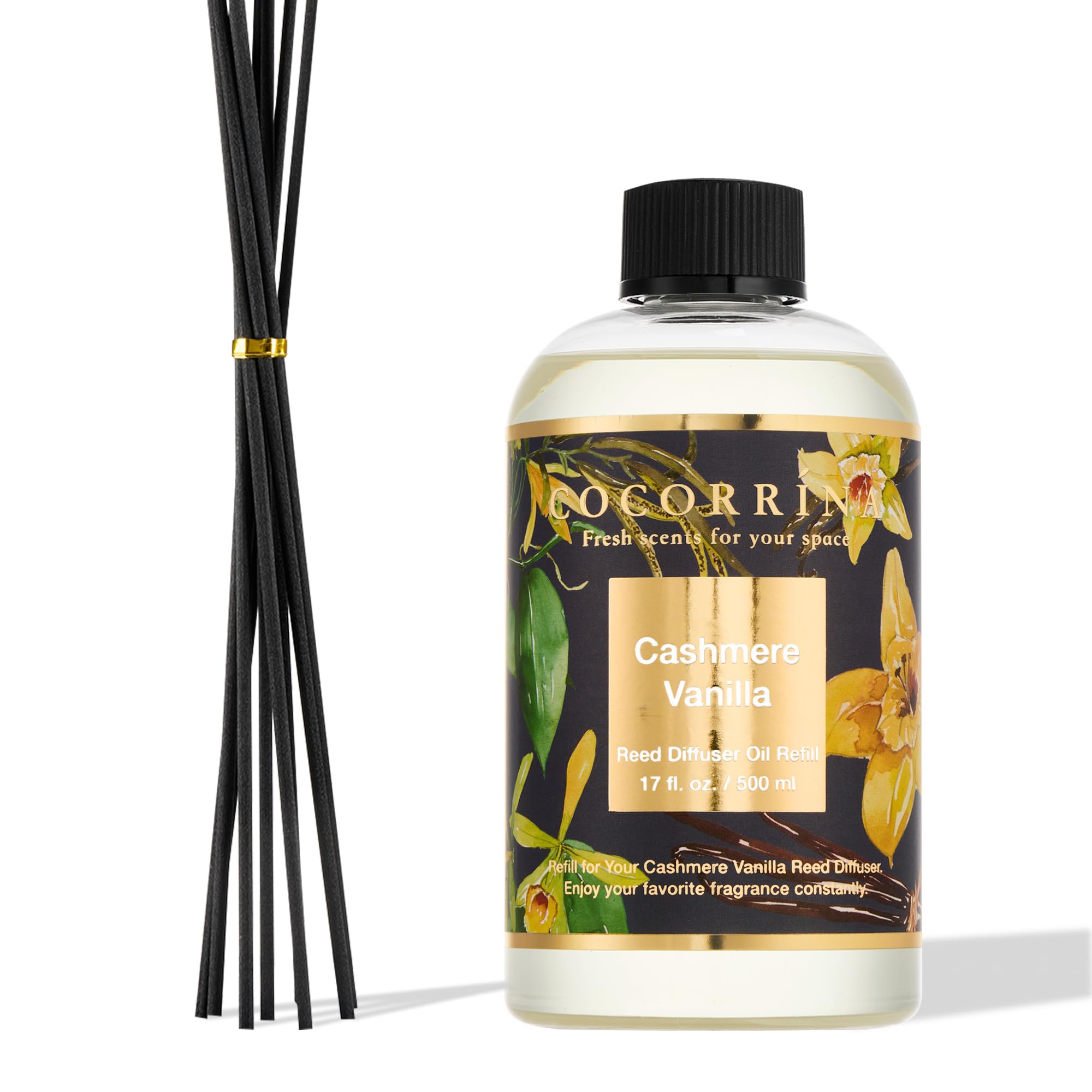 COCORRÍNA Raumduft Nachfüller 500ml mit 8 Duftstäbchen, Cashmere Vanilla, Langanhaltender Duft mit natürlichen ätherischen Ölen, für Wohnzimmer, Schlafzimmer und Badezimmer