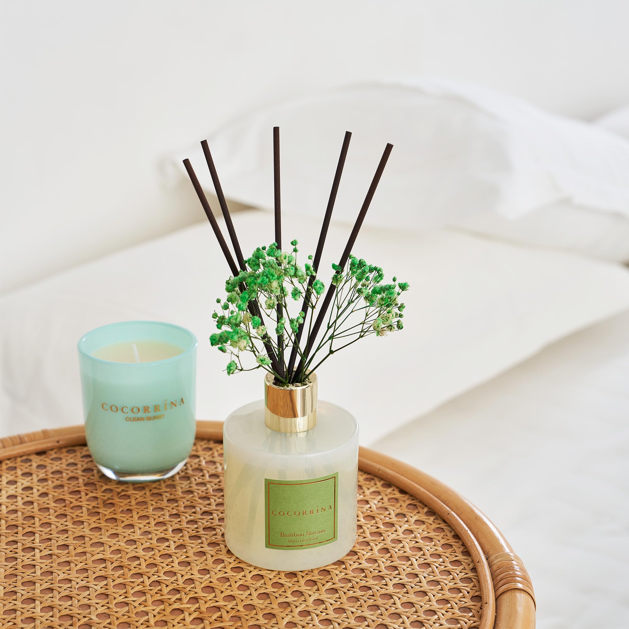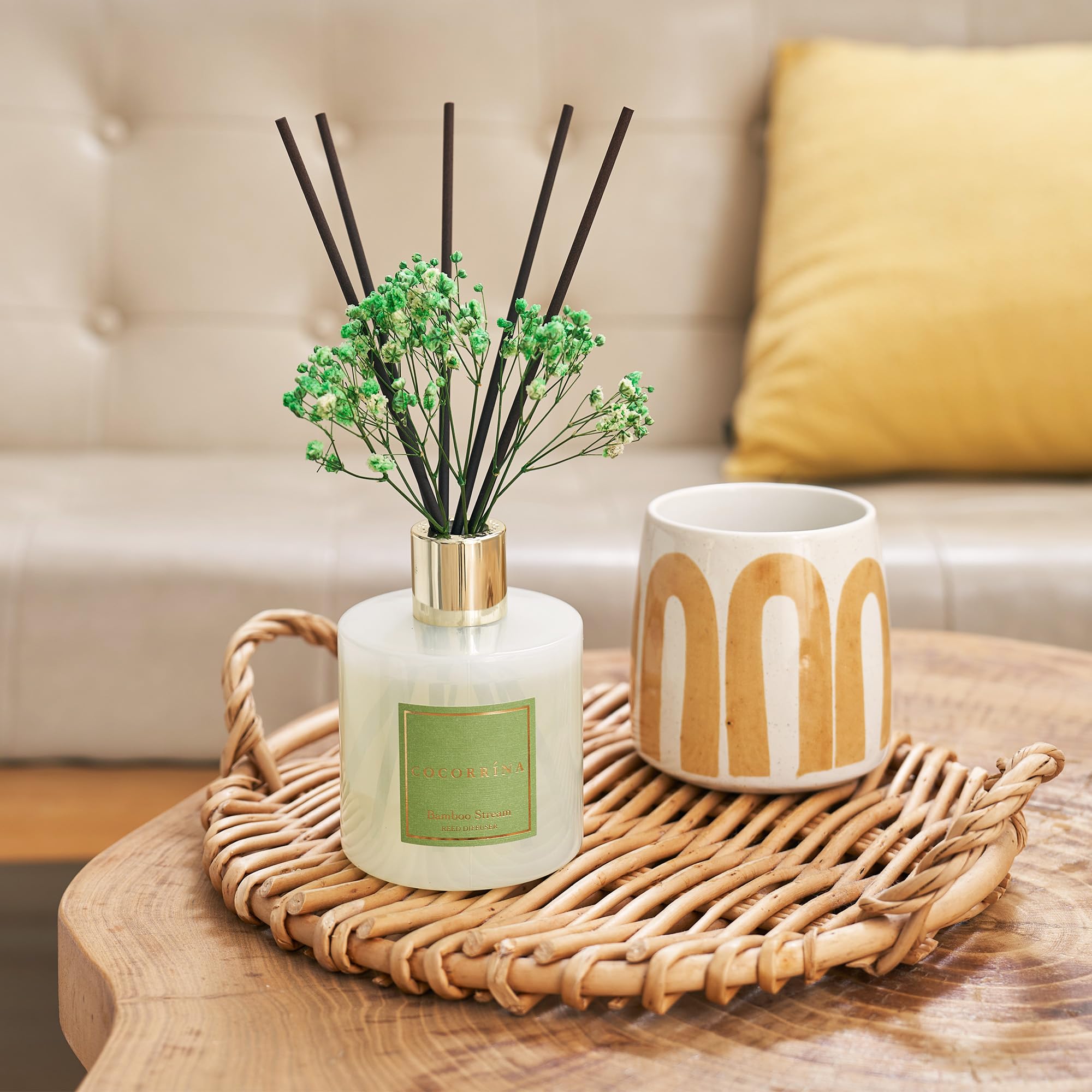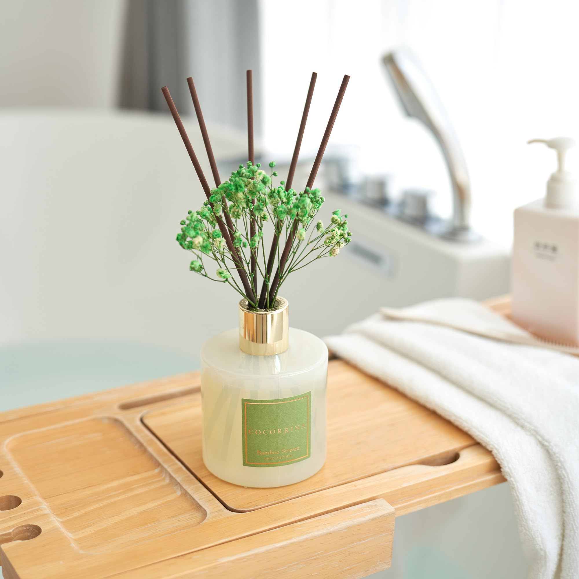 COCORRÍNA Raumduft Reed Diffuser mit 8 Duftstäbchen 200ml- Bamboo Stream, Natürlich, Langanhaltend, Home Duft ätherisches Öl Reed Diffusor für Badezimmer Regal Dekoration