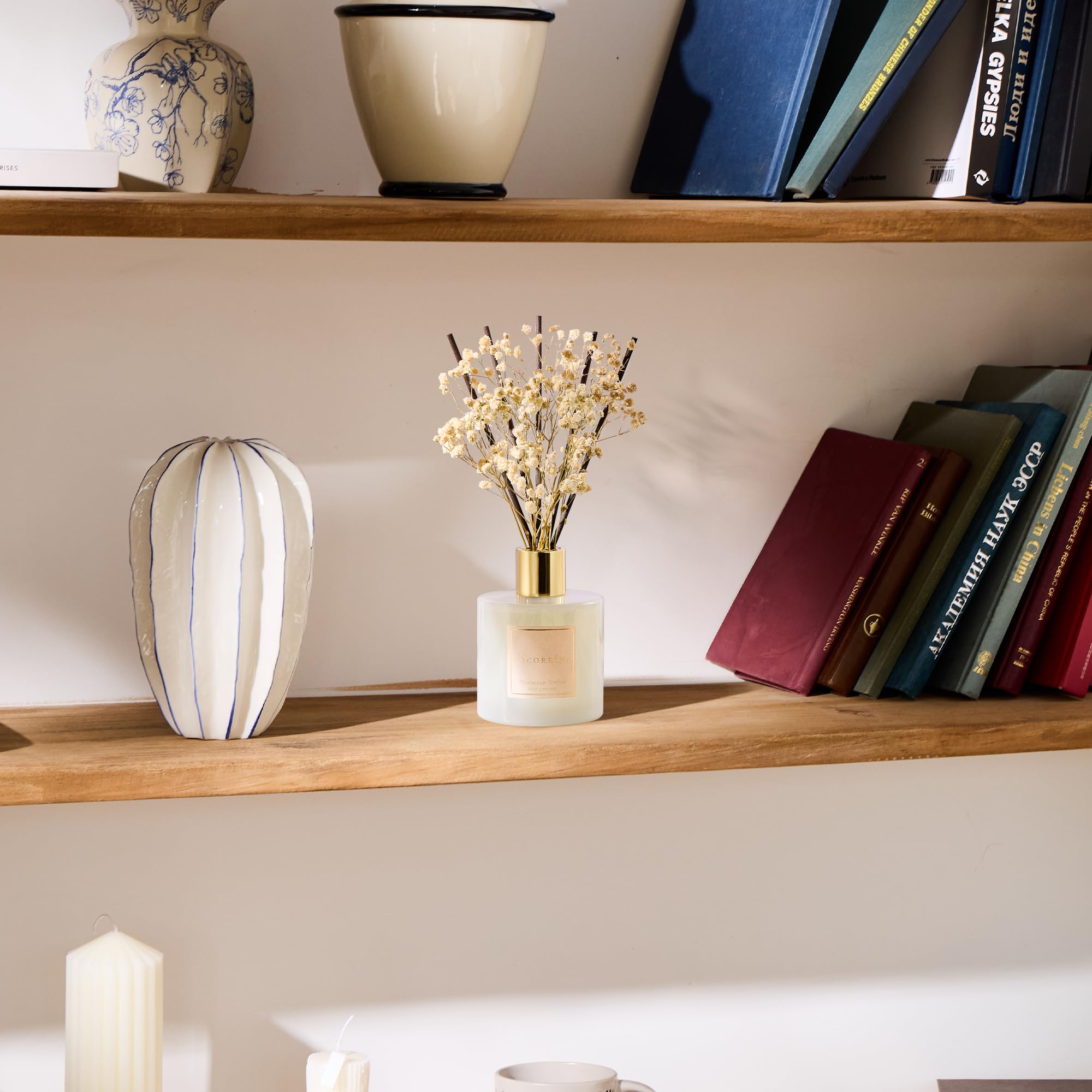 COCORRÍNA Raumduft 200ml mit 8 Duftstäbchen, Moroccan Amber, Natürliche ätherische Öle für einen Langanhaltenden, erfrischenden Duft, Home Duft für Wohnzimmer, Schlafzimmer, Badezimmer Dekoration