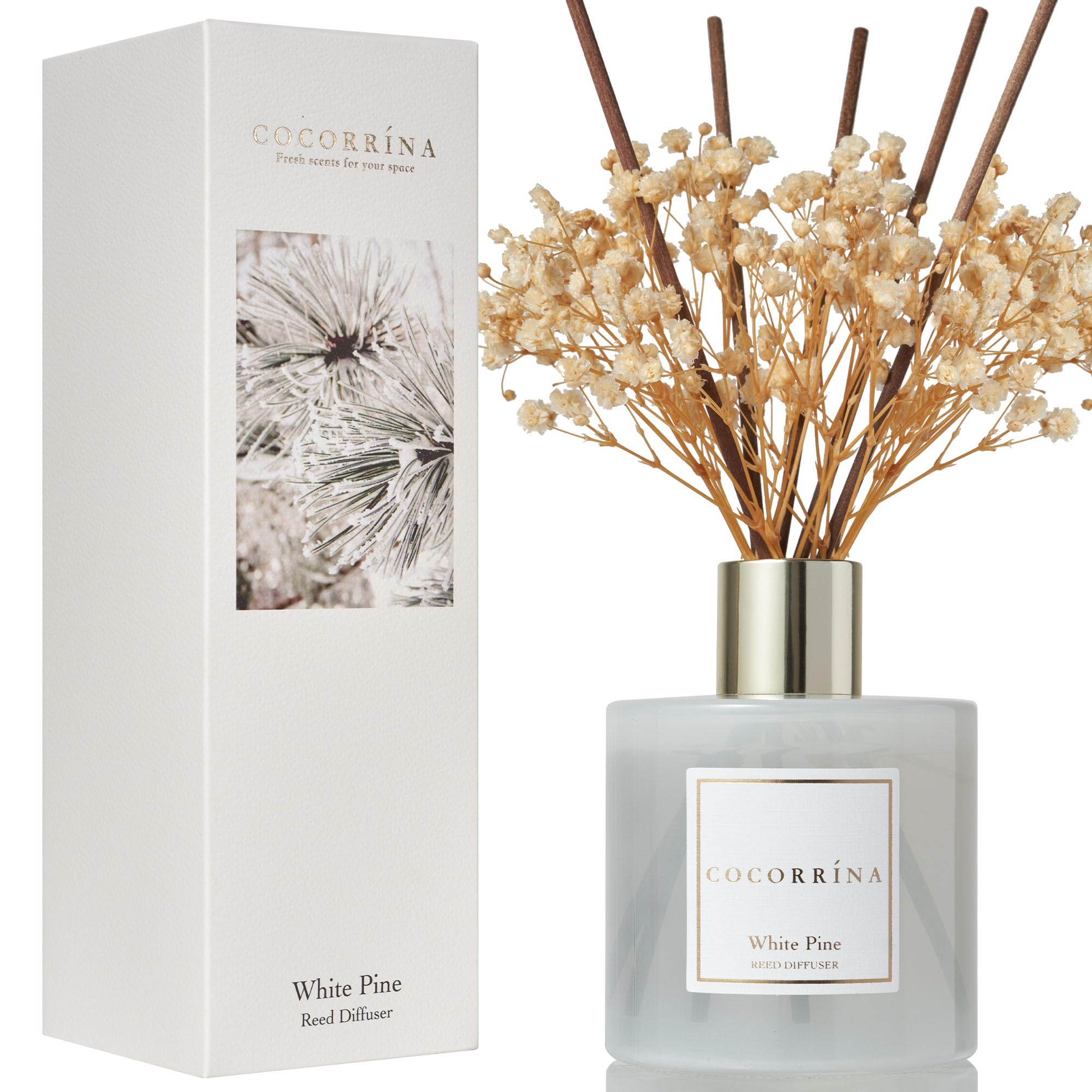 Cocorrína Raumduft Reed Diffuser mit 8 Duftstäbchen 200ml - Weisse Kiefer, Natürlich, Langanhaltend, Home Duft ätherisches Öl Reed Diffusor für Badezimmer Regal Dekoration