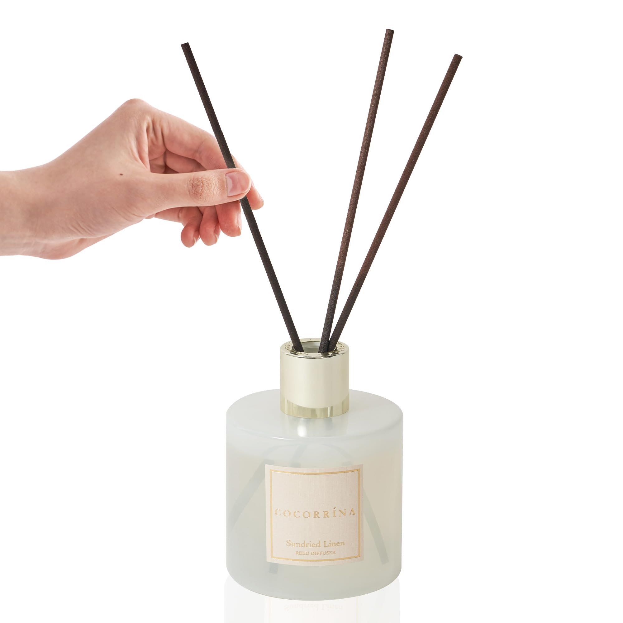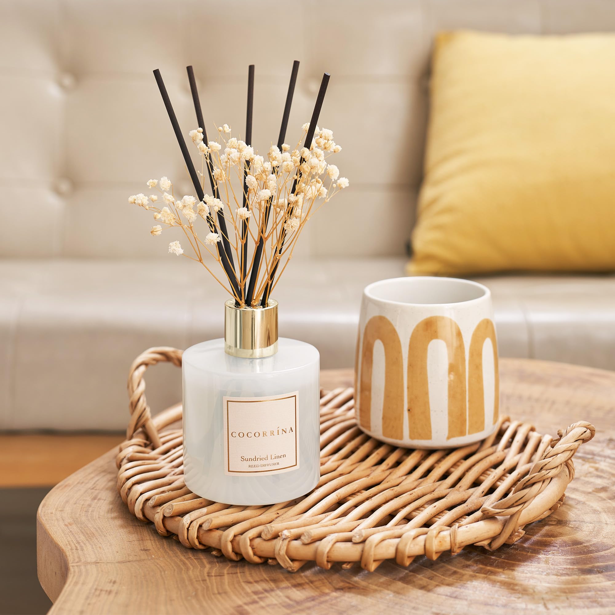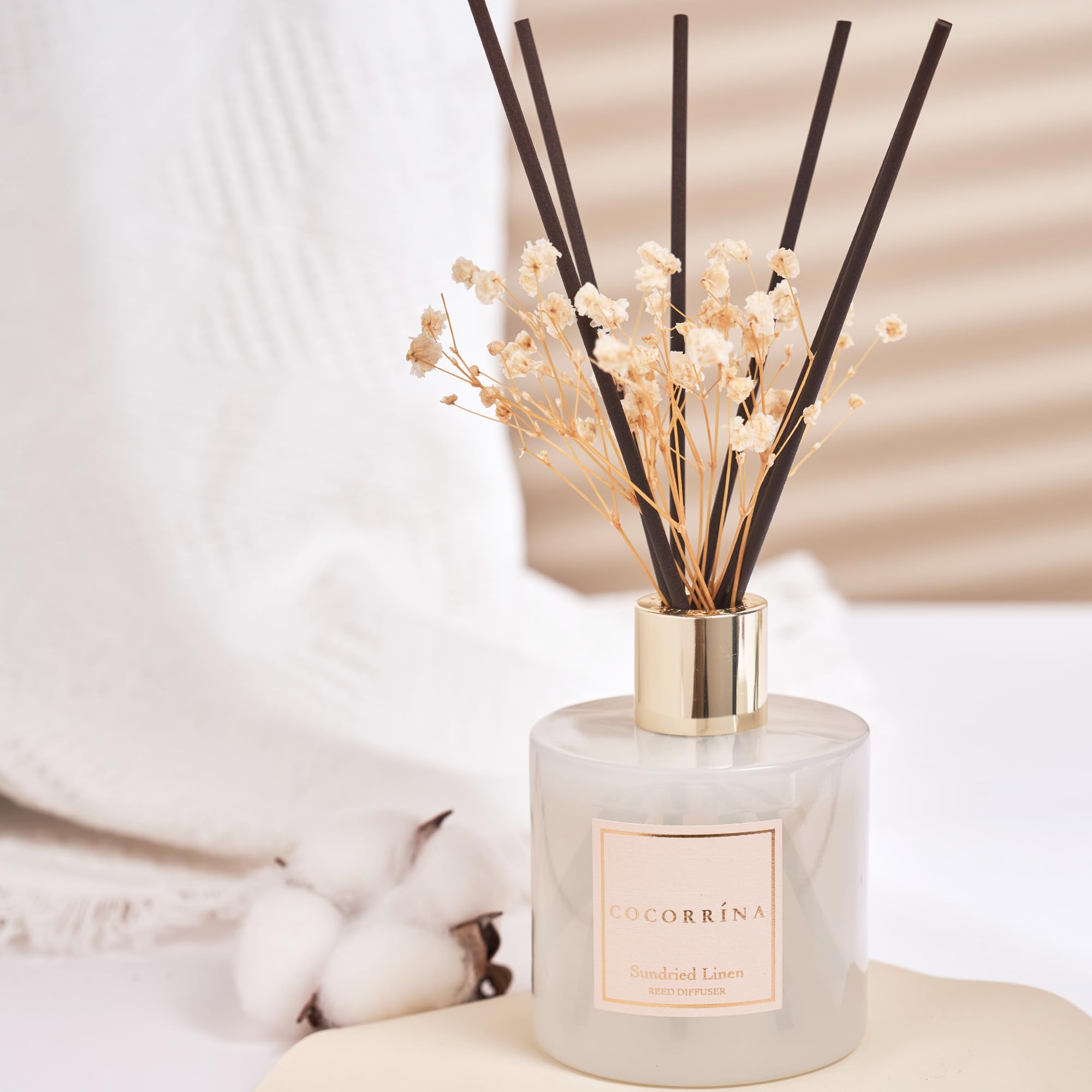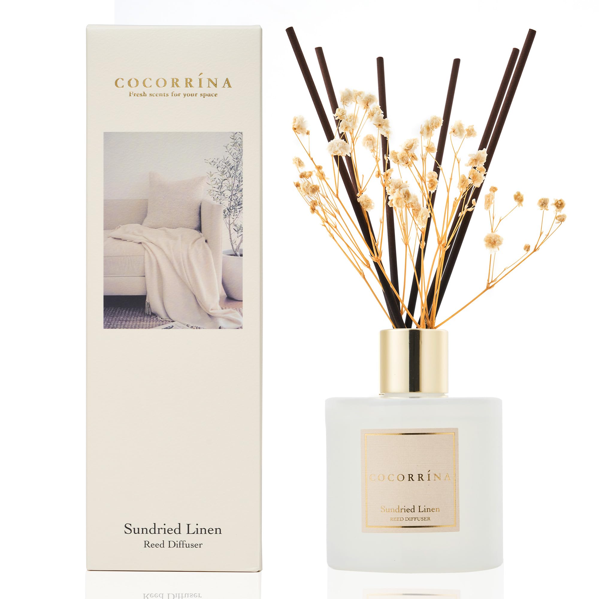 COCORRÍNA Raumduft Reed Diffuser mit 8 Duftstäbchen 200ml- Sonnengetrocknete Leinen, Natürlich, Langanhaltend, Home Duft ätherisches Öl Reed Diffusor für Badezimmer Regal Dekoration