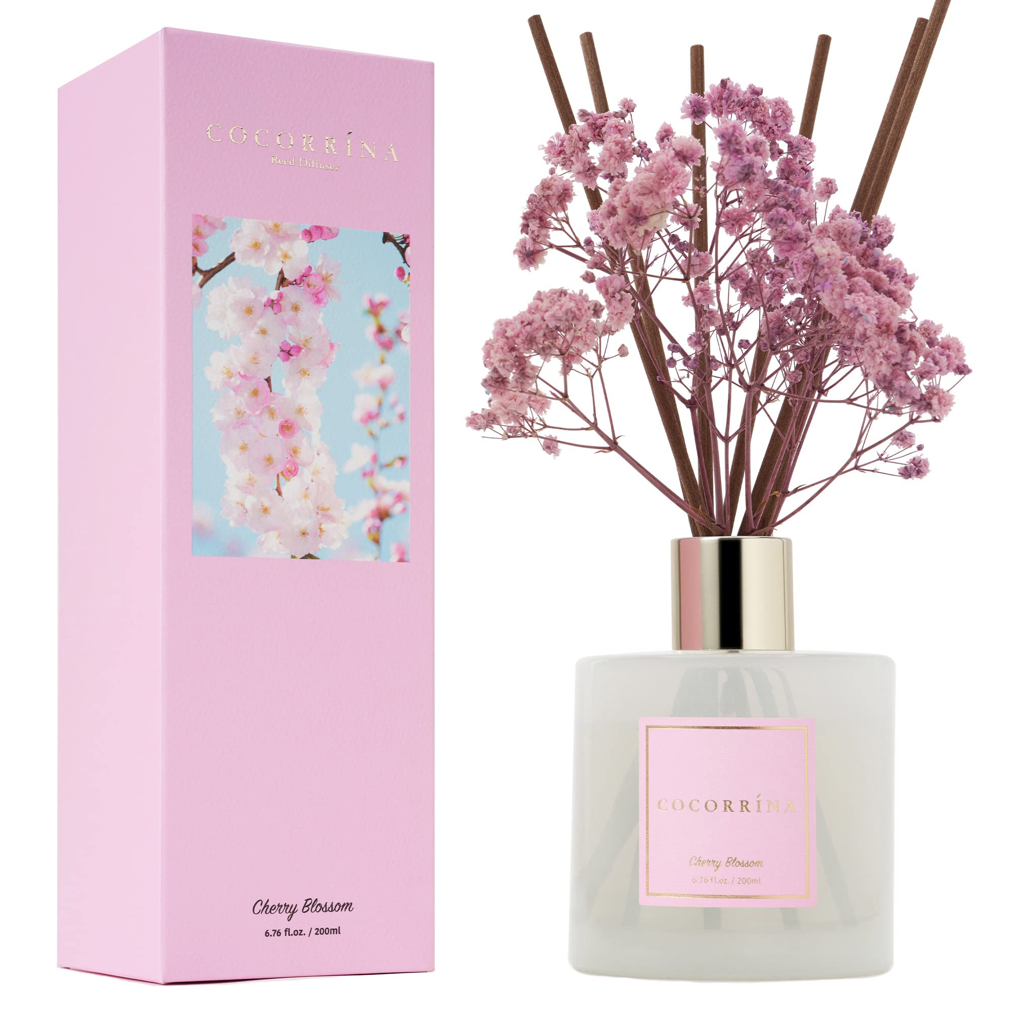 Cocorrína Raumduft Reed Diffuser mit 8 Duftstäbchen 200ml- Kirschblüte, Natürlich, Langanhaltend, Home Duft ätherisches Öl Reed Diffusor für Badezimmer Regal Dekoration