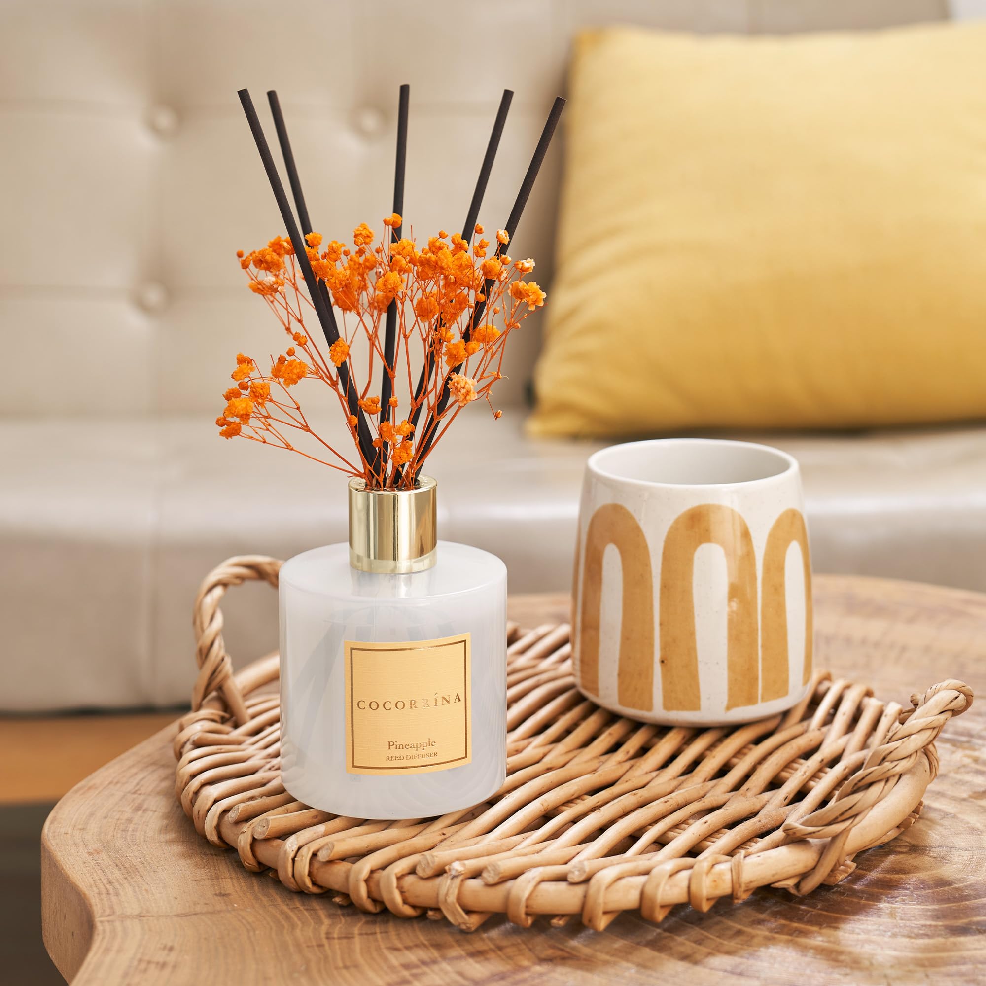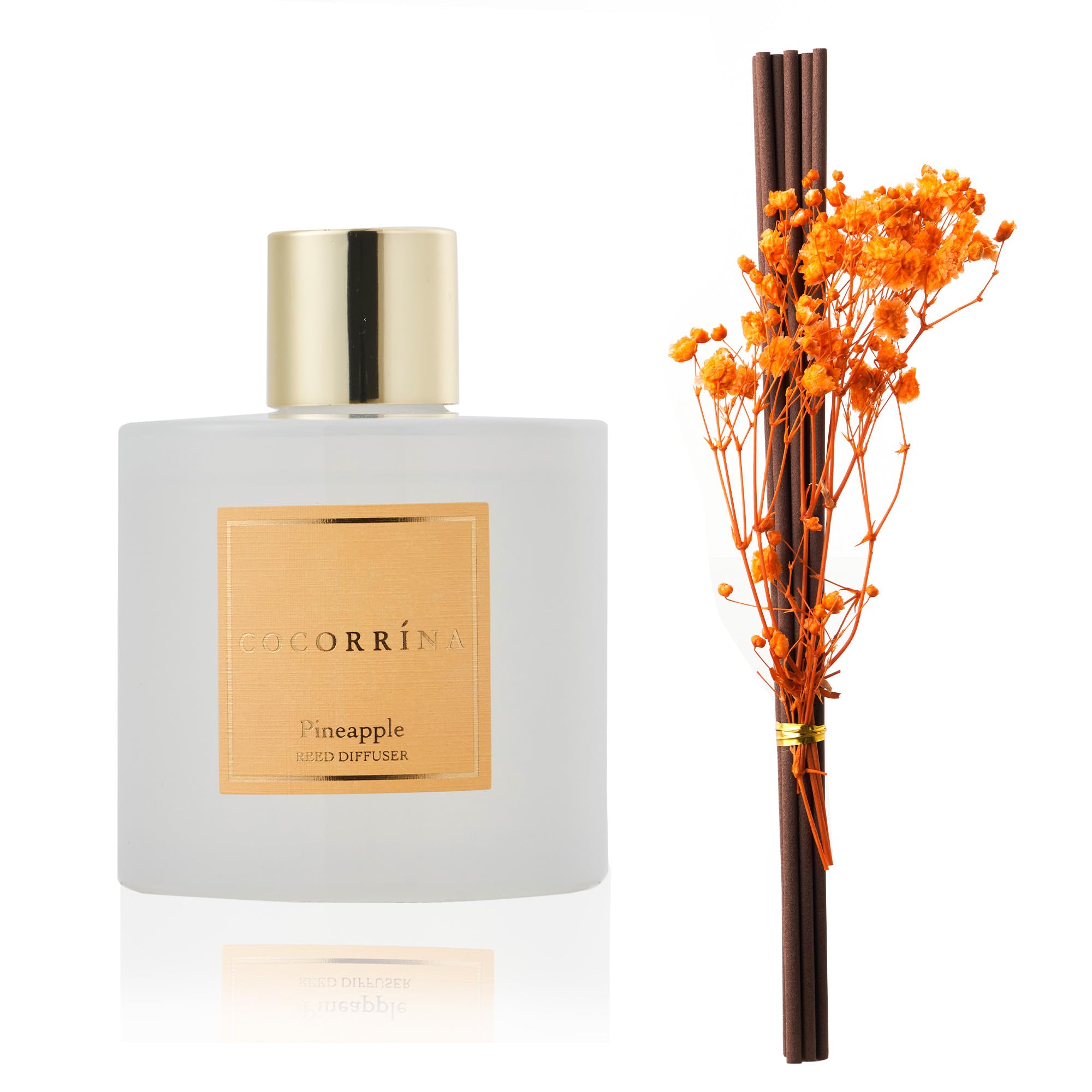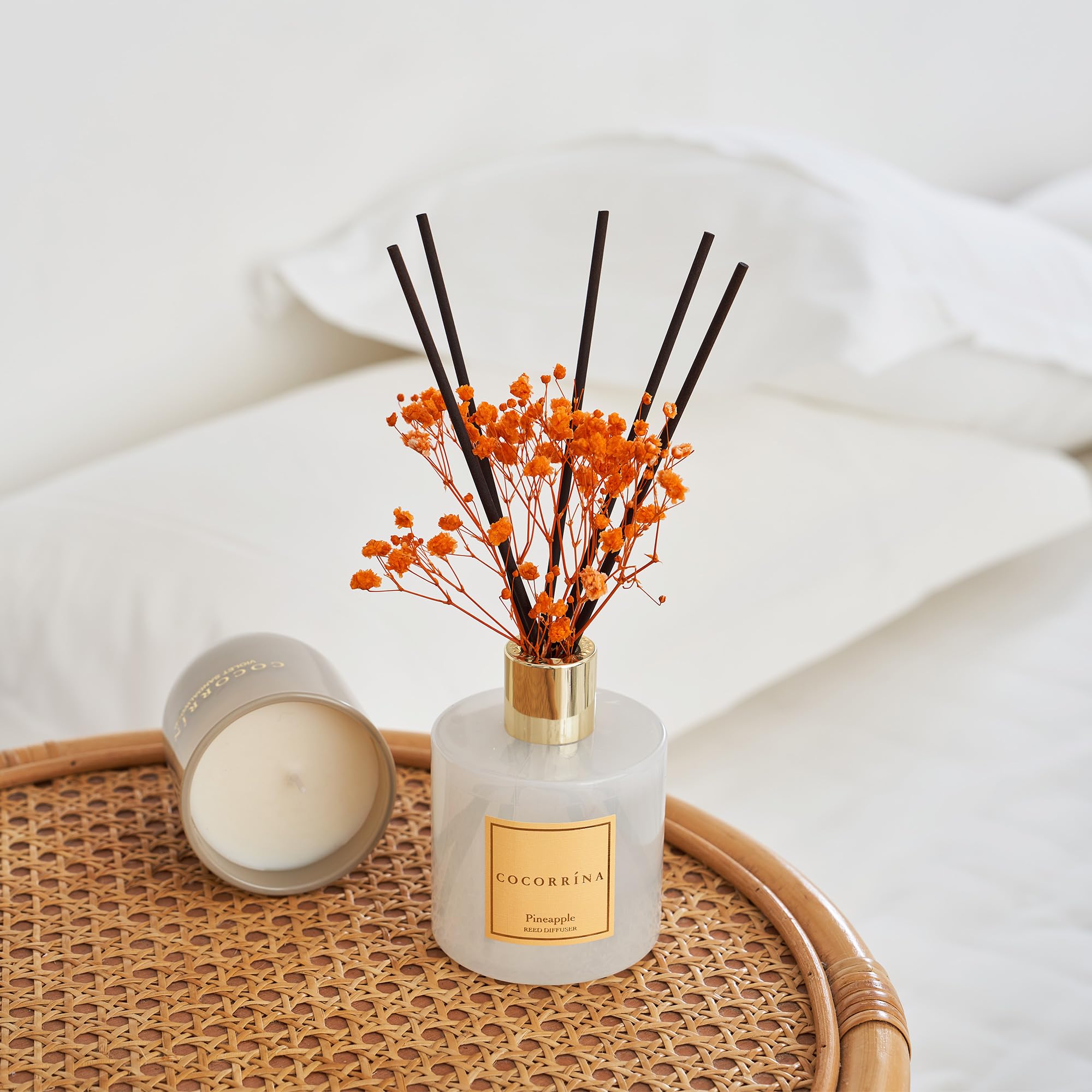 COCORRÍNA Raumduft Reed Diffuser mit 8 Duftstäbchen 200ml- Ananas, Natürlich, Langanhaltend, Home Duft ätherisches Öl Reed Diffusor für Badezimmer Regal Dekoration