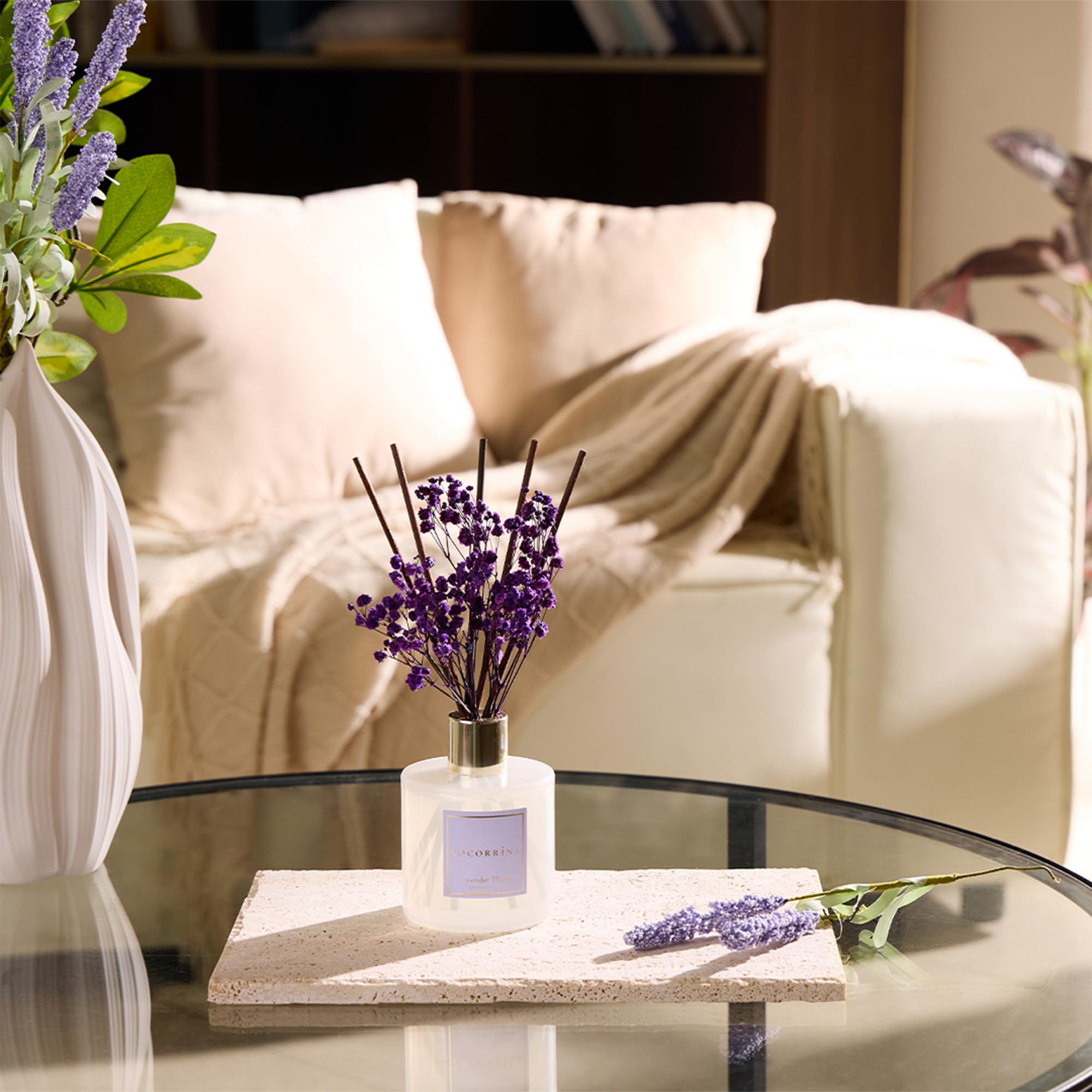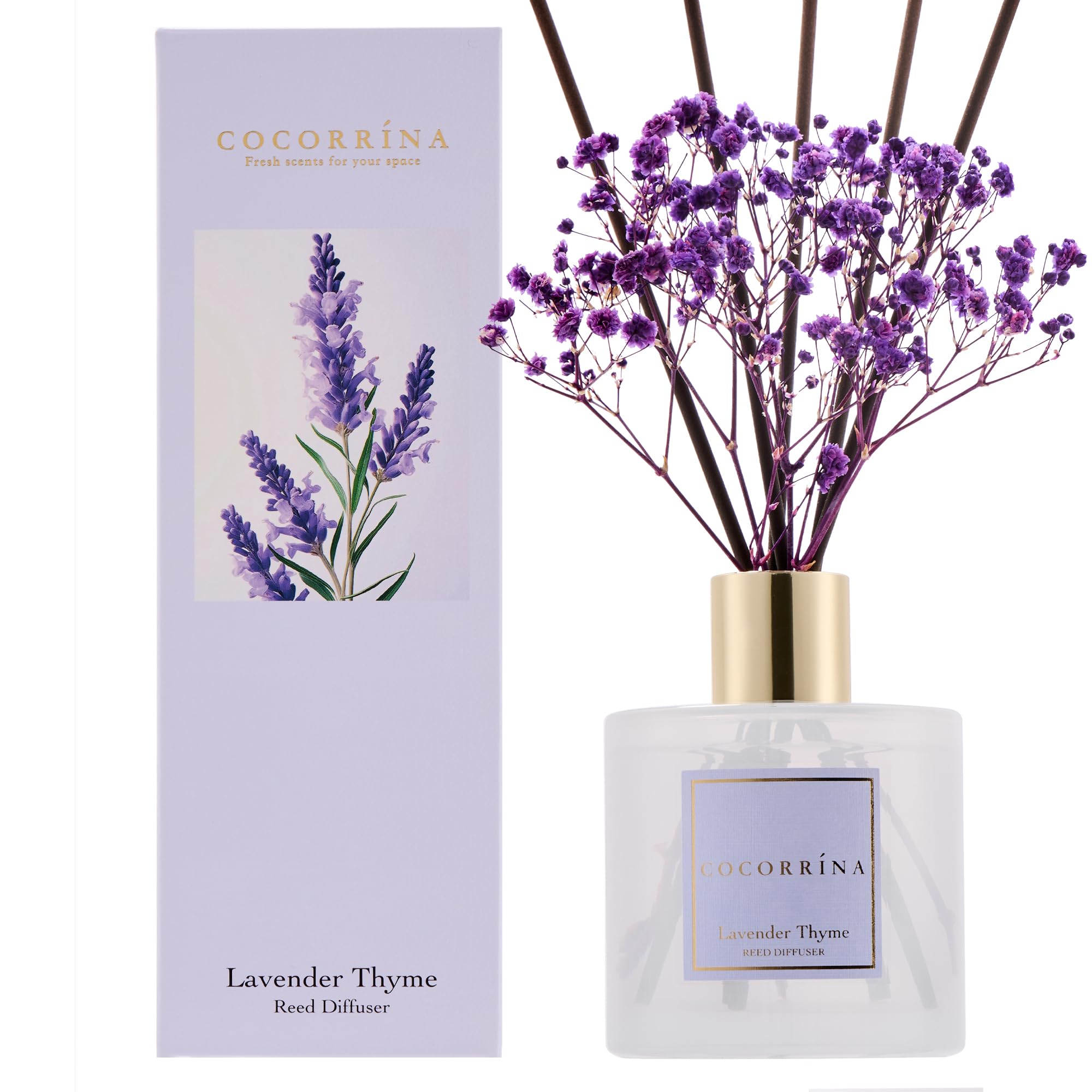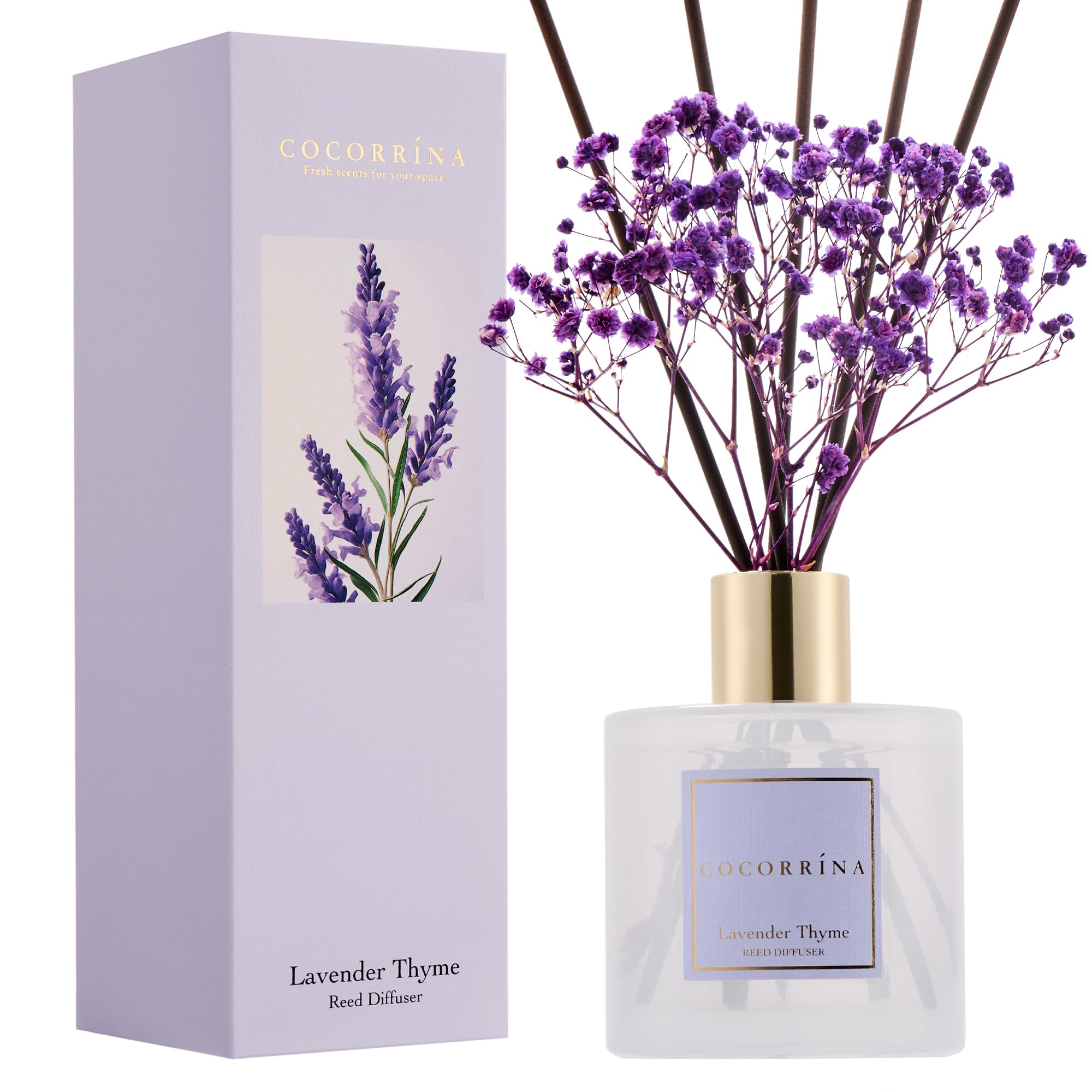 COCORRÍNA Raumduft Lavender Thyme, 200ml Reed Diffuser mit 8 Duftstäbchen, Lufterfrischer für Badezimmer, Wohnung, Heimdekoration