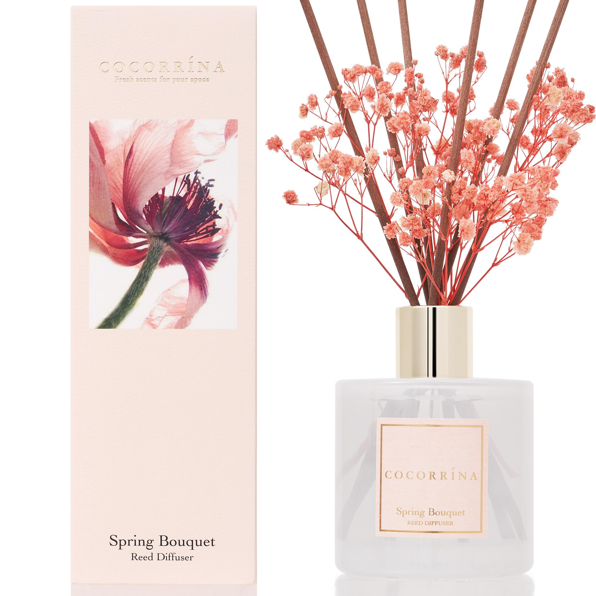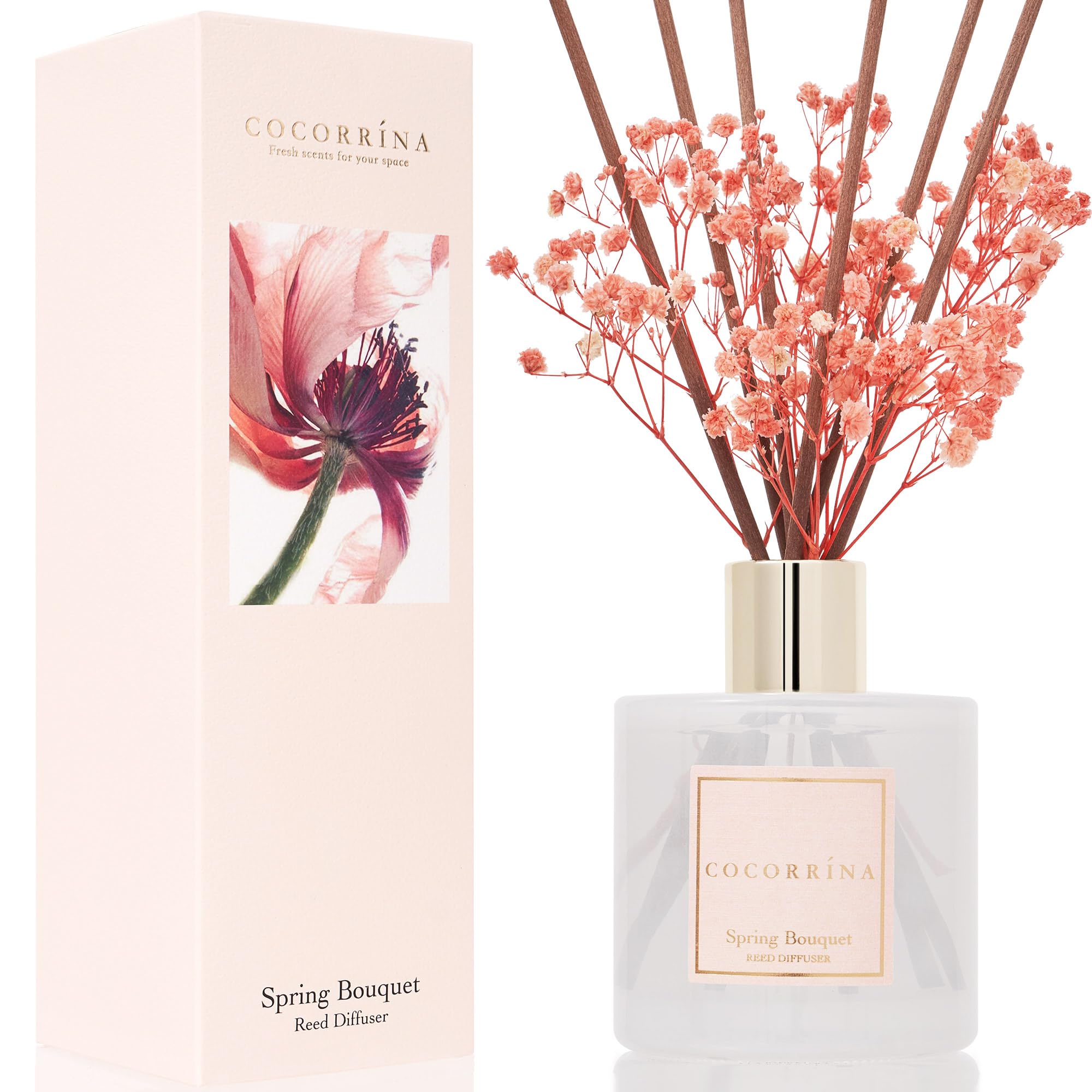 Cocorrína Raumduft Reed Diffuser mit 8 Duftstäbchen 200ml - Frühlingsstrauss, Natürlich, Langanhaltend, Home Duft ätherisches Öl Reed Diffusor für Badezimmer Regal Dekoration