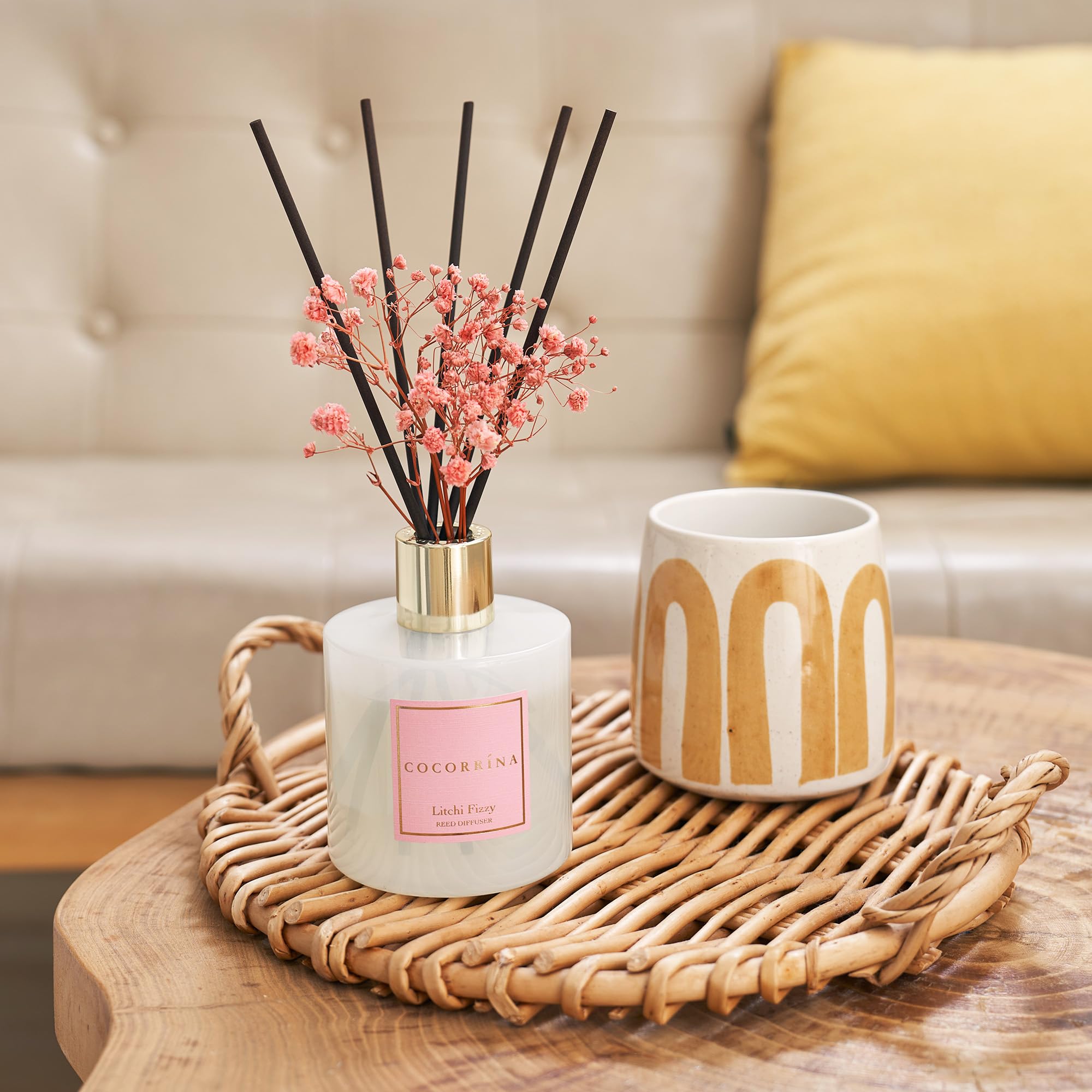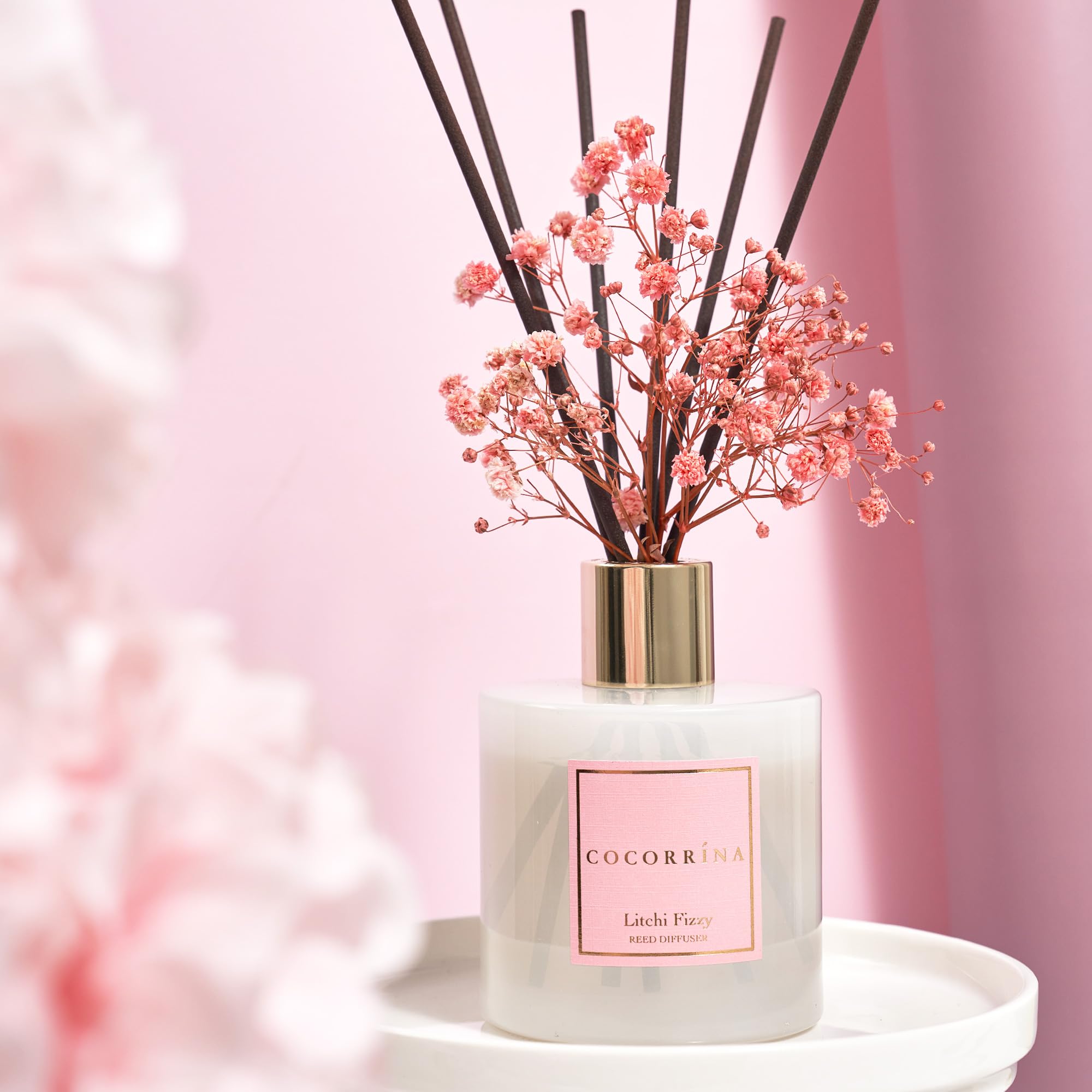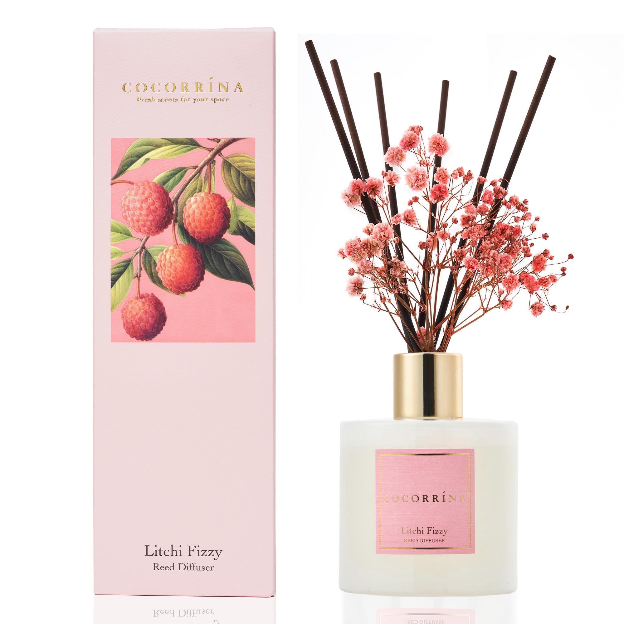 COCORRÍNA Raumduft Reed Diffuser mit 8 Duftstäbchen 200ml- Litchi Sprudel, Natürlich, Langanhaltend, Home Duft ätherisches Öl Reed Diffusor für Badezimmer Regal Dekoration