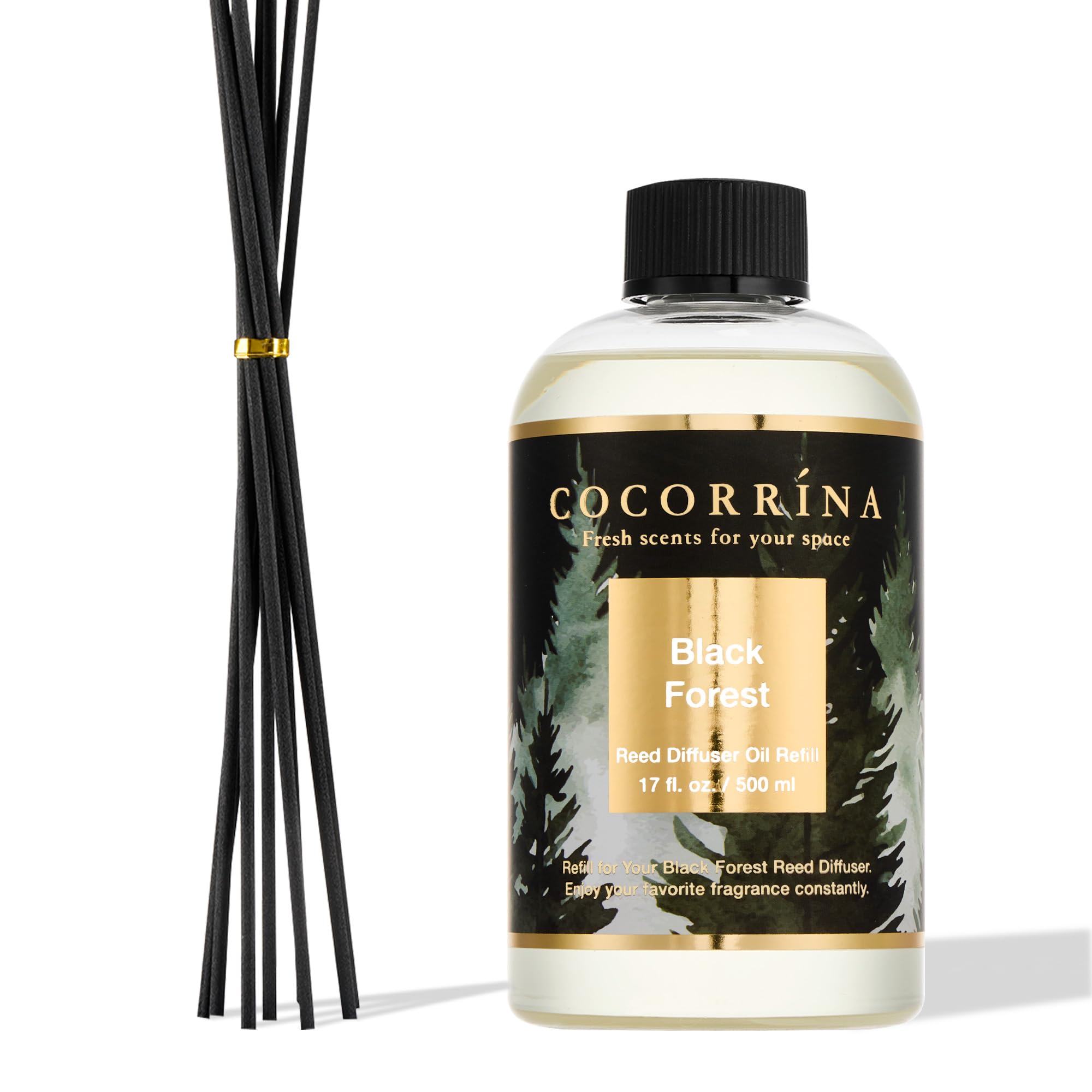 COCORRÍNA Raumduft Nachfüller 500ml mit 8 Duftstäbchen, Black Forest, Langanhaltender Duft mit natürlichen ätherischen Ölen, für Wohnzimmer, Schlafzimmer und Badezimmer