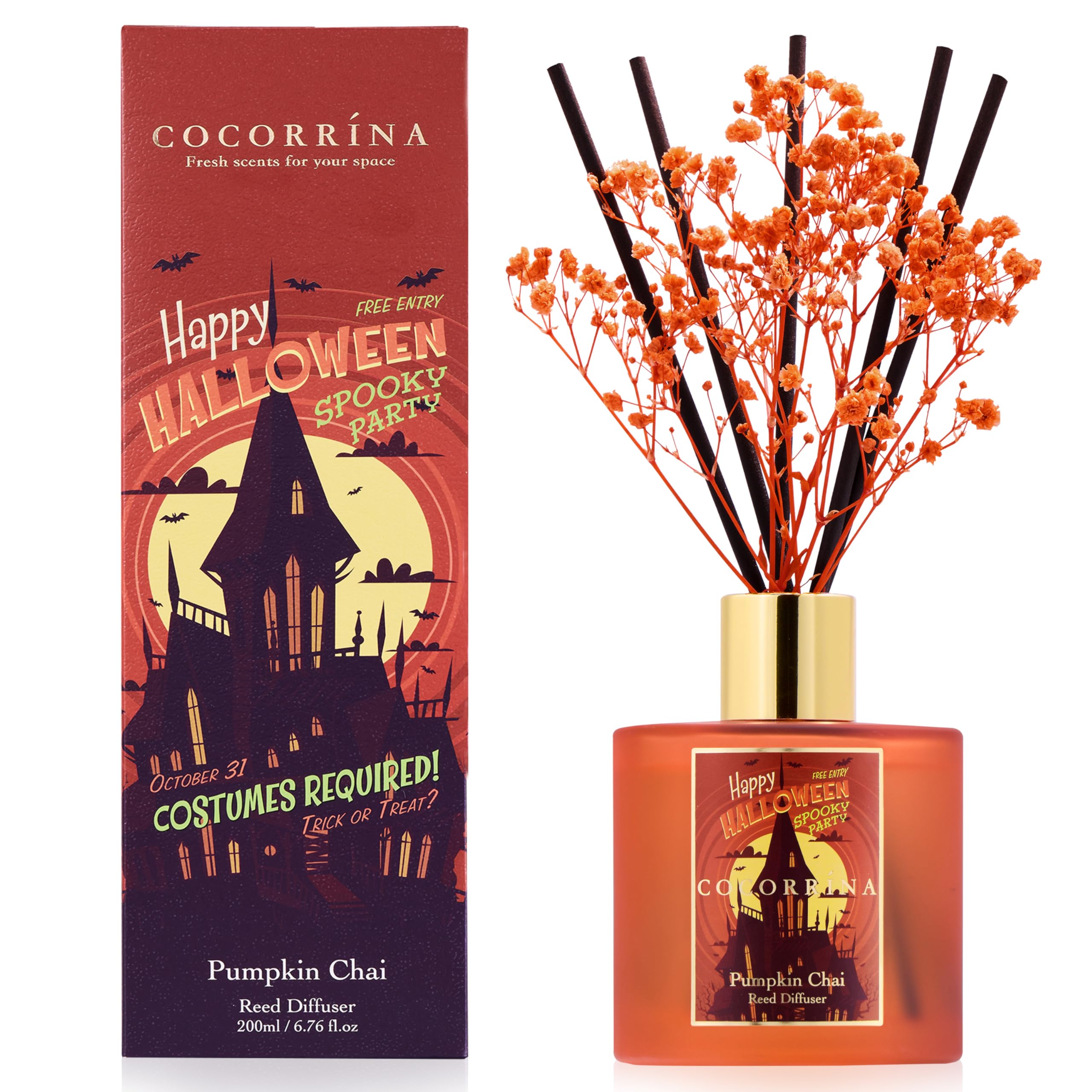 COCORRÍNA Raumduft Reed Diffuser mit 8 Duftstäbchen 200ml, Pumpkin Chai, Natürlich, Langanhaltend, Home Duft ätherisches Öl Reed Diffusor für Badezimmer Regal Dekoration
