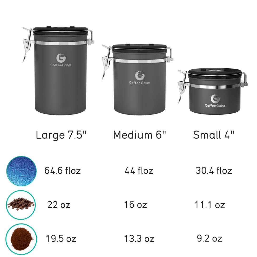 Coffee Gator Kaffeedose Edelstahl, Luftdicht Vorratsdose mit Deckel, Datum Tracker, CO2-Freigabeventil, Messlöffel, für Kaffeebohnen, Kaffeepulver, Nüsse, Tee, Zucker, Mehl