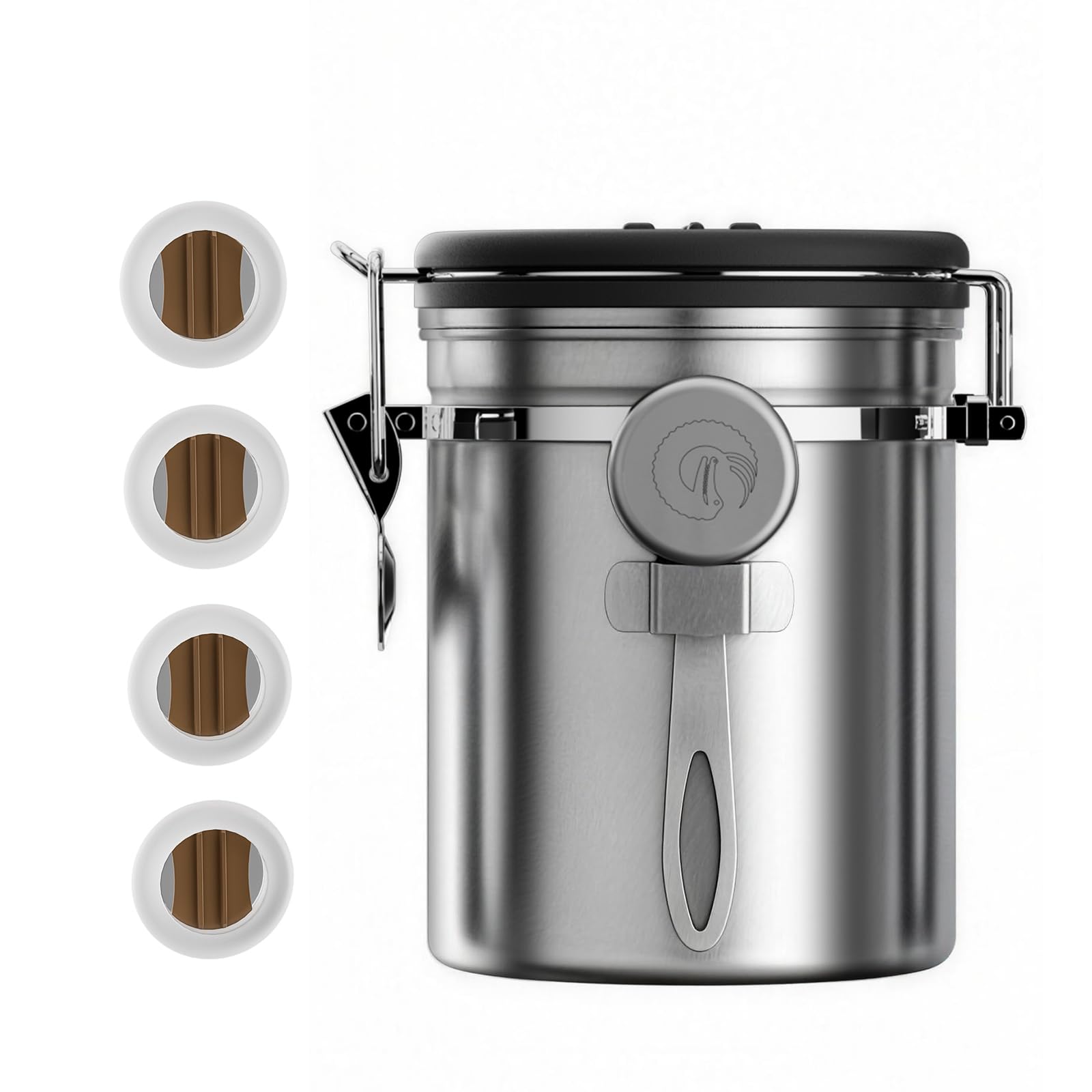 Coffee Gator Kaffeedose Edelstahl, Luftdicht Vorratsdose mit Deckel, Datum Tracker, CO2-Freigabeventil, Messlöffel, für Kaffeebohnen, Kaffeepulver, Nüsse, Tee, Zucker, Mehl