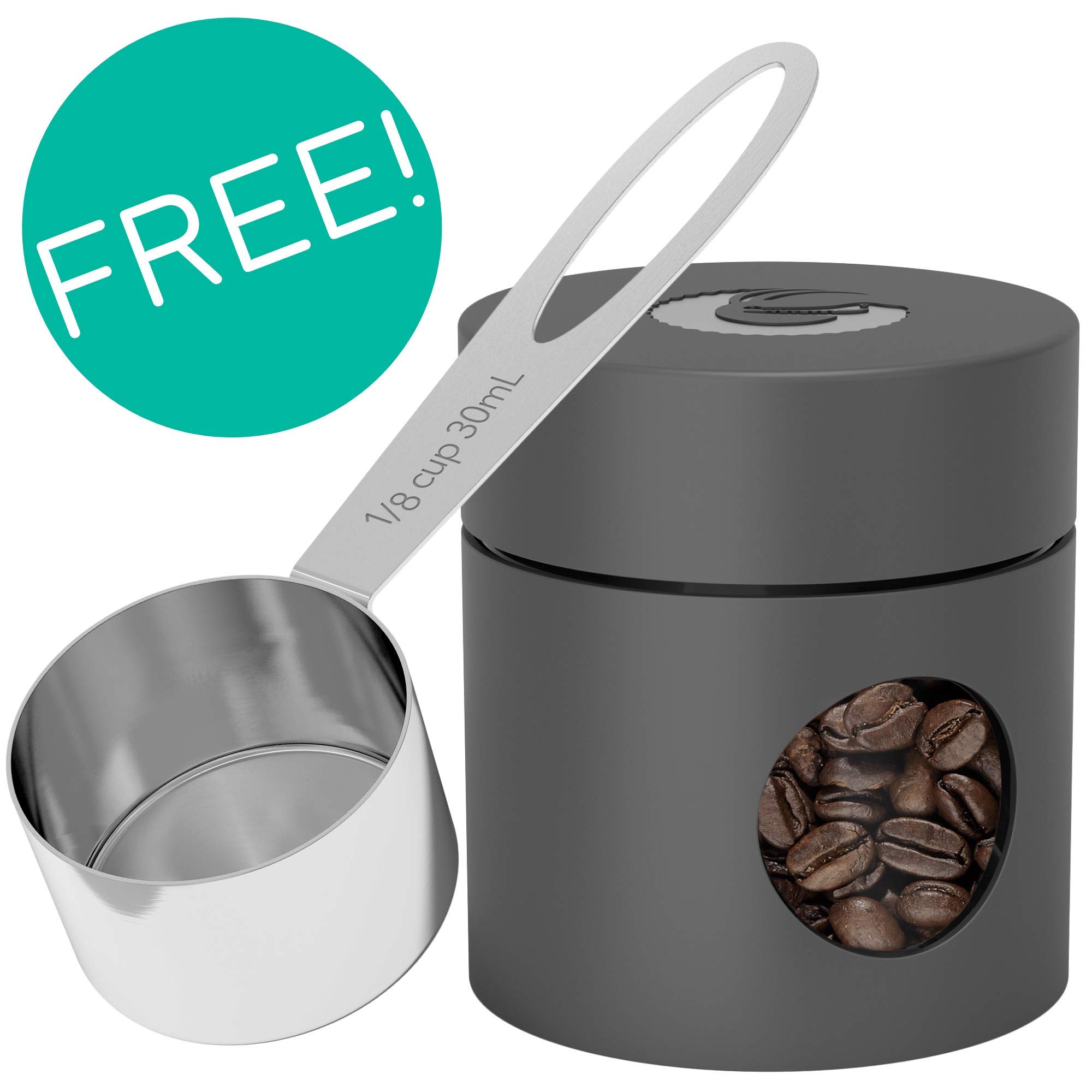 Coffee Gator Kaffeedose Edelstahl, Luftdicht Vorratsdose mit Deckel, Datum Tracker, CO2-Freigabeventil, Messlöffel, für Kaffeebohnen, Kaffeepulver, Nüsse, Tee, Zucker, Mehl