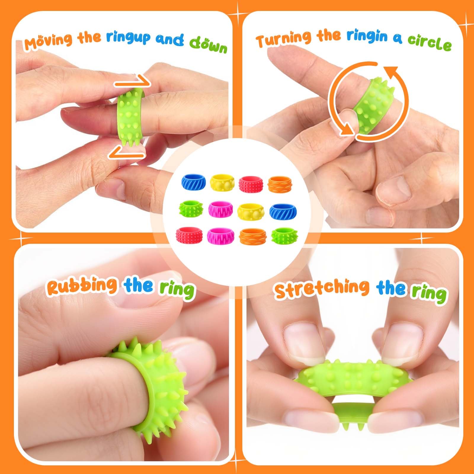 • [Sensorische Entspannung] Unser farbenfrohes Zappelring-Set hilft Kindern mit Autismus, Fingerzupfen zu reduzieren, Die hautfreundlichen, texturierten Ringe mit weich-dehnbarer Oberfläche bieten diskreten Stressabbau im Schulalltag