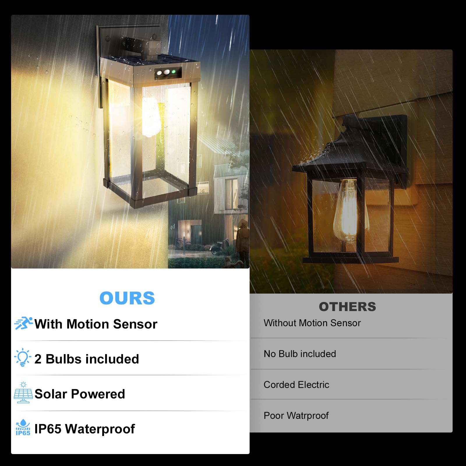 COLBOR Solarlampen für Aussen, Moderne Solar Wandleuchte mit Bewegungsmelder & Glühbirnen 2200mAh 3 Modi IP65 Wasserdicht für Garage Garten Hof Terrasse, Solarlampe-Aussen-Bewegungsmelder-Licht-Solar