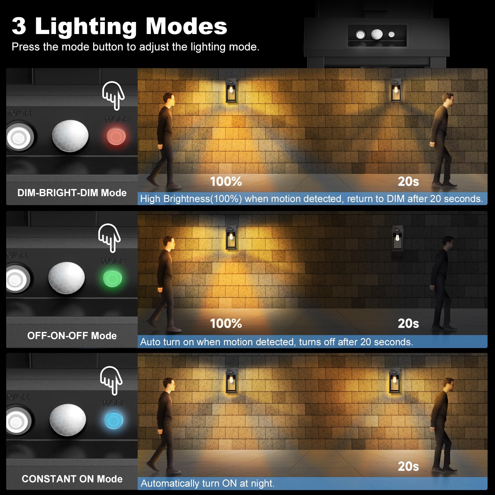 COLBOR Solar Wandlaterne Licht Modern Solar Sicherheitsleuchten Aussen mit Bewegungsmelder & Birne 3 Modi IP65 Wasserdicht für Garten Veranda Hof