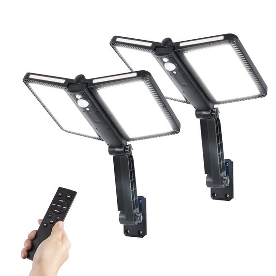 COLBOR Solarlampen für Aussen, LED Solar Licht mit Bewegungsmelder 5 Modi IP65 Wasserdicht 218 LEDs Regolabile für Garage Garten Hof Terrasse (2 Pcs), Solarlampen-Aussen-Solar-LED-Licht