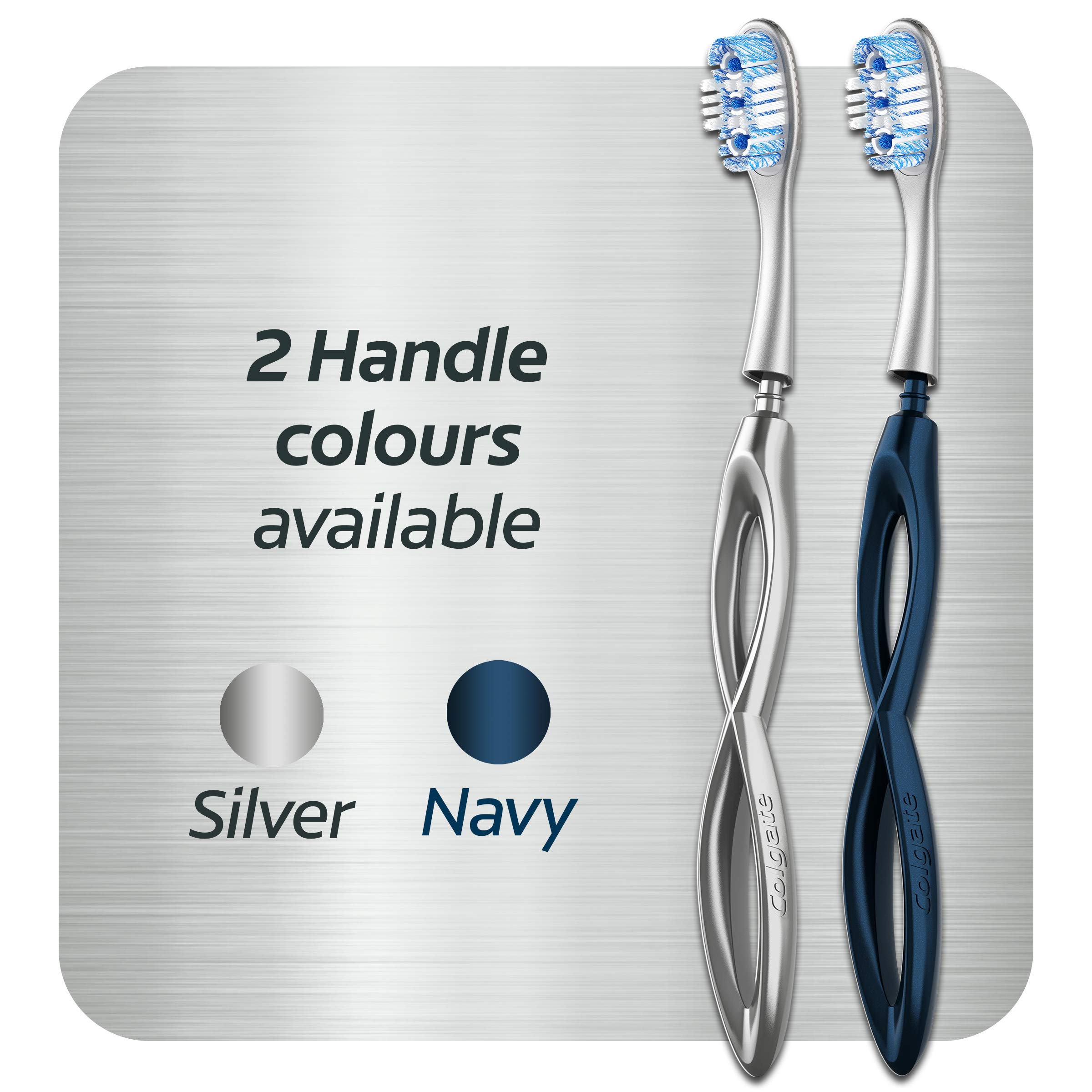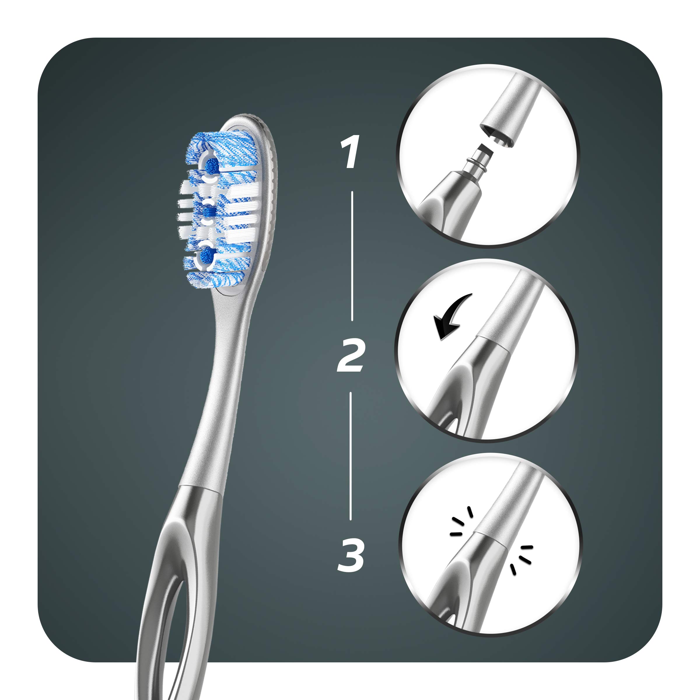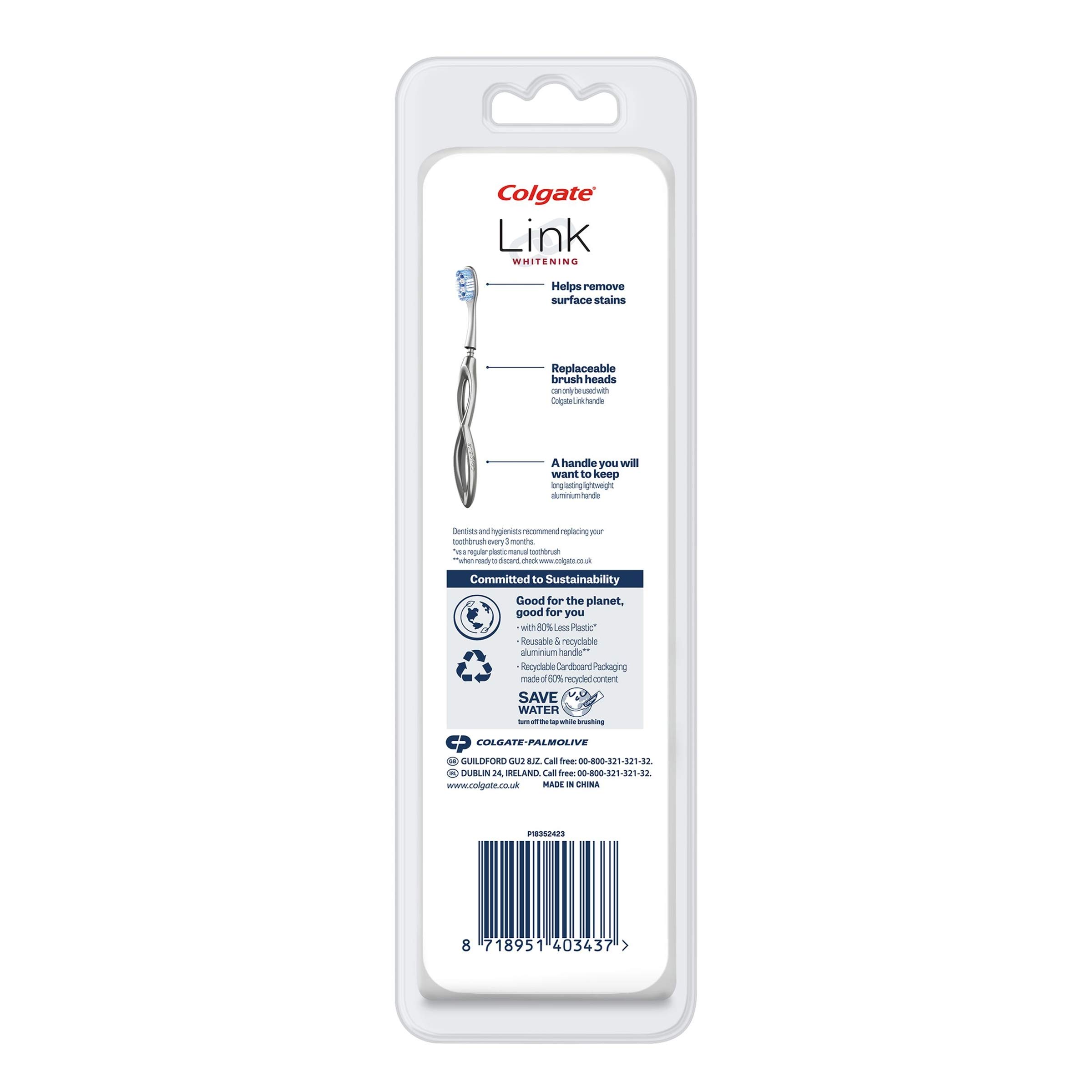 Colgate Link Handzahnbürste Whitening Starter Kit inkl. 1 Premium Aluminium Griff & 2 Whitening Ersatzbürstenköpfe Medium, Silber, Fleckenentfernungs-Technologie, 80% weniger Kunststoff