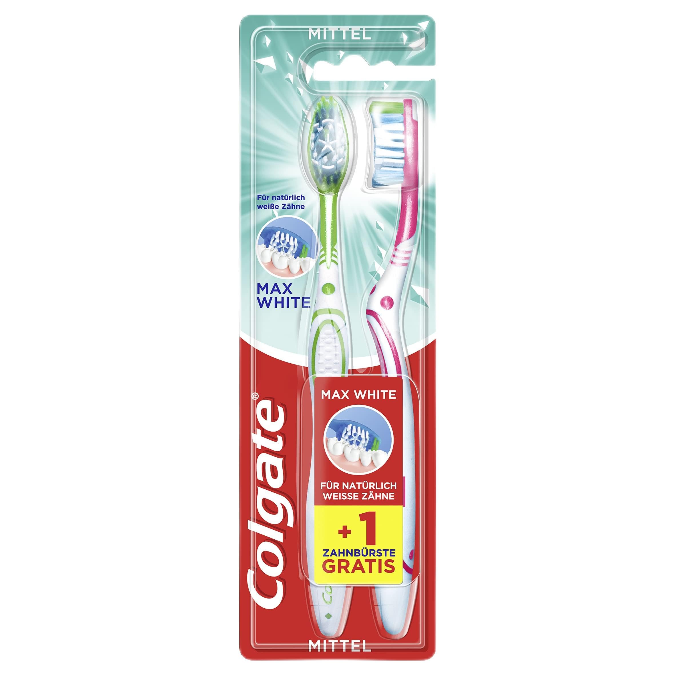 Colgate Zahnbürste Max White, mittel, 2 Stück - Handzahnbürste für natürlich weisse Zähne, mit mittelharten Borsten