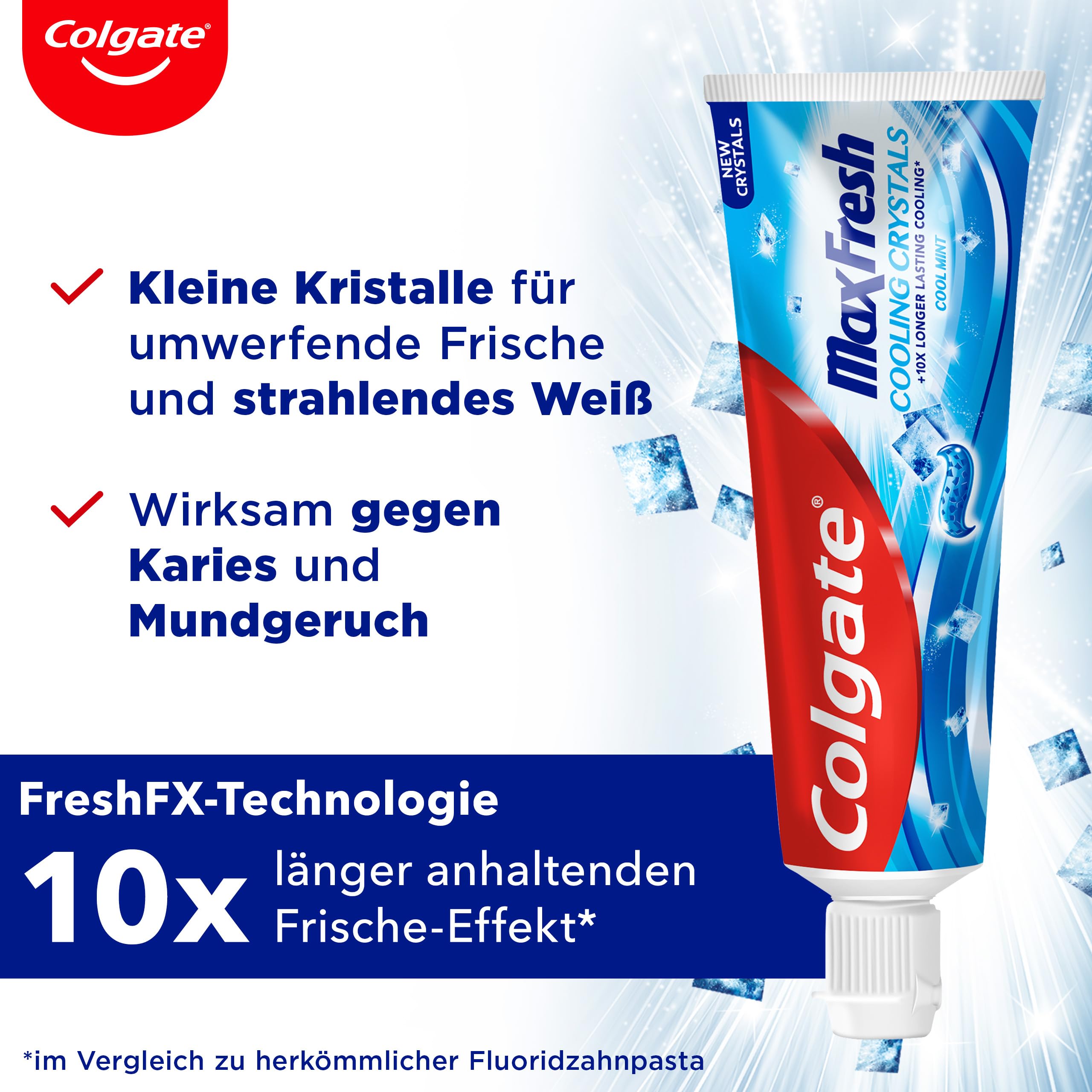 Colgate Zahnpasta Max Fresh Cooling Crystals 12x75 ml – effektive Zahnreinigung für langanhaltende Frische und ein sauberes Mundgefühl – hält die Zähne weiss und bekämpft Karies