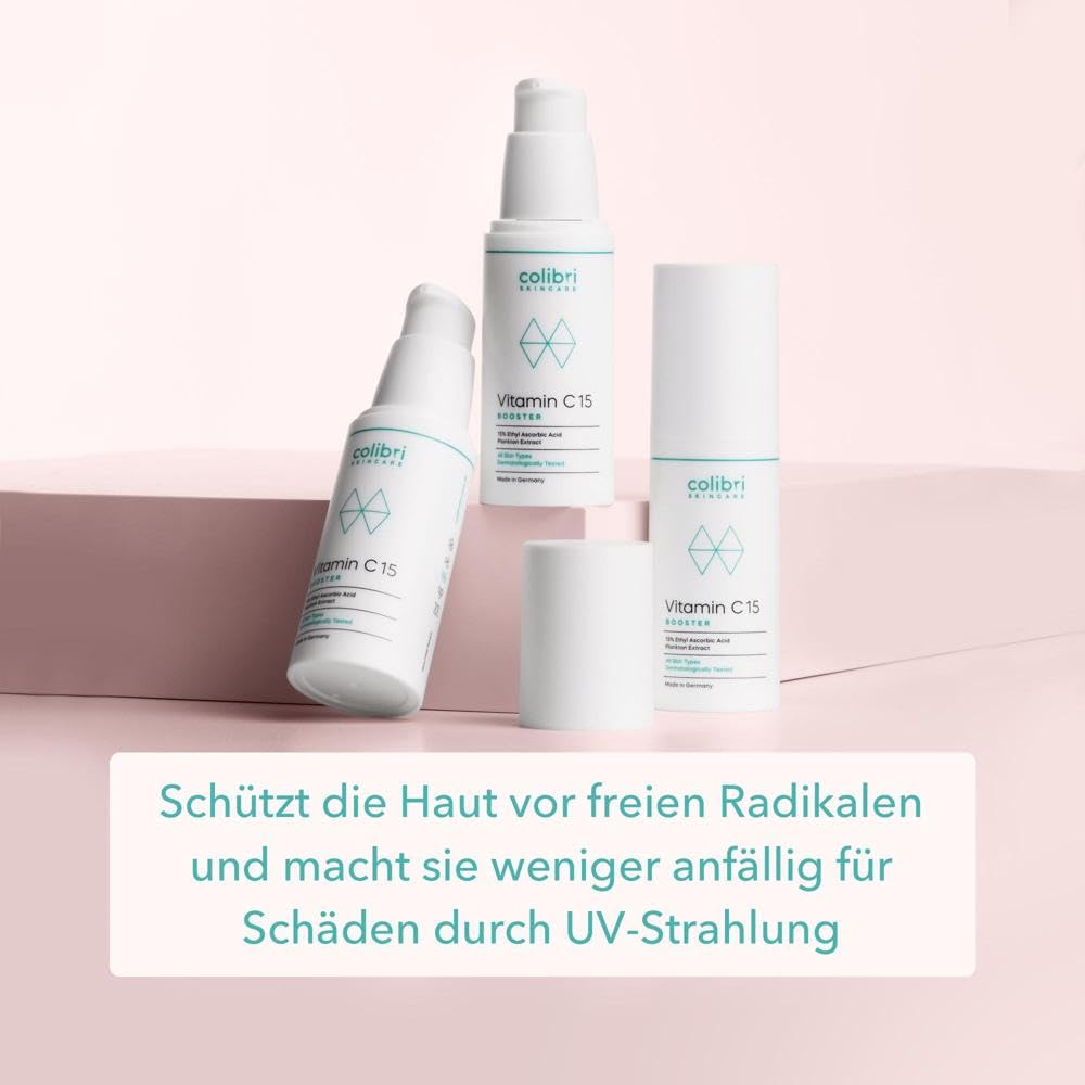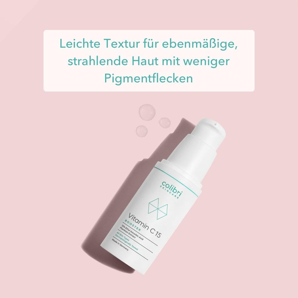 colibri skincare Vitamin C15 Booster 30 ml – 15 % Vitamin C Anti Aging Serum gegen Pigmentflecken & Augenringe, vegan, Made in Germany