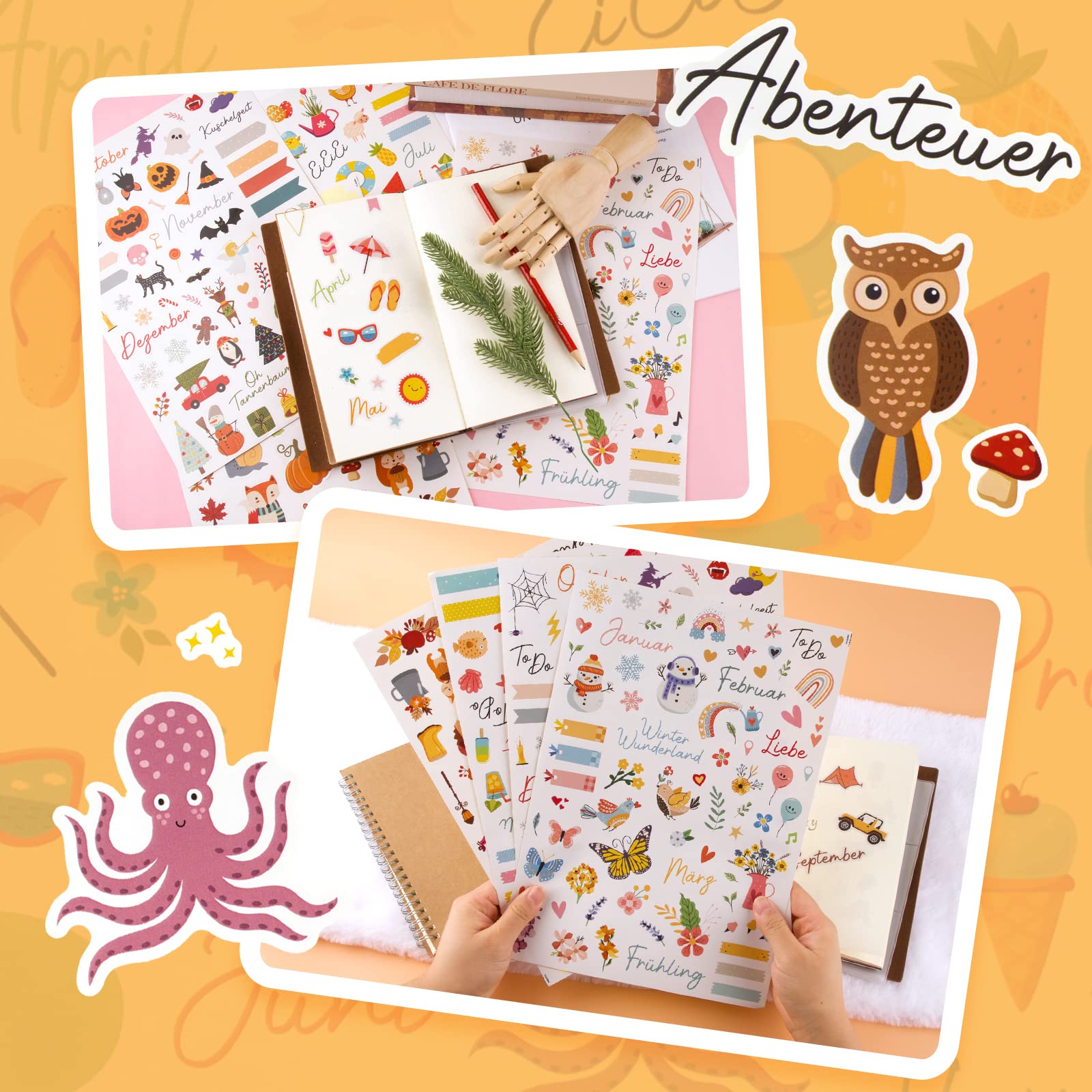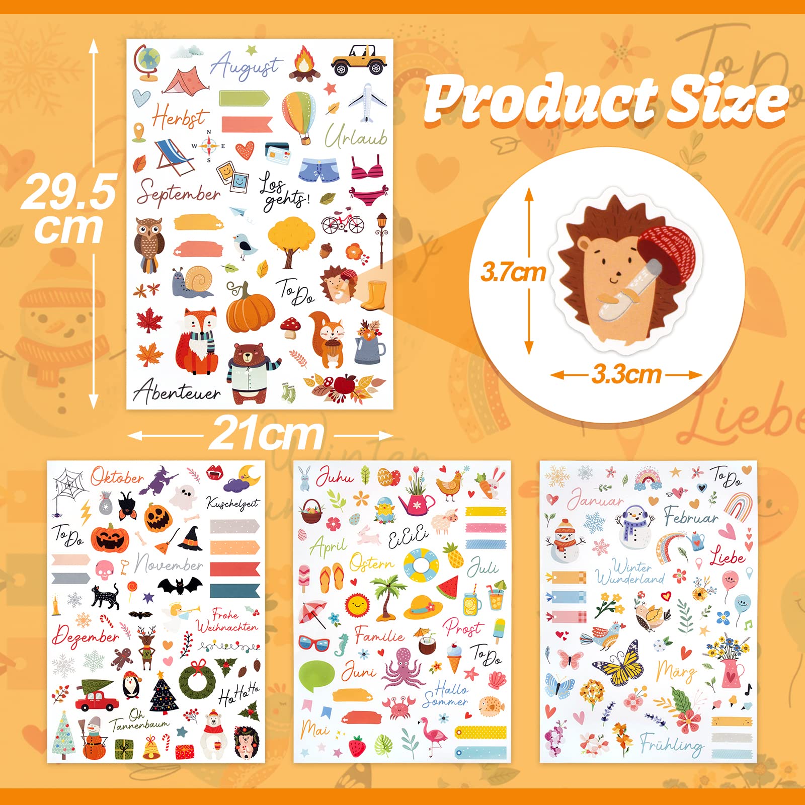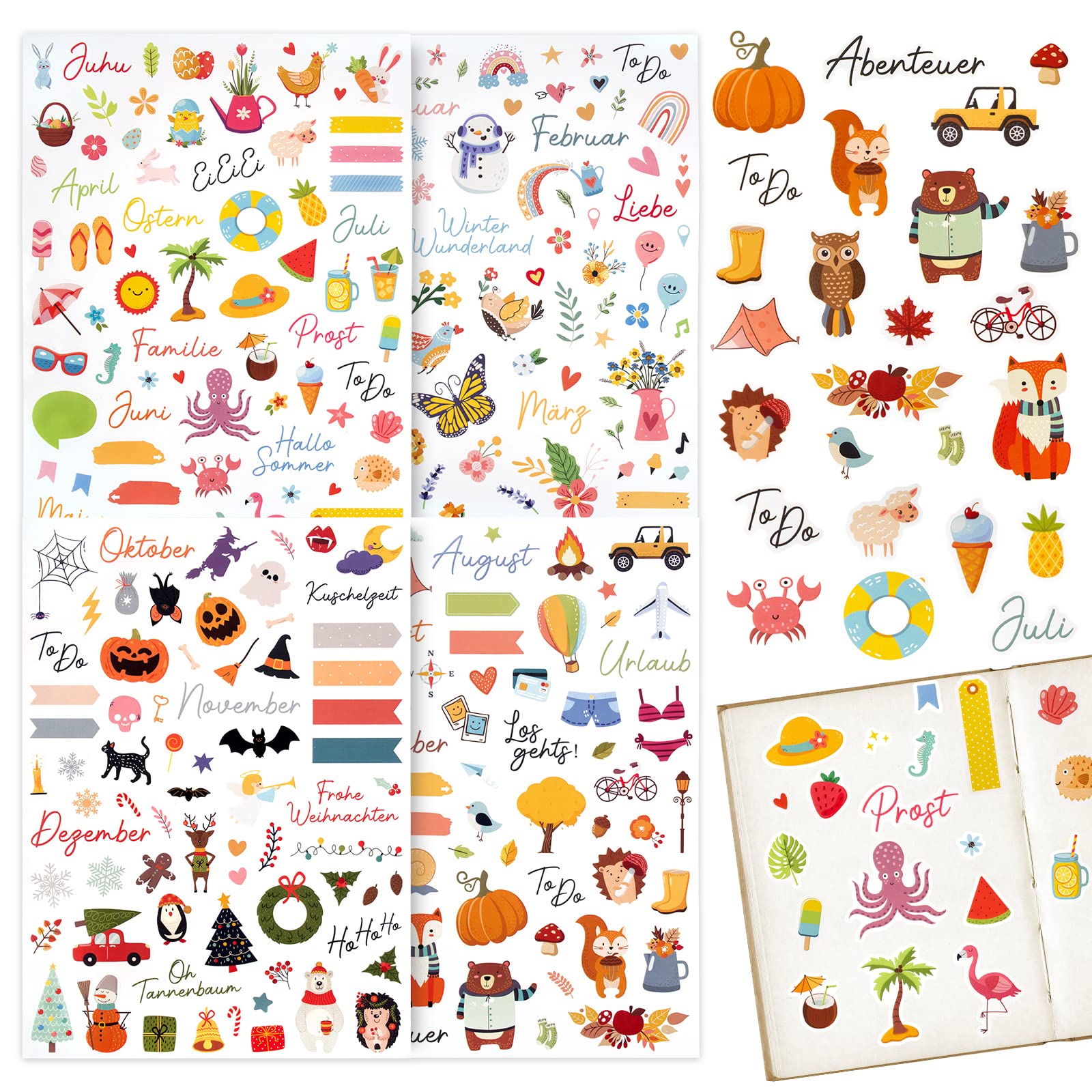 COLOFALLA 4 Blatt Aufkleber Jahreszeiten A4 DIY Sticker Blumen Frühling Sommer Herbst Winter Deko Zubehör für Scrapbooking Fotoalbum Notizbuch Kinder Basteln Geschenke (Jahreszeiten)