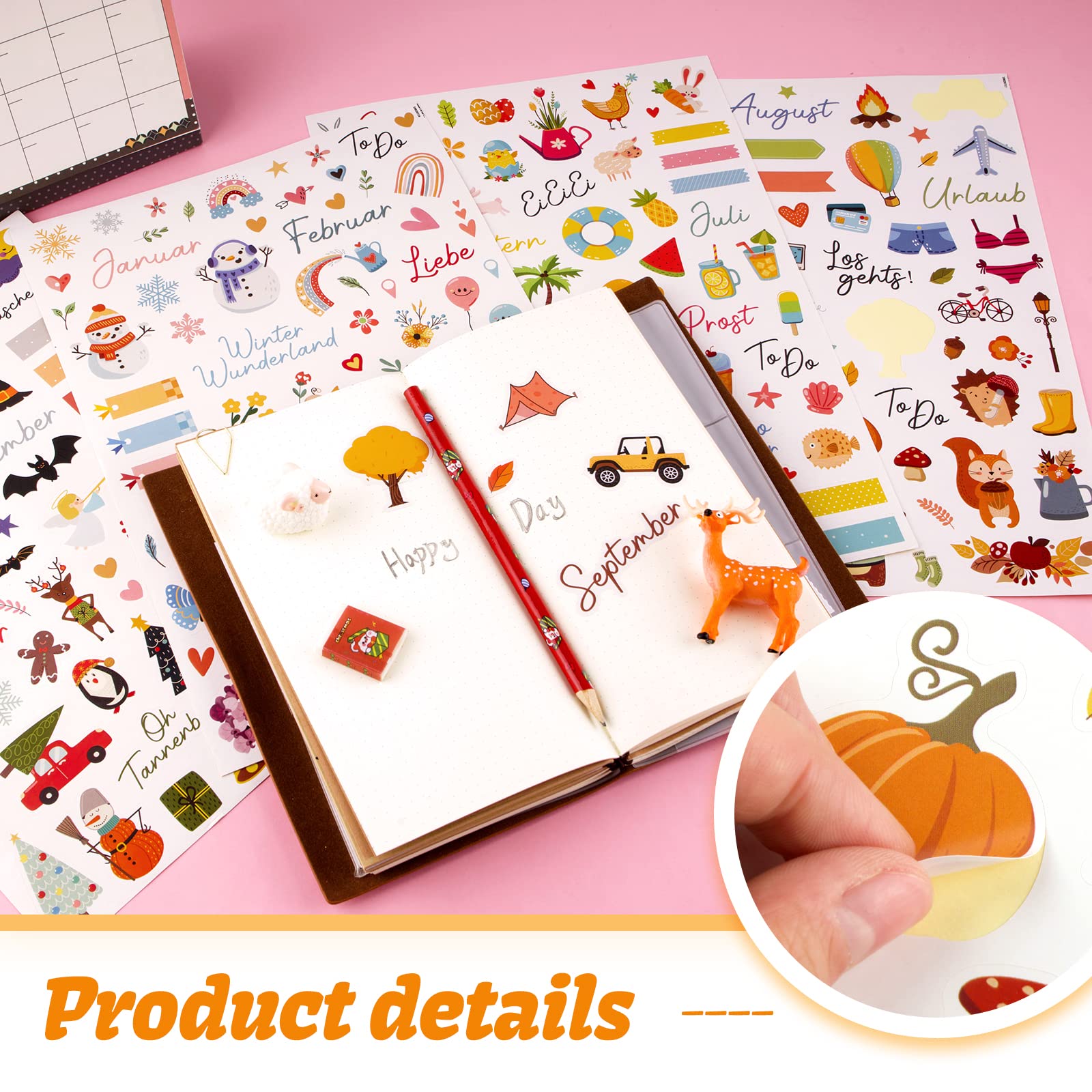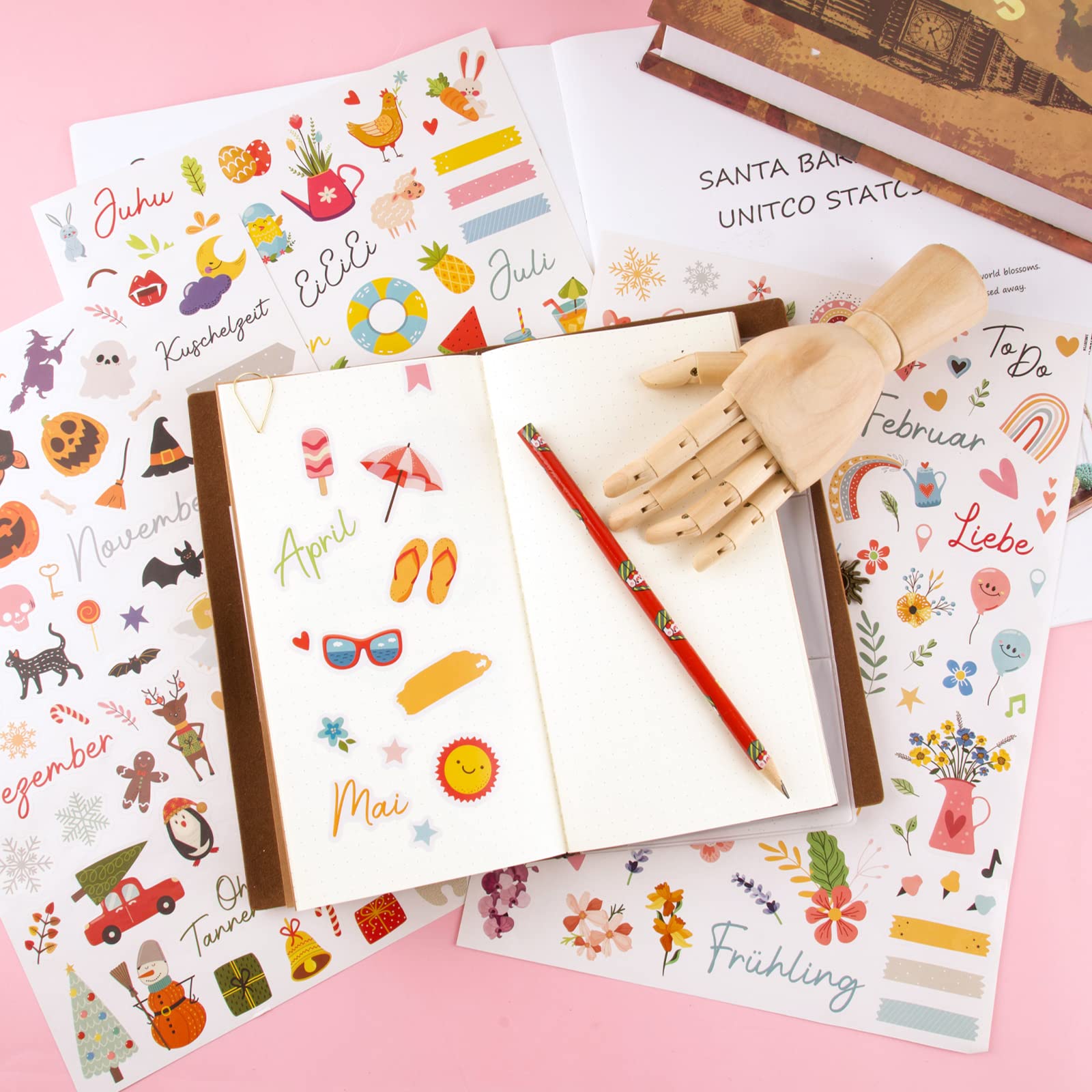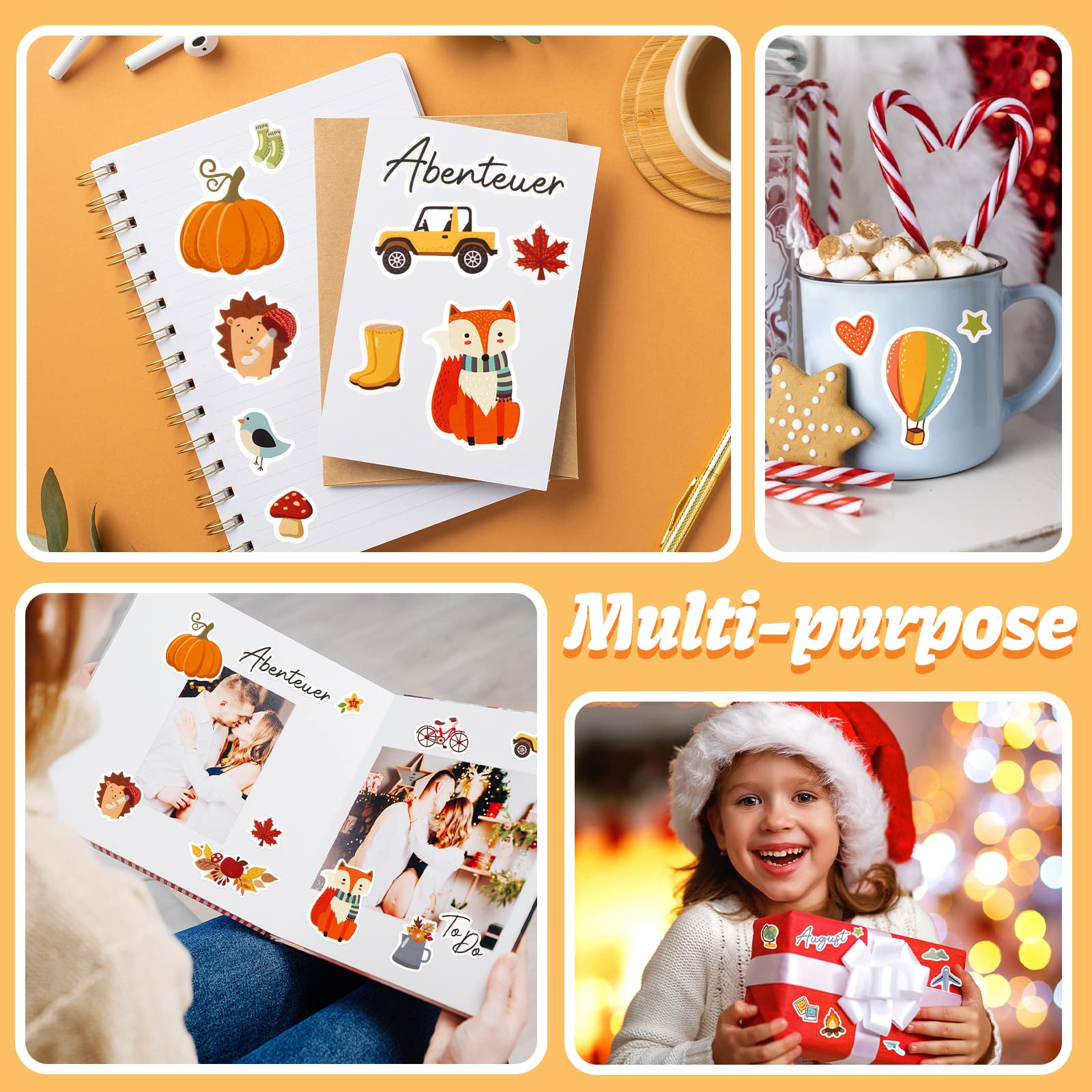 COLOFALLA 4 Blatt Aufkleber Jahreszeiten A4 DIY Sticker Blumen Frühling Sommer Herbst Winter Deko Zubehör für Scrapbooking Fotoalbum Notizbuch Kinder Basteln Geschenke (Jahreszeiten)