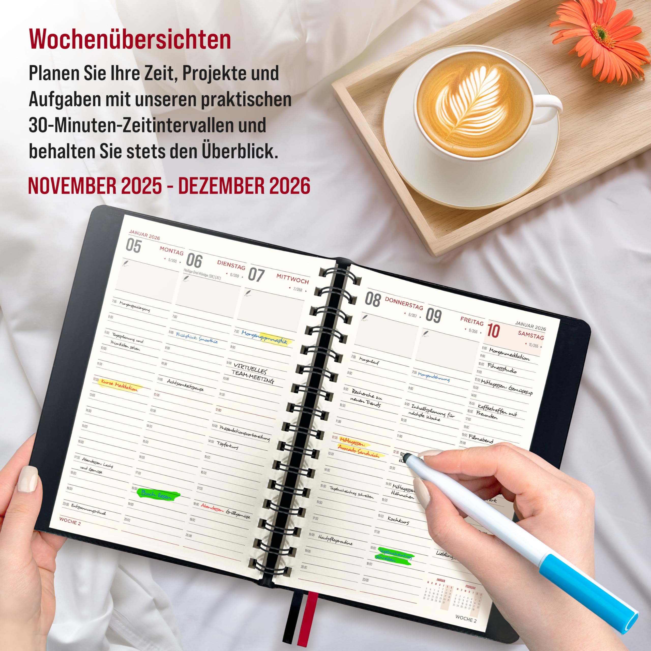 colortouch Terminplaner 2026, Kalender A5, Wochenplaner mit Softcover, Terminkalender Ringbuch, 30 Minuten-Intervalle Planer mit 2 Blatt Aukfleber auf Deutsch, Buchkalender 14 Monate (Nov 25-Dez 26)