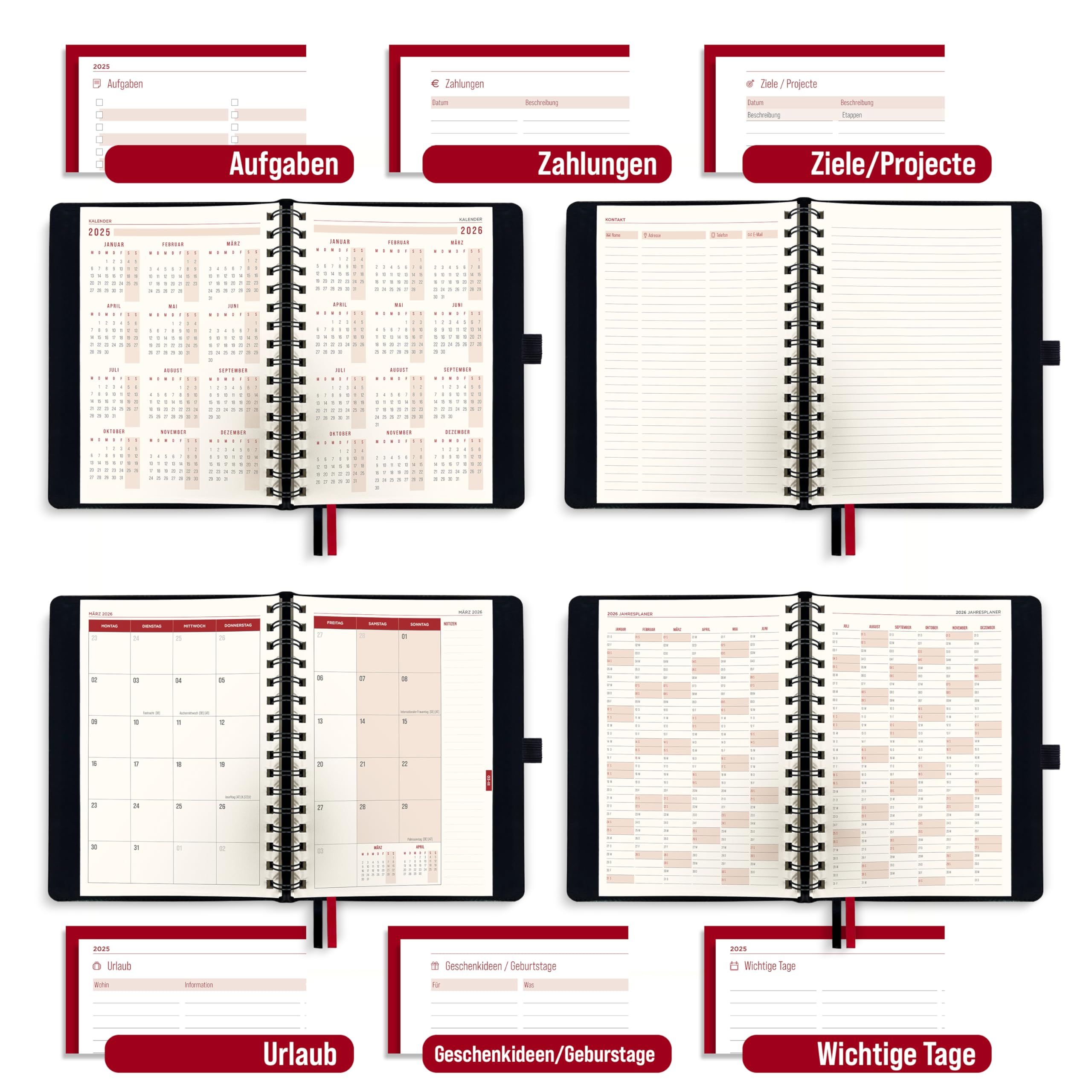 ★ 【Terminübersicht und Aufgabenverwaltung】14-Monate-Terminplaner 2025 2026 bietet eine optimale Lösung für Ihre langfristige Planung. Mit übersichtlichen Wochen- und Monatsansichten sowie Platz für Notizen, hilft er Ihnen, Ihre täglichen Aufgaben effizient zu organisieren. Es hat ein spezielles Design, in dem Sie Ihre Projekte, Schulden, besonderen Tage und Feiertage vor jedem Monat planen können. Hochwertiges Papier, 2 Bögen Aufkleber und eine robuste Ringbuch sorgen für Langlebigkeit.