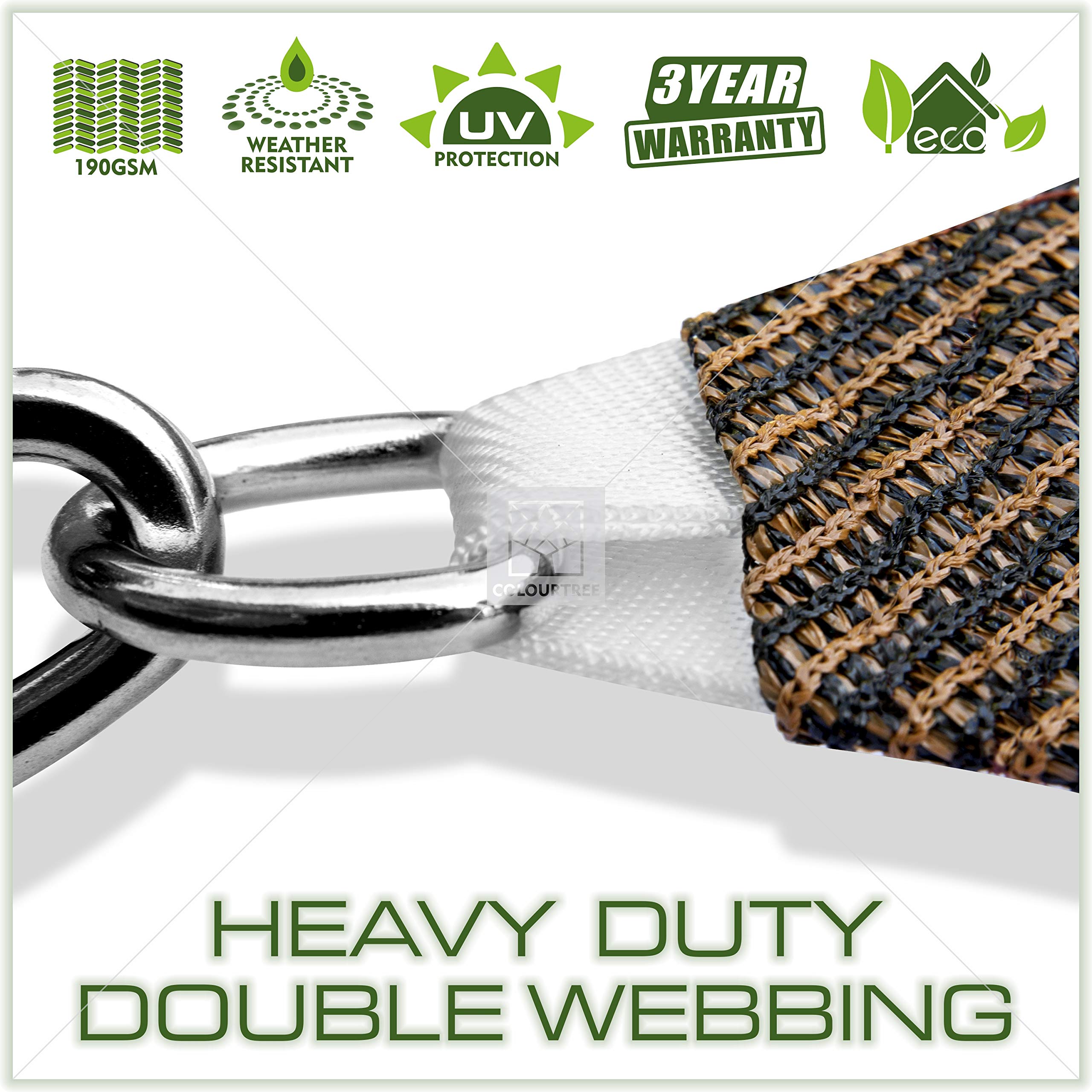 ColourTree CTAPT12 Sonnensegel, dreieckig, Netzgewebe, UV-Block, kommerziell, strapazierfähig, 190 g/m², 3 Jahre Garantie (wir Stellen individuelle Grössen her)