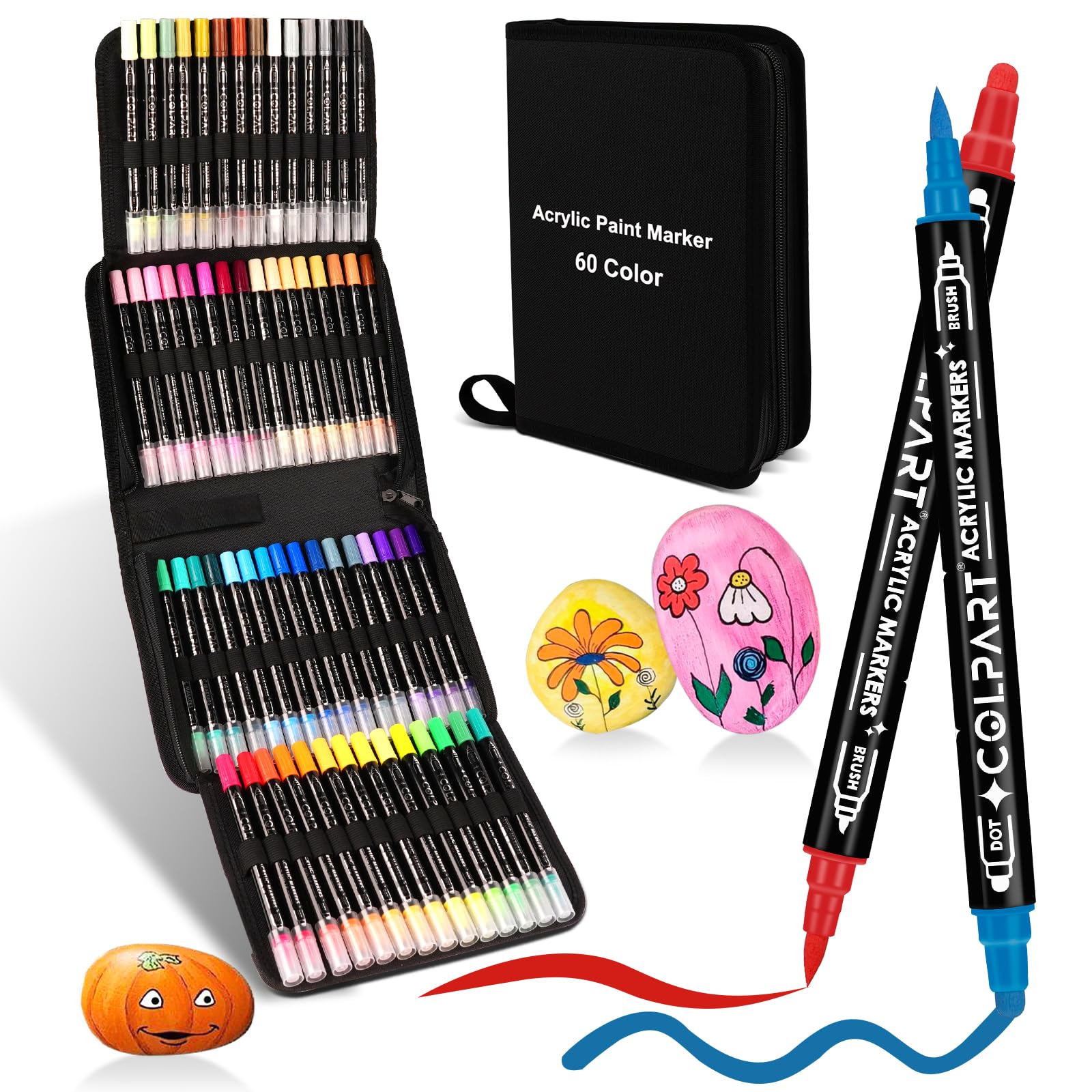 colpart Acrylstifte für Steine wasserfest-Steine Ostereier zum Bemalen Doppelendige Acrylic PaintPermanent Marker Stift Für Kunststoff Glas Holz Keramik Metall Reifen Leinwand.60BagtypeBrushSet