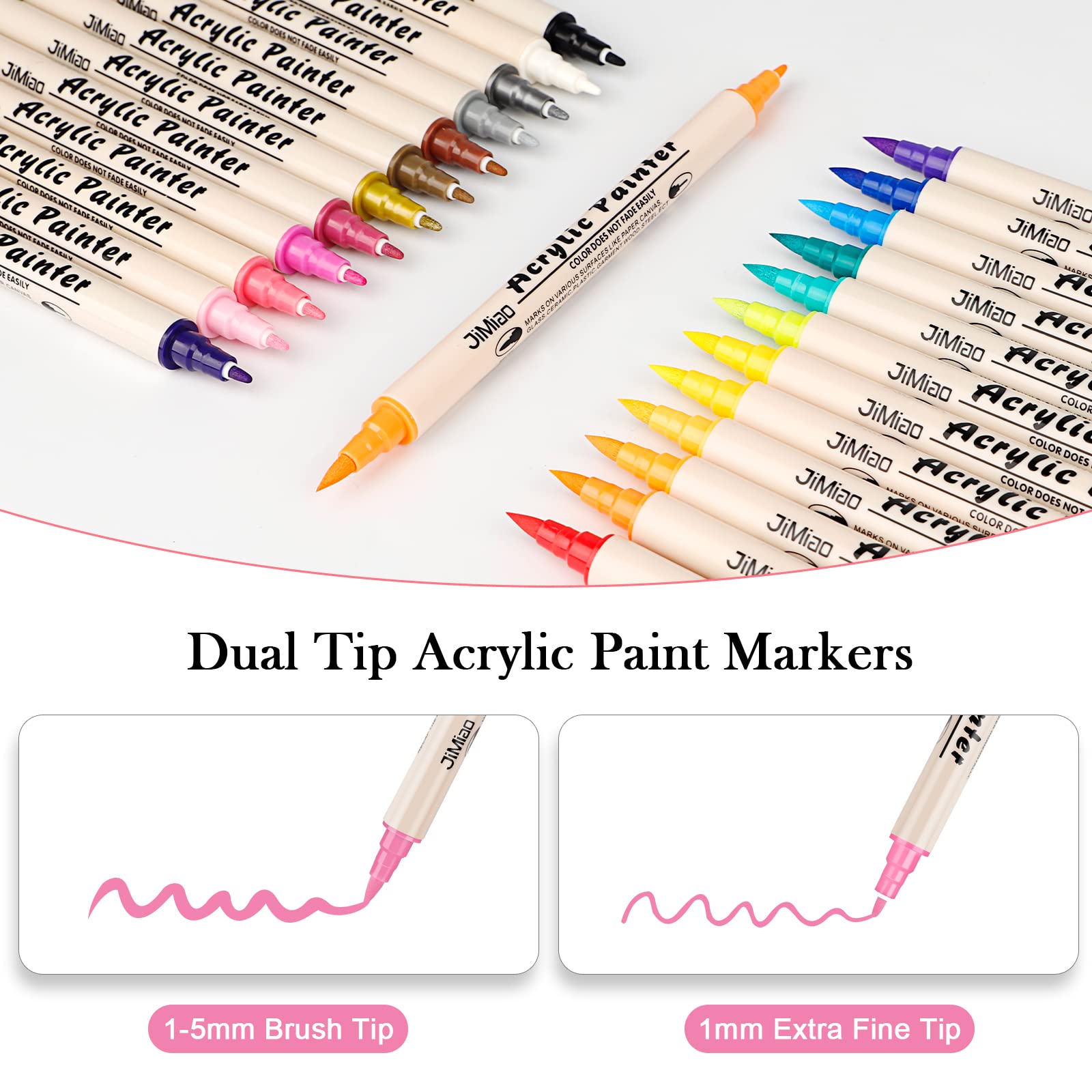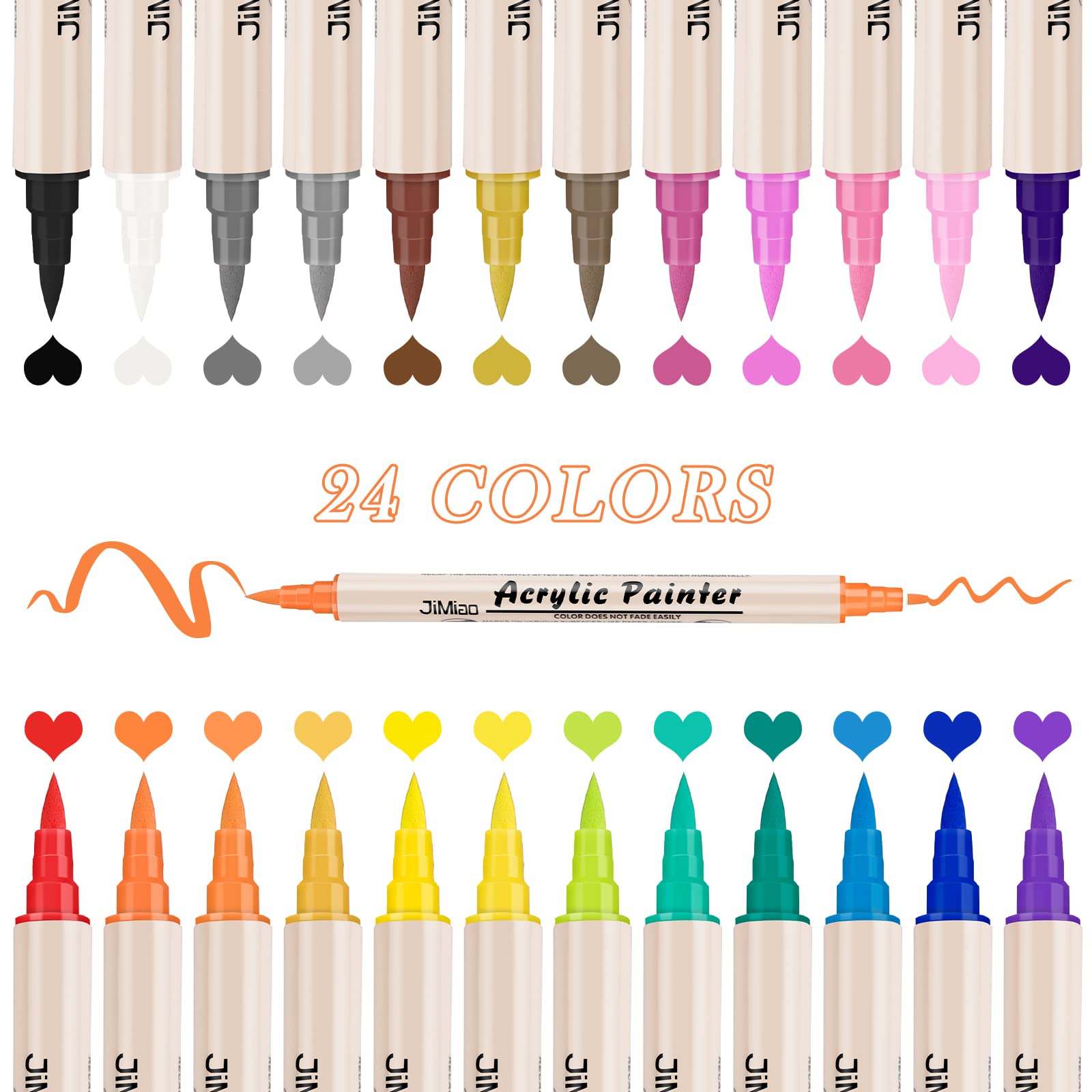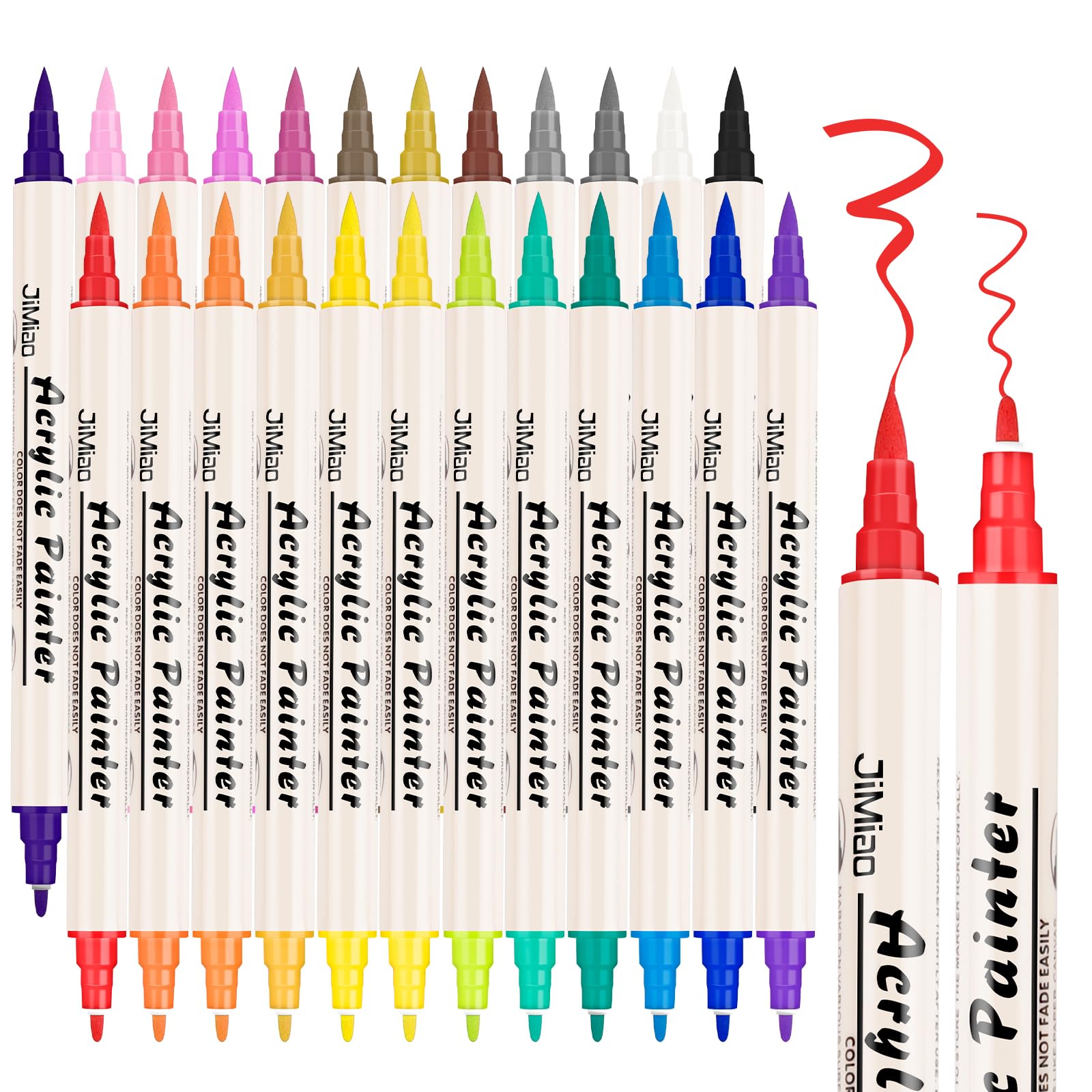 Acrylfarben-Stifte, Farbmarkierer, 24 Farben, Doppelspitze, Farbstifte mit Pinselspitze und feiner Spitze für Steinmalerei, Holz, Kunststoff, Leinwand, Farbmarker für Bastelarbeiten, Kunstbedar