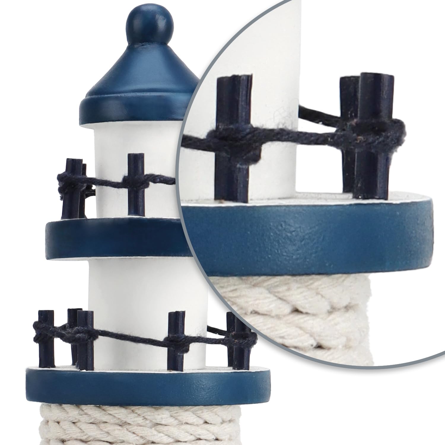 com-four® 2-teiliges maritimes Deko-Set - Dekoratives Holz-Segelschiff 27 cm und Leuchtturm 23 cm für EIN maritimes Ambiente in Ihrem Zuhause (2 Stück Leuchtturm/Segelboot - weiss/blau)
