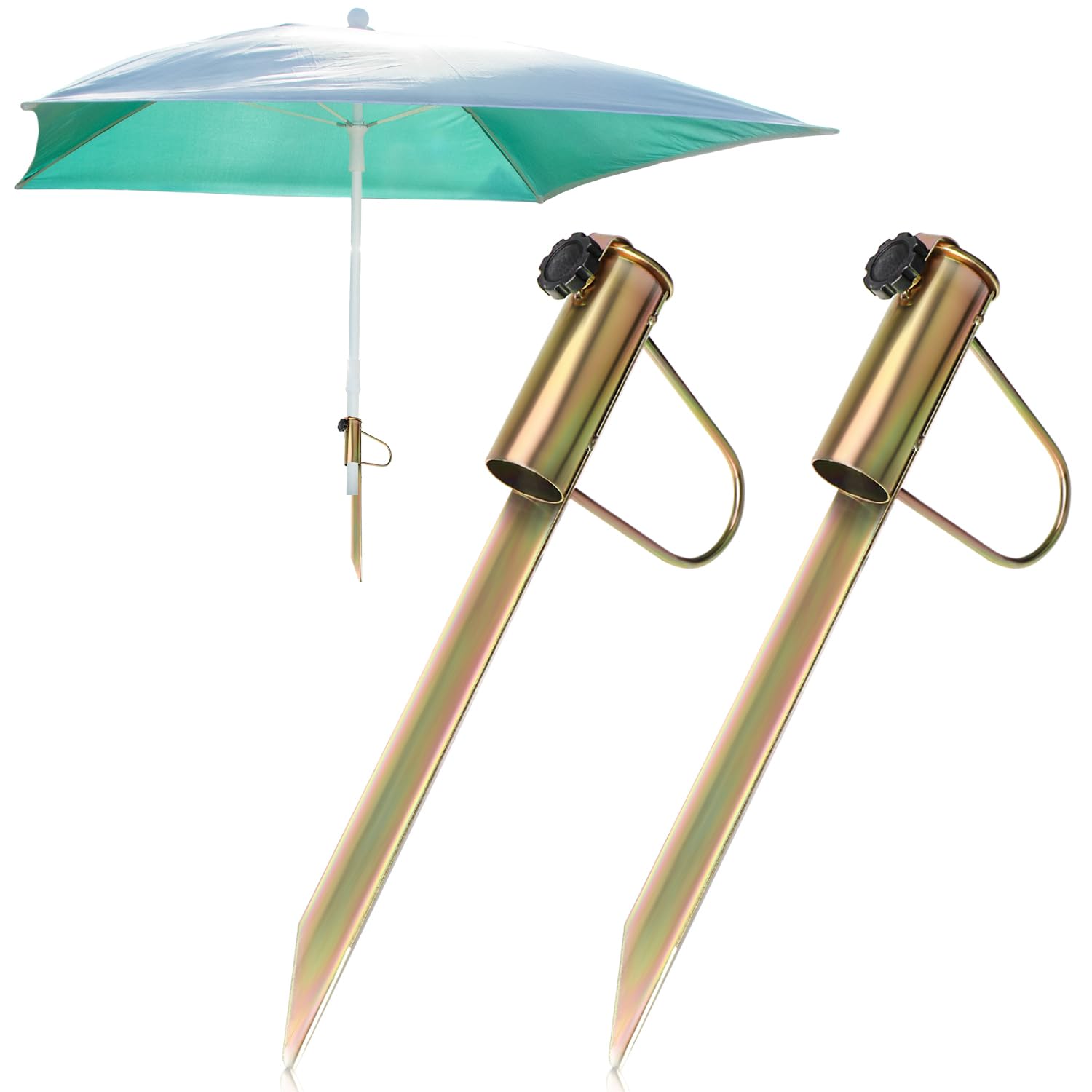 com-four® 2X Sonnenschirmhalter aus Stahl - Bodenhülse für den Garten - Rasendorn für Sonnenschirme - Schirmständer mit Handgriff - Stockdurchmesser von ca. 30-42 mm (goldfarben - 2 Stück)