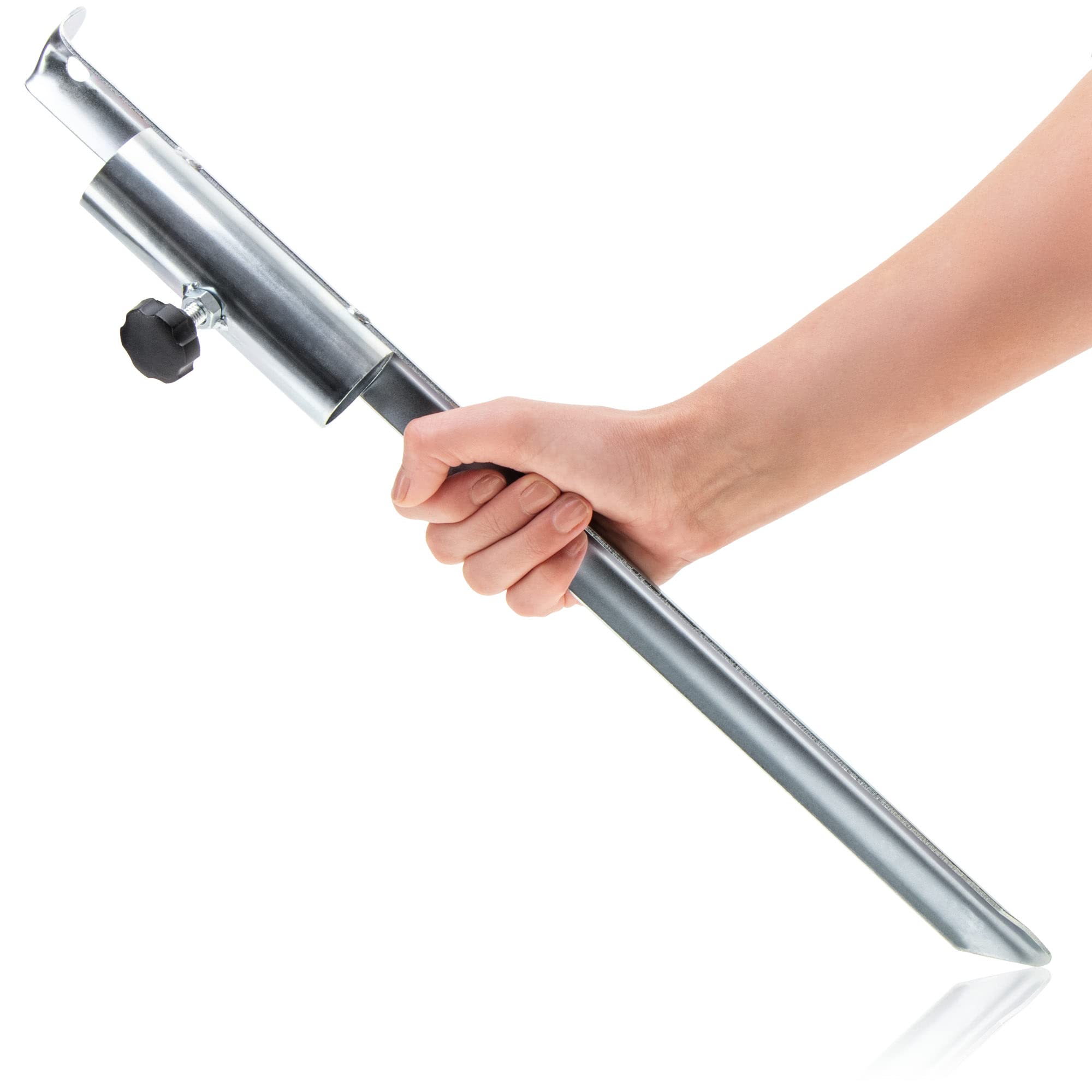 Der stabile Sonnenschirmständer eignet sich auch hervorragend als Erdspiess beim Zelten oder zum Befestigen einer Angelrute!
